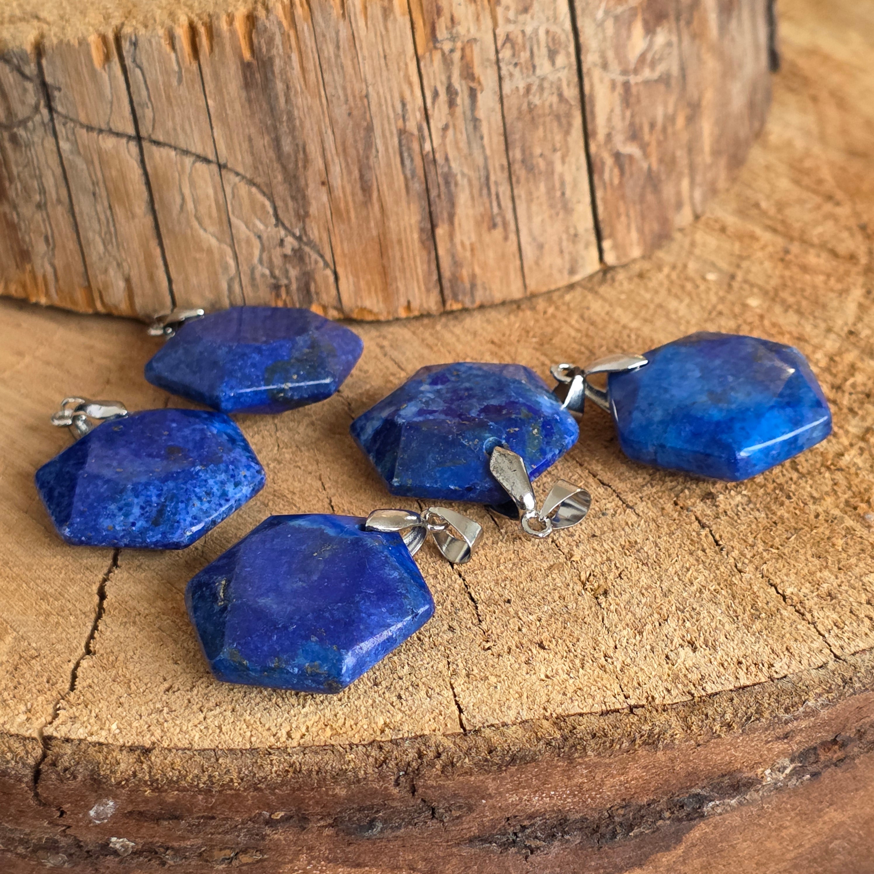 Descriere - Pandantiv forma hexagon lapis lazuli | Model 2