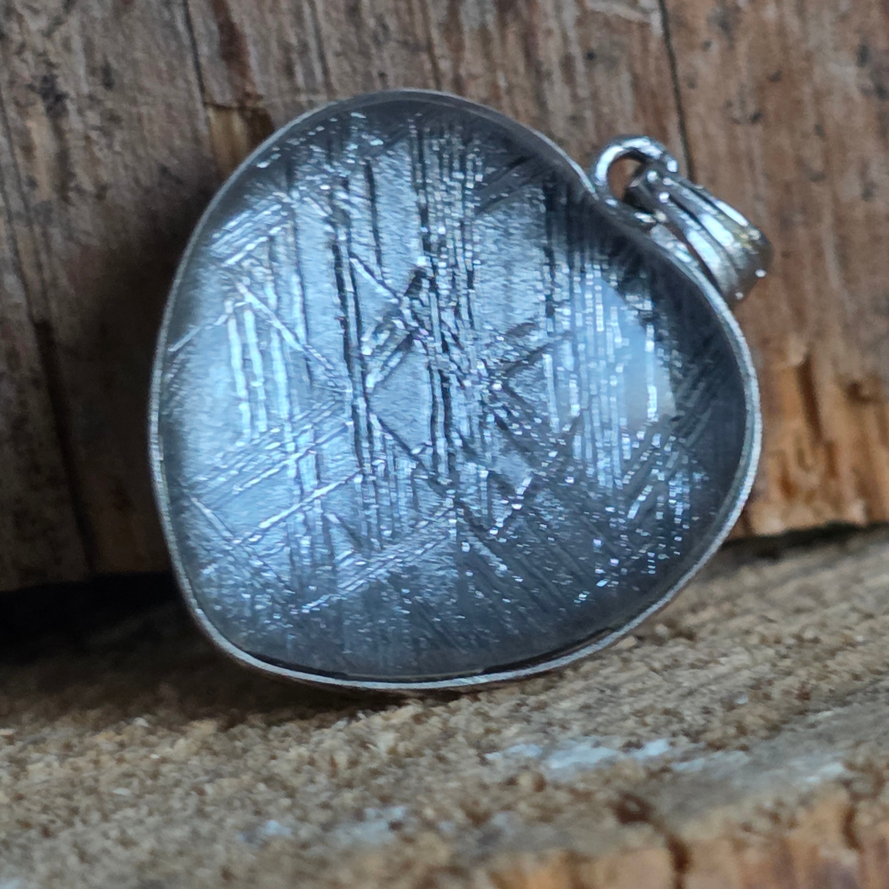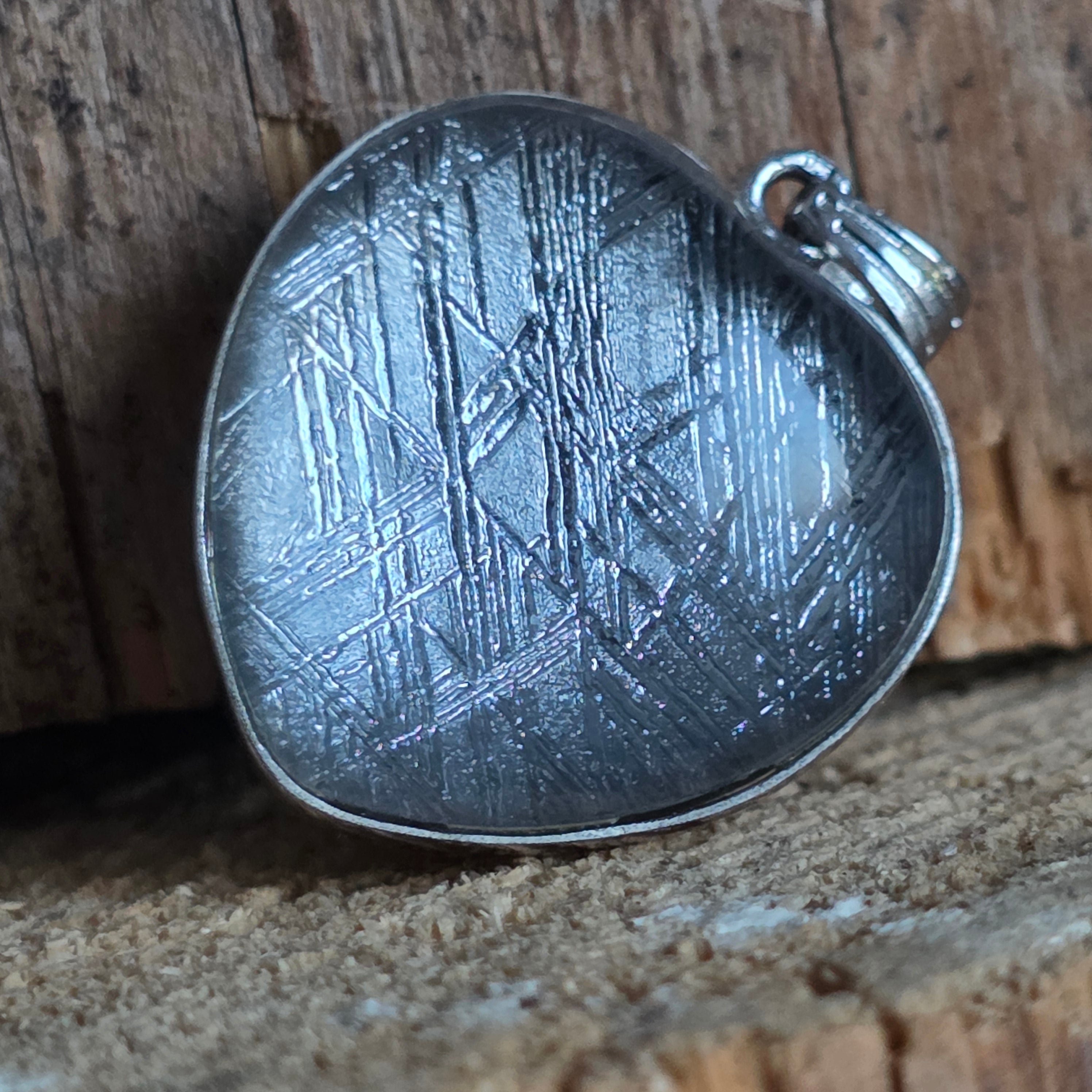 Muonionalusta este un meteorit metalic de tip iron-nickel, celebru pentru modelele sale distinctive Widmanstätten, linii geometrice care se formează exclusiv în interiorul metalului meteoritic pe parcursul milioanelor de ani. Fiecare pandantiv este unicat, cu textură și structură proprie, un adevărat simbol al timpului cosmic și al alchimiei universale.