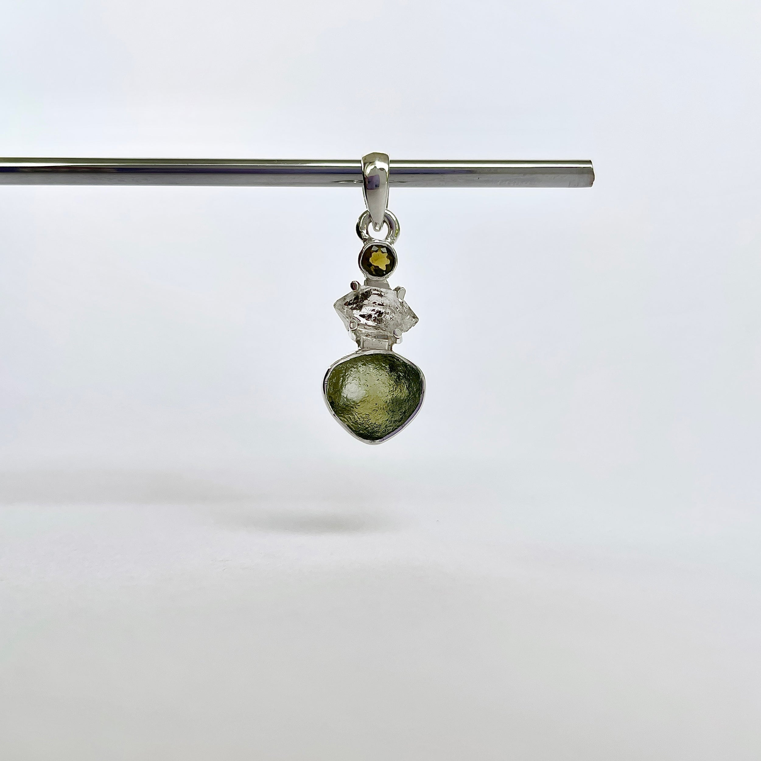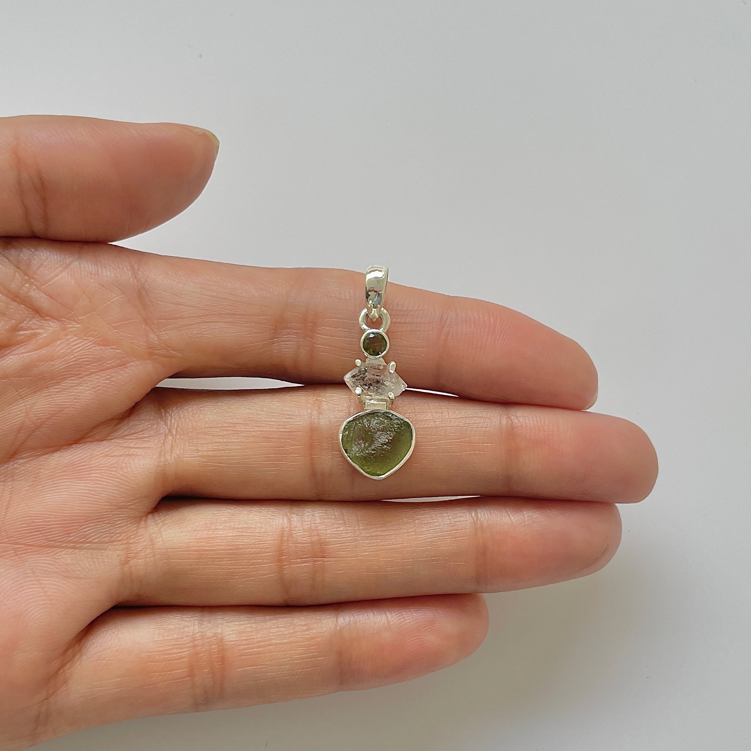 Dimensiune pietre: Moldavit ~ 1,1 x 1 cm, Herkimer ~ 0,6 cm
