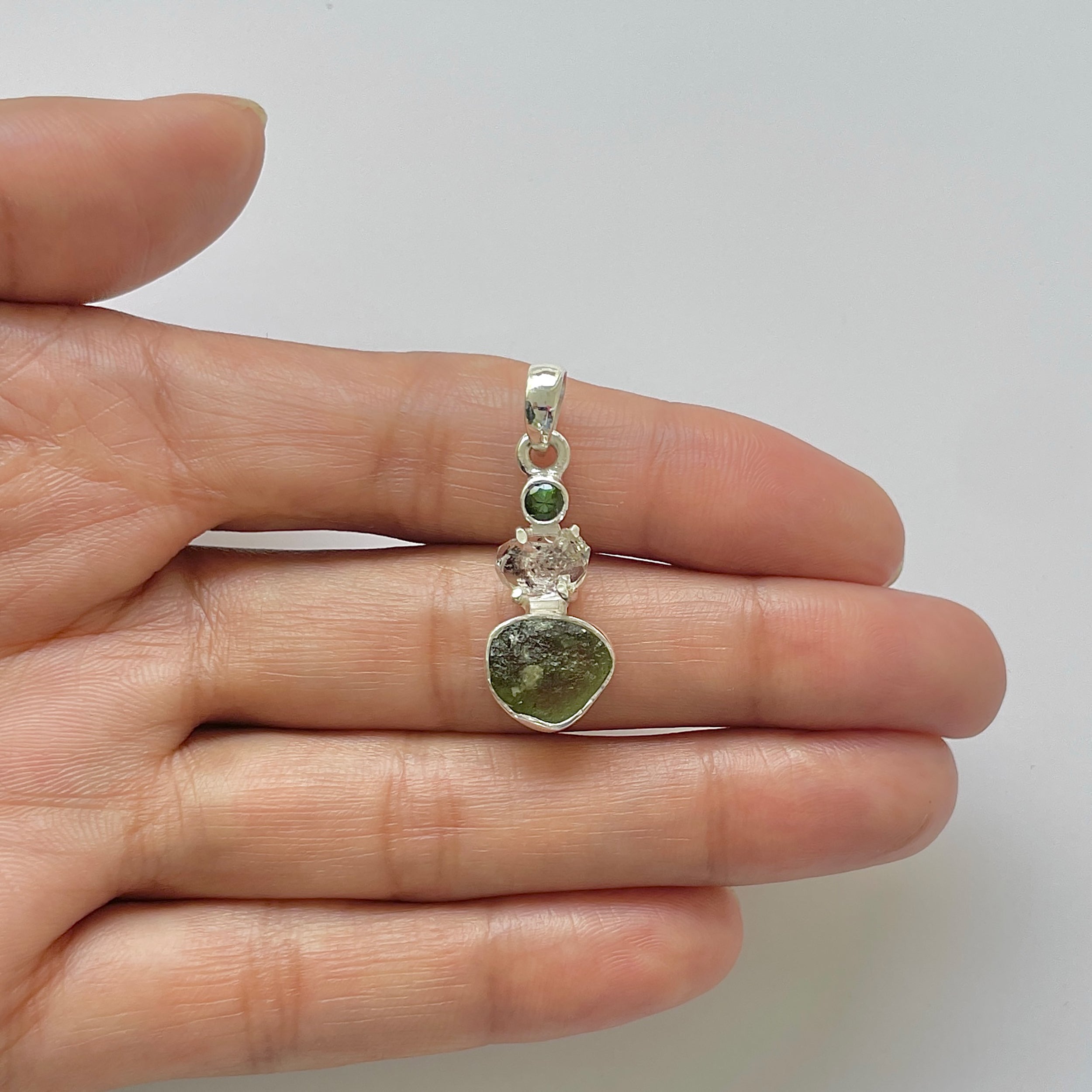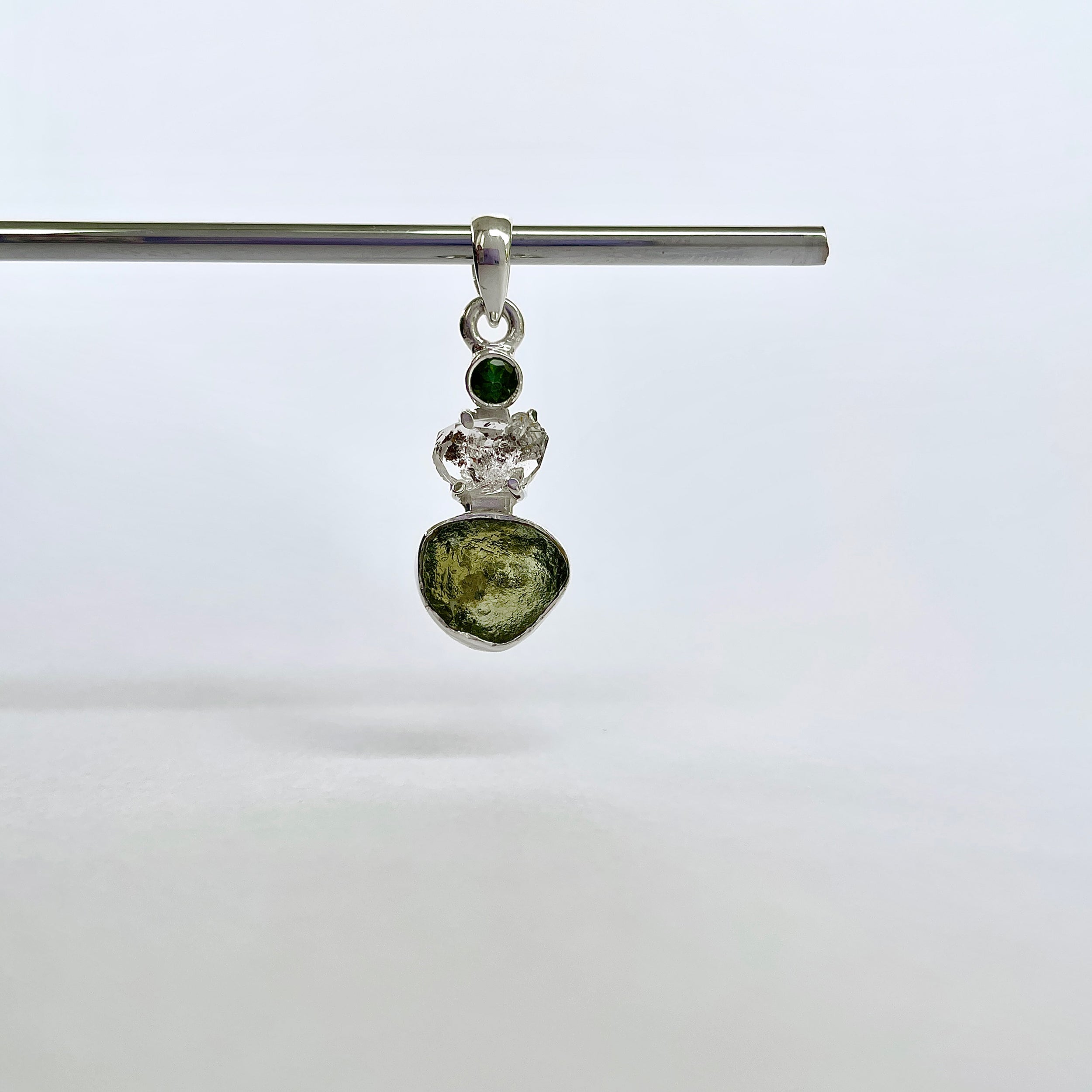 Dimensiune pietre: Moldavit ~ 1.1 x 0,9 cm, Herkimer ~ 0.8 x 0,6 cm, moldavit: 0.3 cm