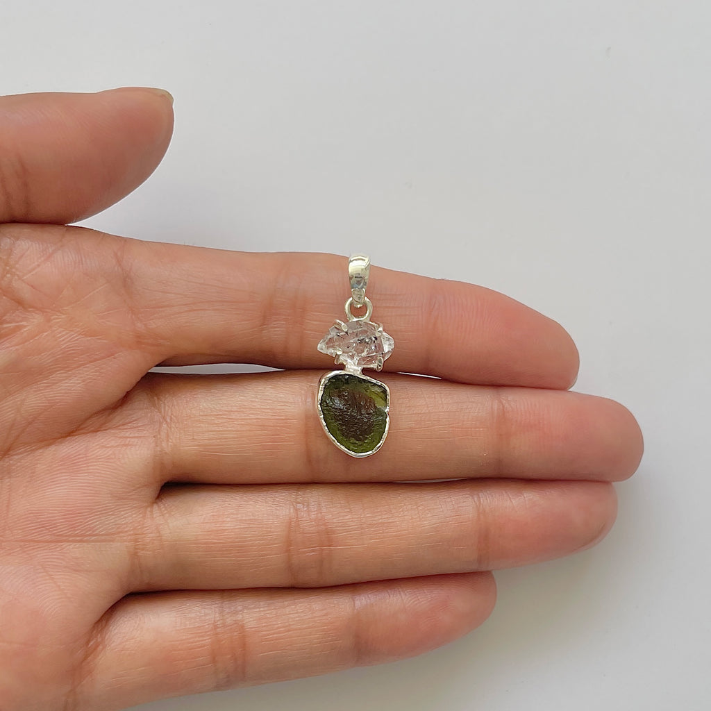 Dimensiune pietre: Moldavit ~ 1.3 x 1 cm, Herkimer ~ 1 x 0,6 cm
