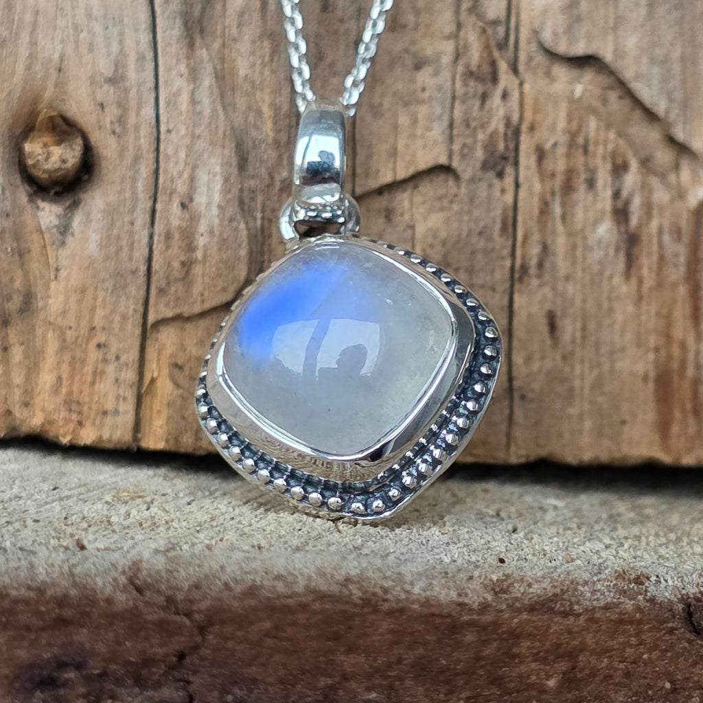 Un pandantiv deosebit, care unește frumusețea naturală a pietrei lunii cu eleganța argintului – simbol al armoniei dintre cer și pământ.