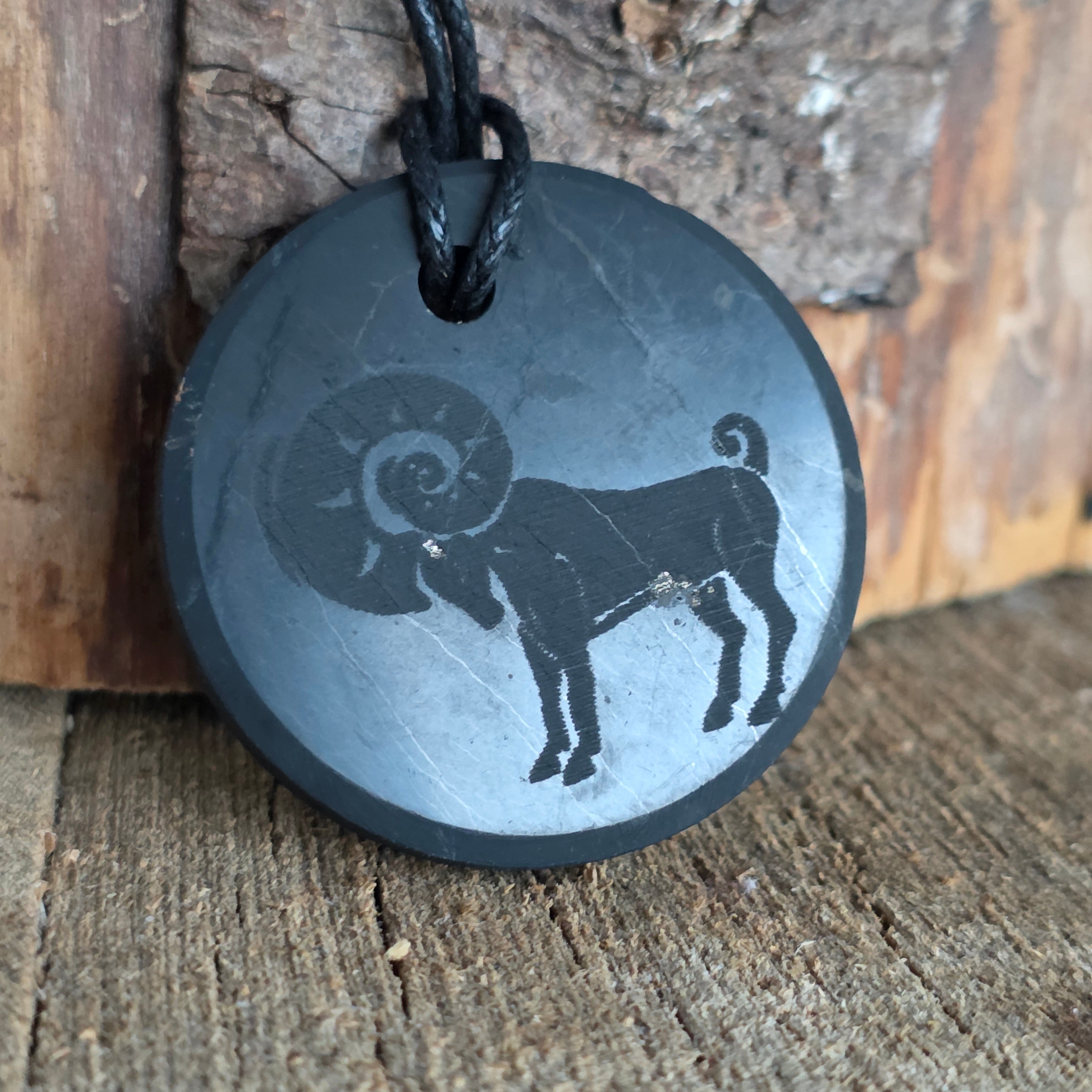 - Formă pandantiv: rotund, gravat cu simbol astrologic Capricorn pe ambele fete
