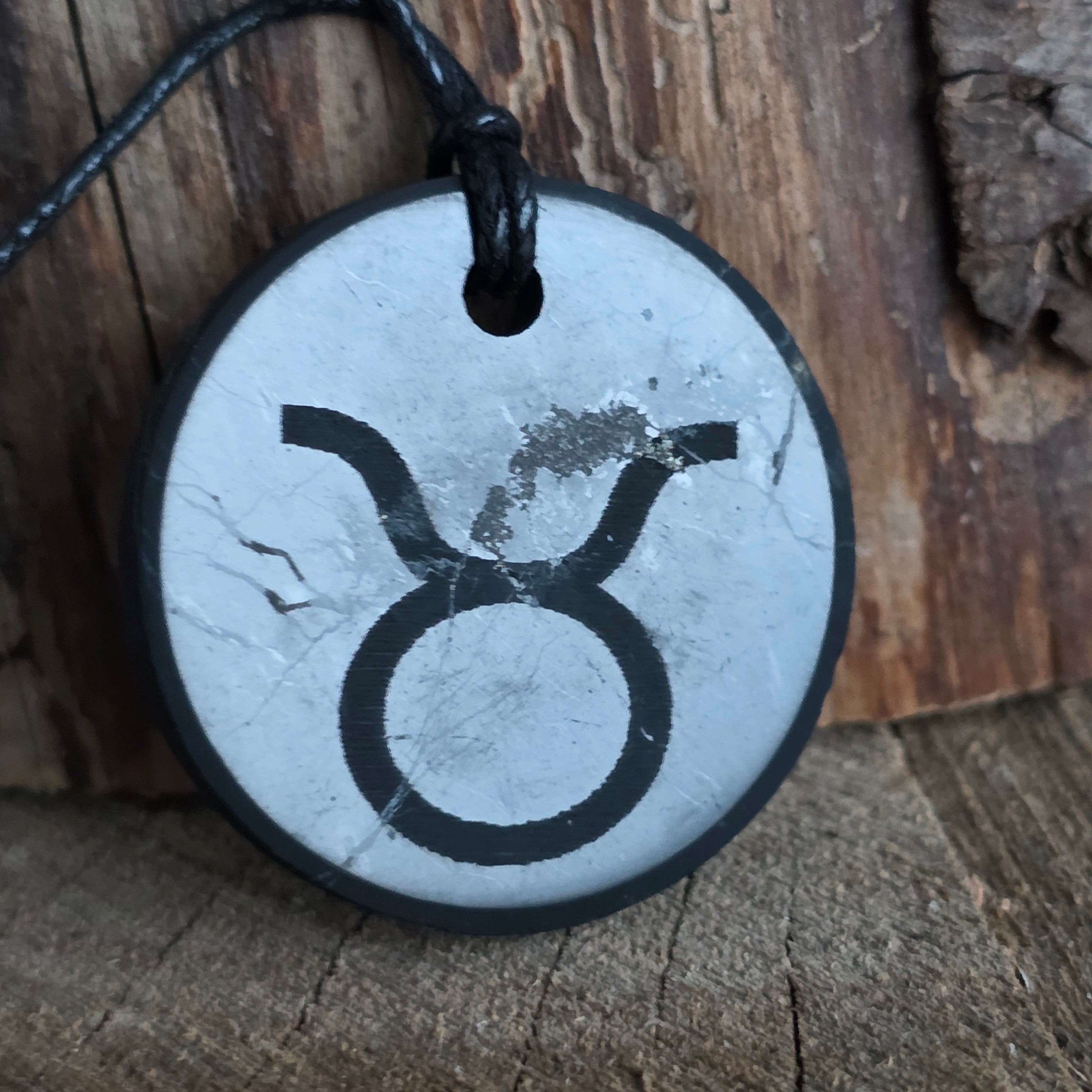 - Formă pandantiv: rotund, gravat cu simbol astrologic Taur pe ambele fete