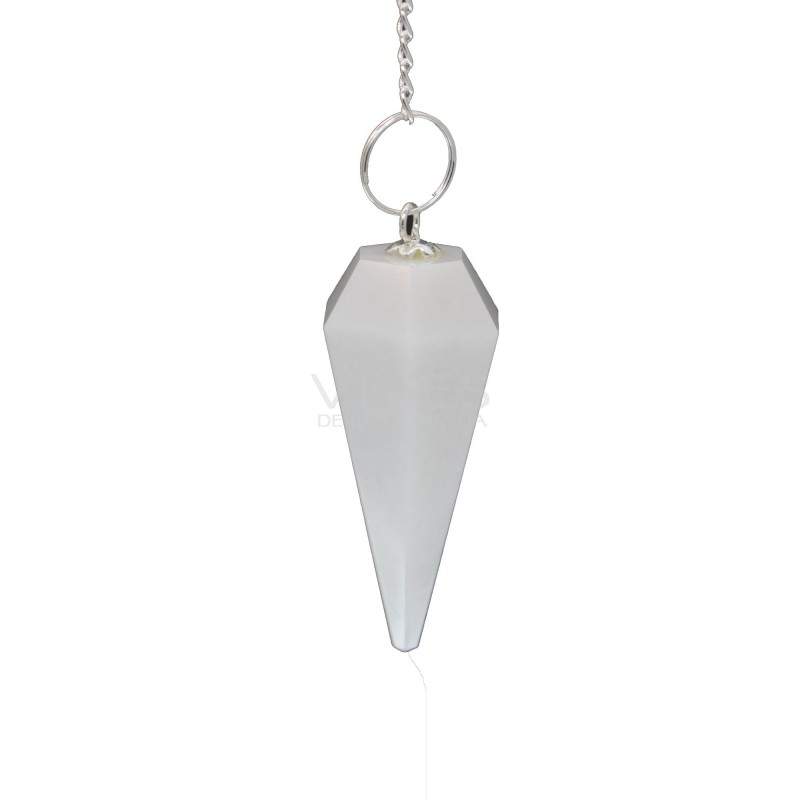 Acest pendul este realizat din cuarț alb lăptos, o varietate de cuarț caracterizată prin aspectul său opac sau ușor translucid, cu nuanțe albe delicate. Cuarțul este unul dintre cele mai răspândite minerale din scoarța terestră și este apreciat atât pentru frumusețea sa naturală, cât și pentru stabilitatea și duritatea sa.