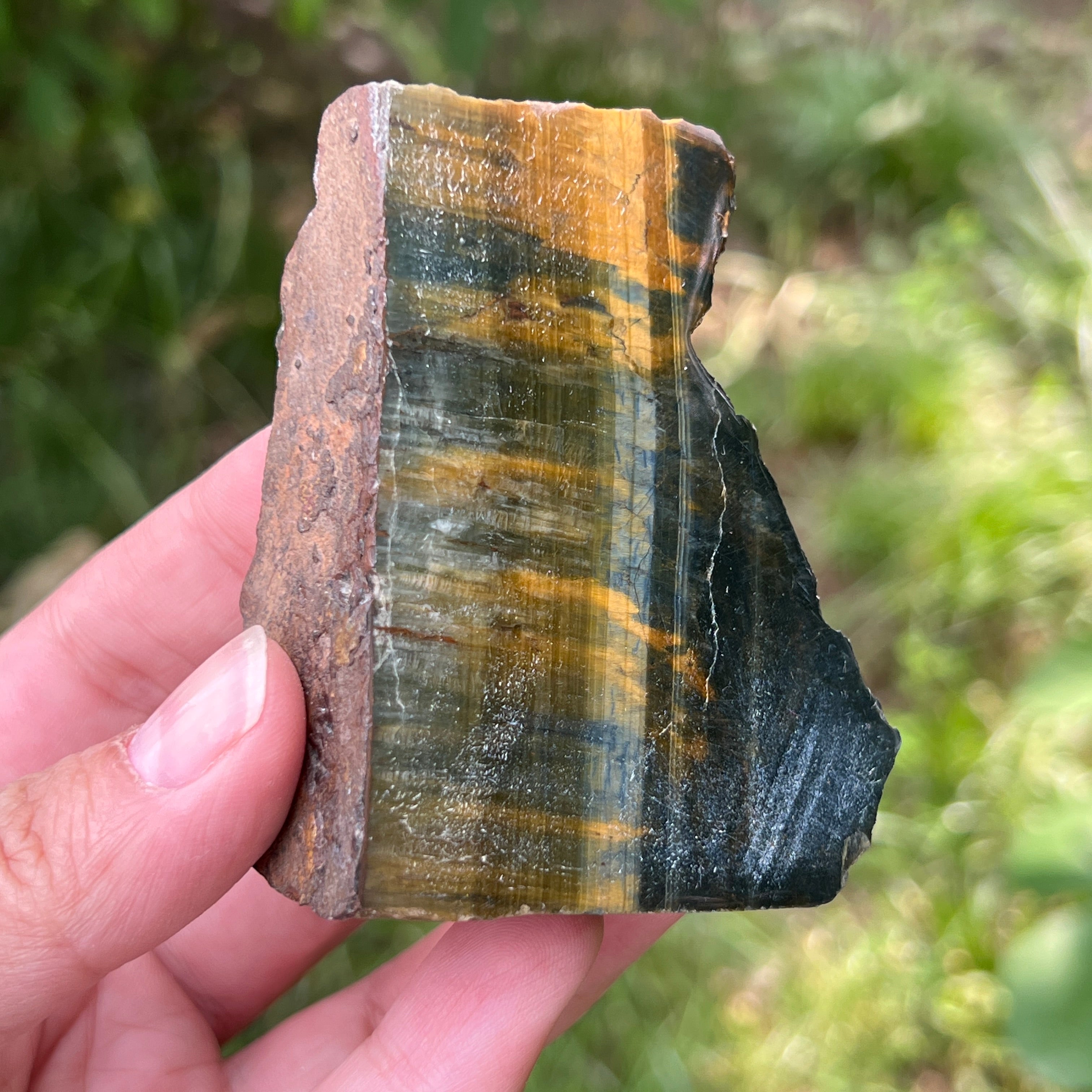 Descriere - Piatra bruta ochi de tigru albastru (ochi de soim) model 2