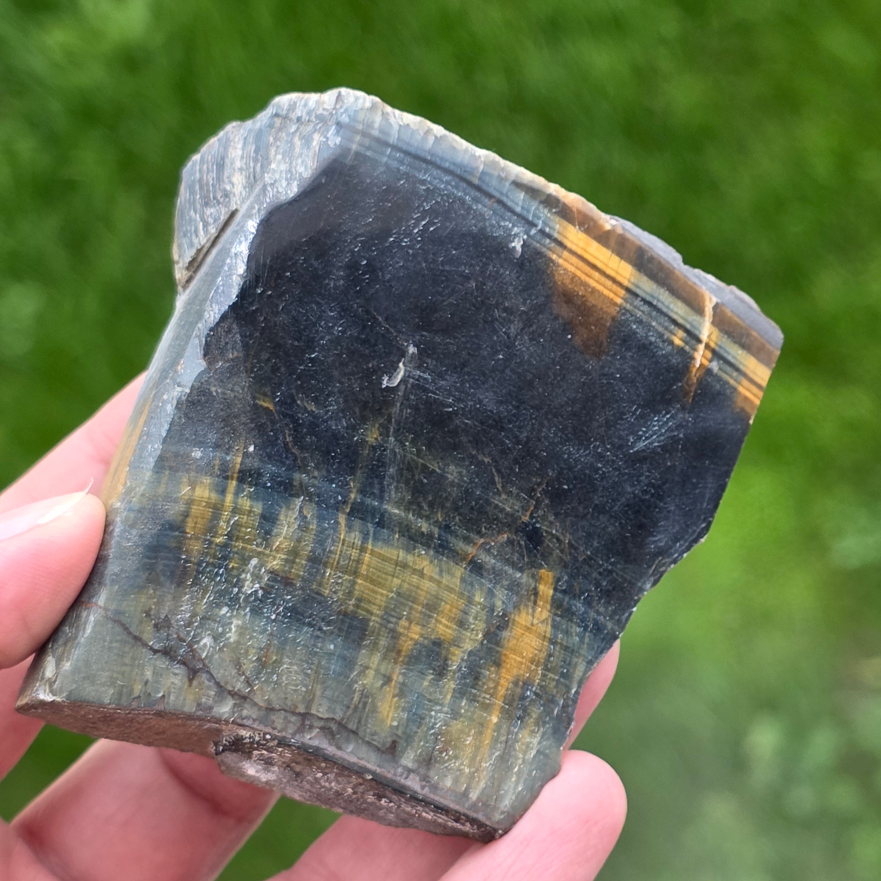 Descriere - Piatra bruta ochi de tigru albastru (ochi de soim) model 3