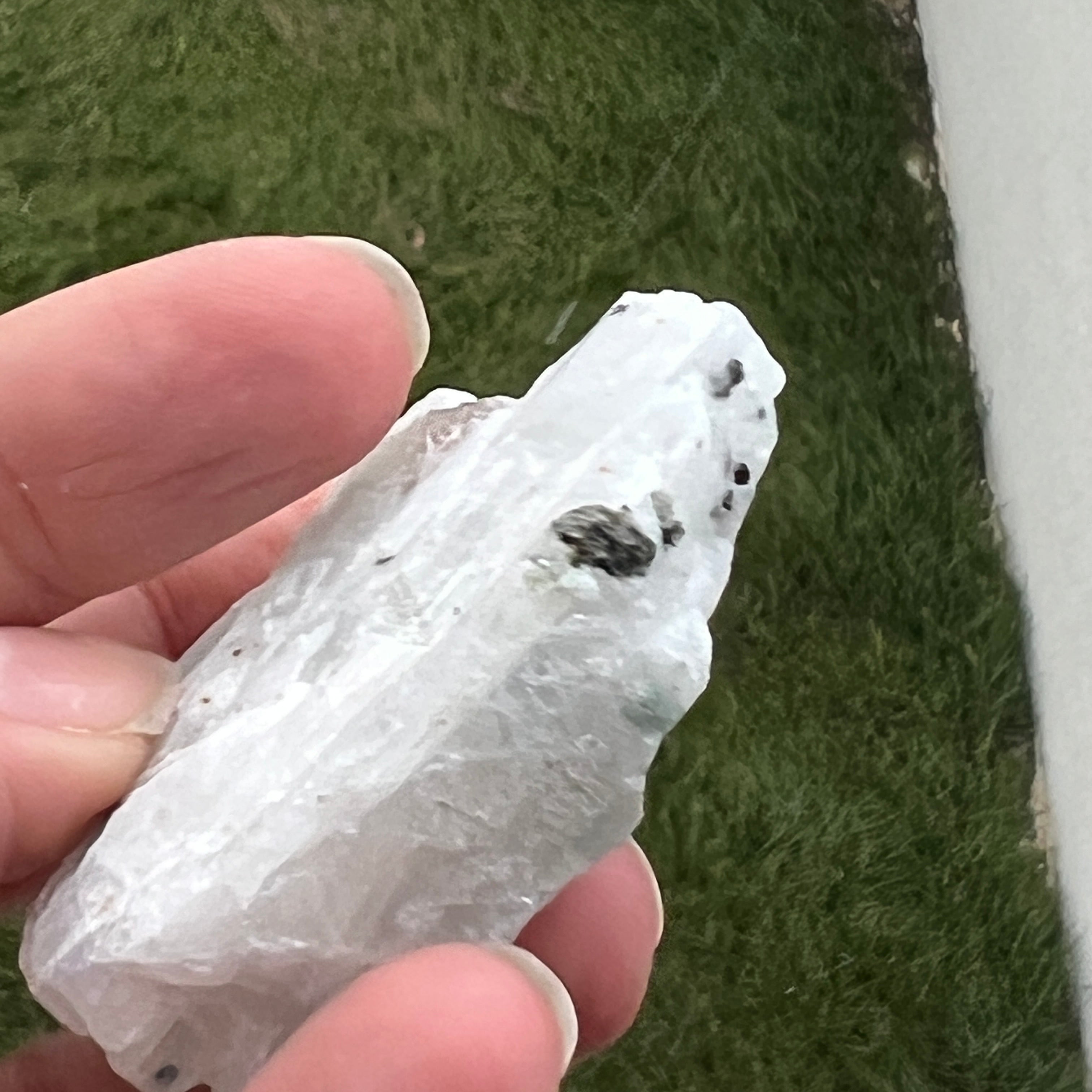 Descriere - Piatra lunii cu insertii turmalina -piatra bruta m10