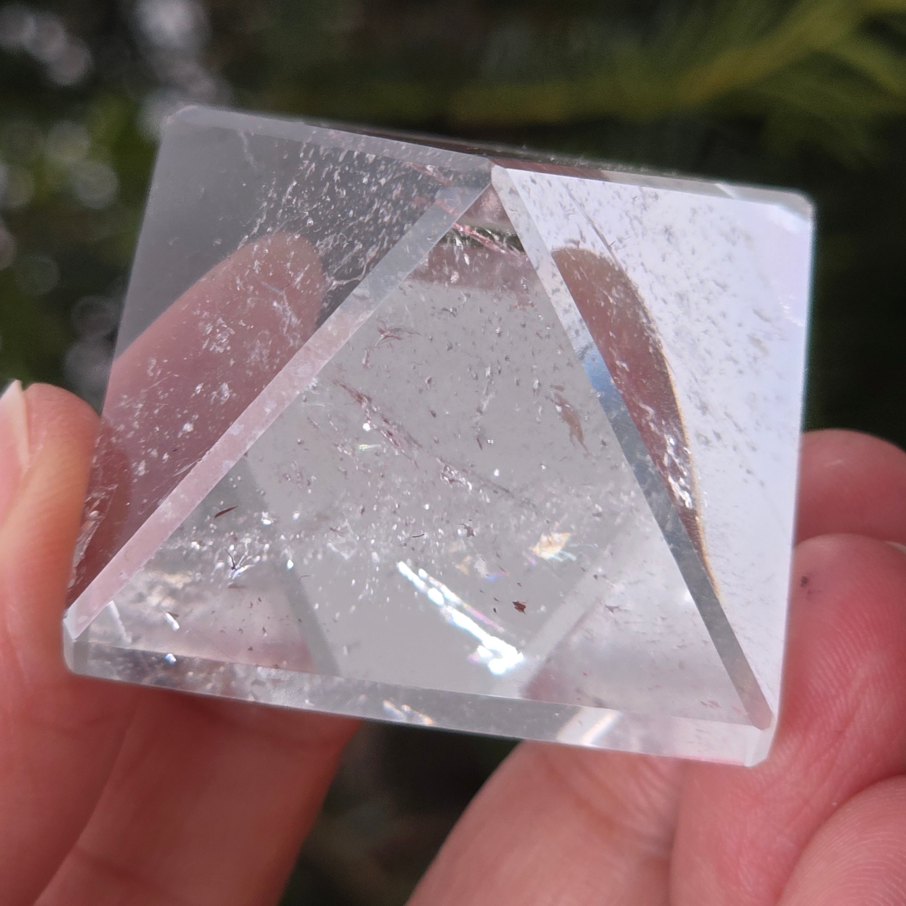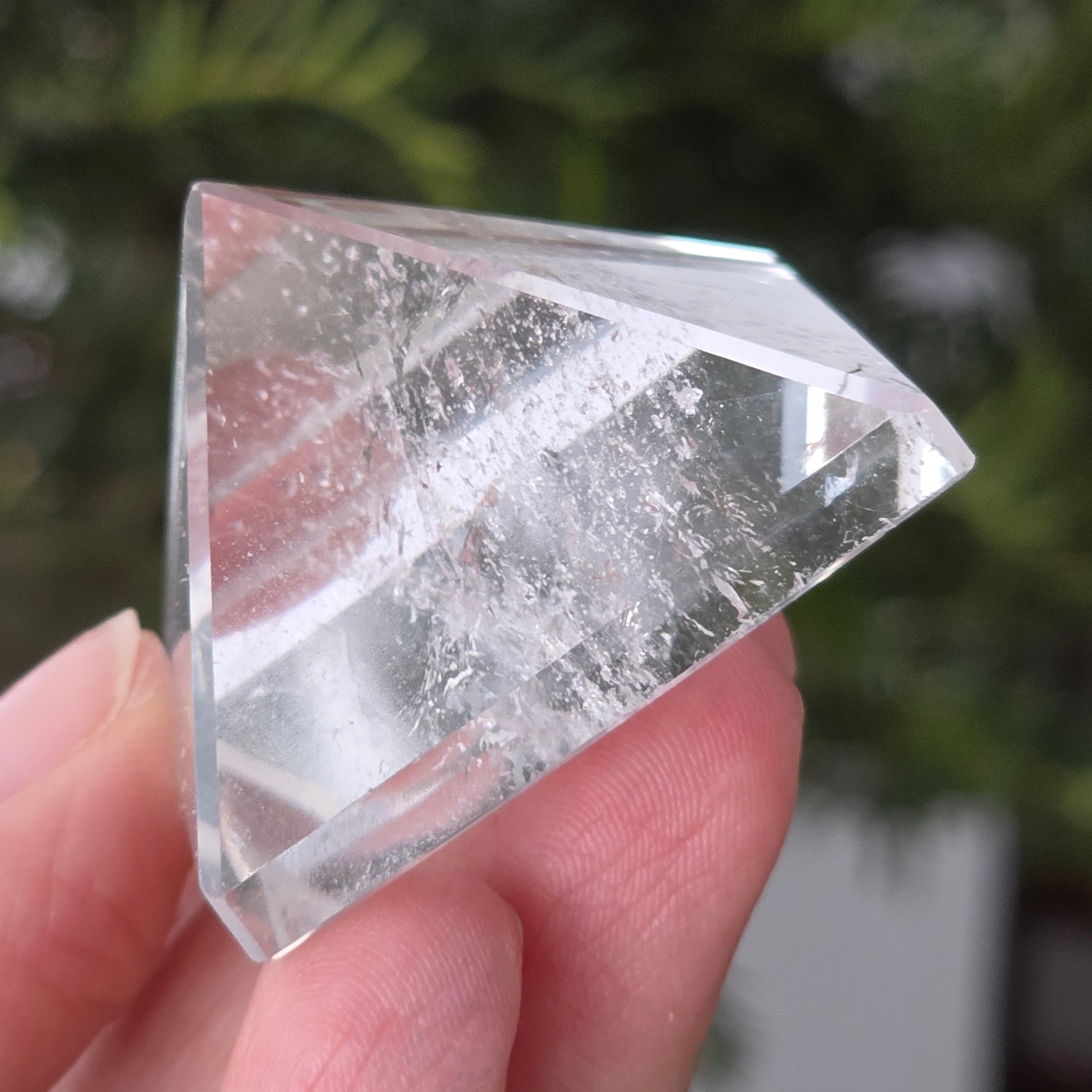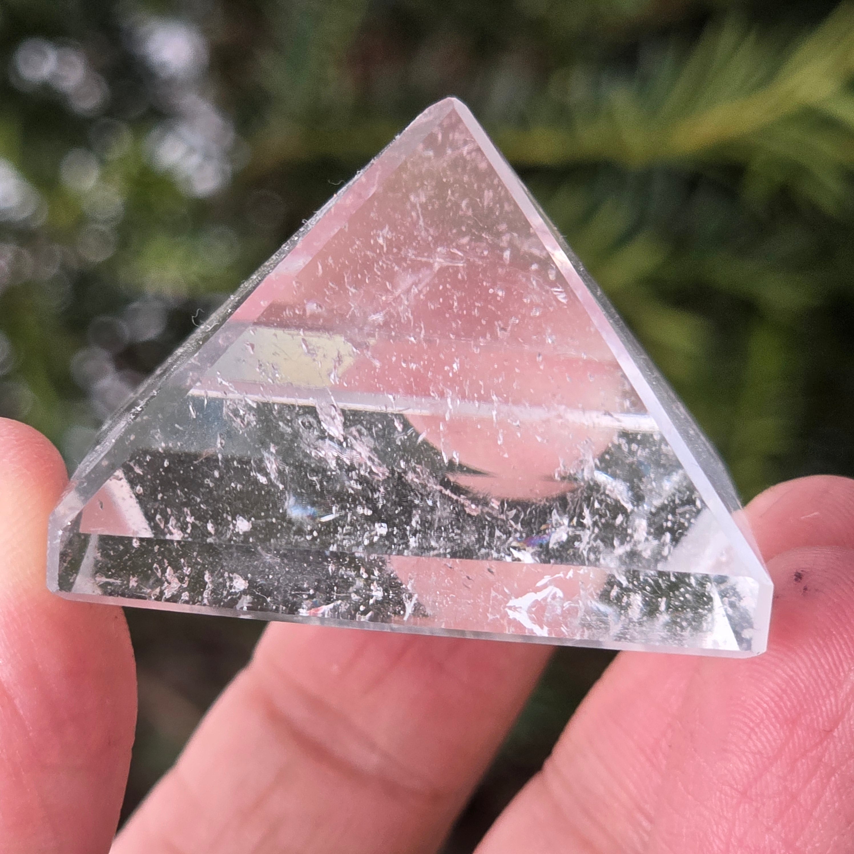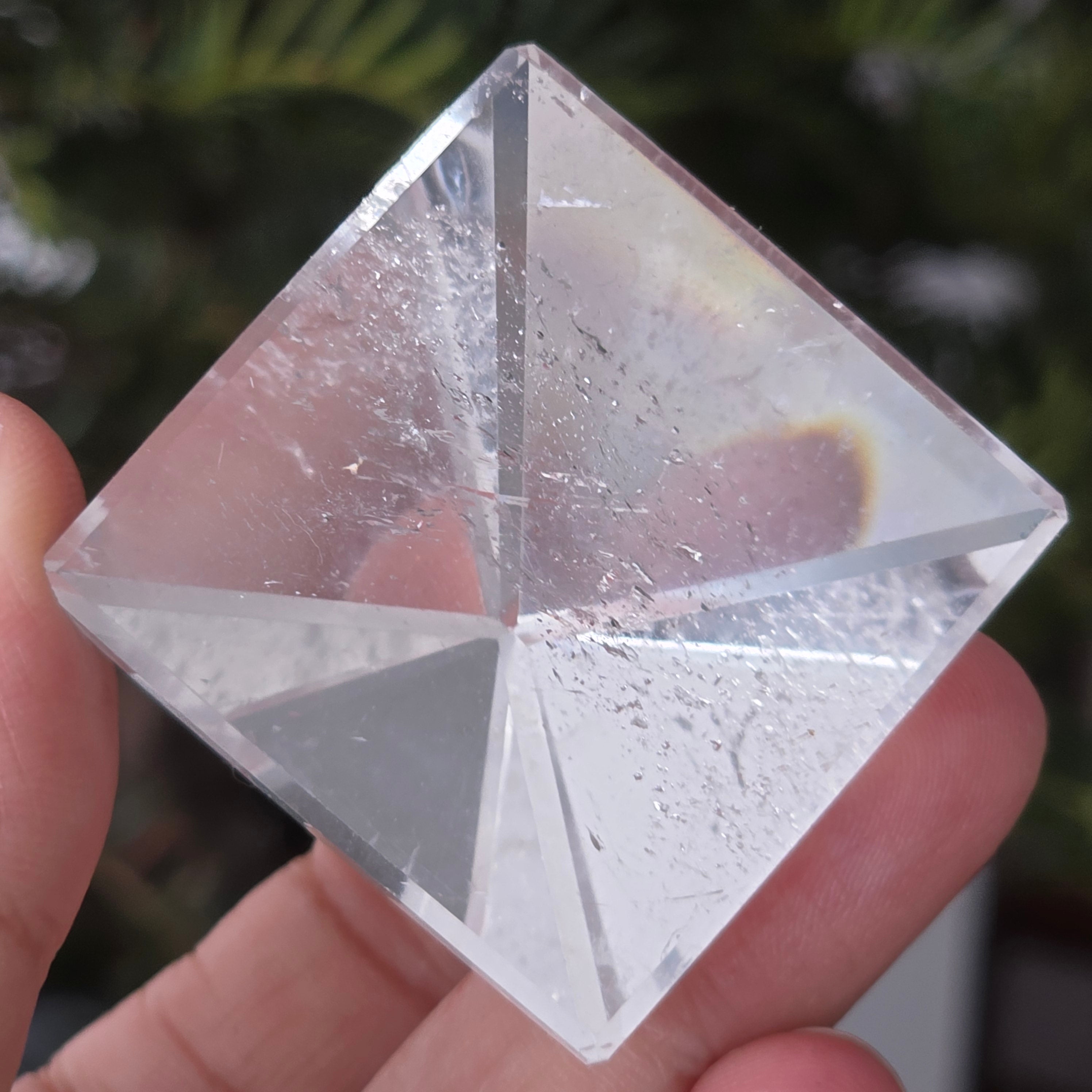Piramida din cuarț incolor este asociată cu claritatea, amplificarea intenției și echilibrul energetic, forma sa concentrând și direcționând energia într-un mod ordonat. Este folosită adesea ca simbol al minții limpezi și al armoniei dintre gând, emoție și acțiune.