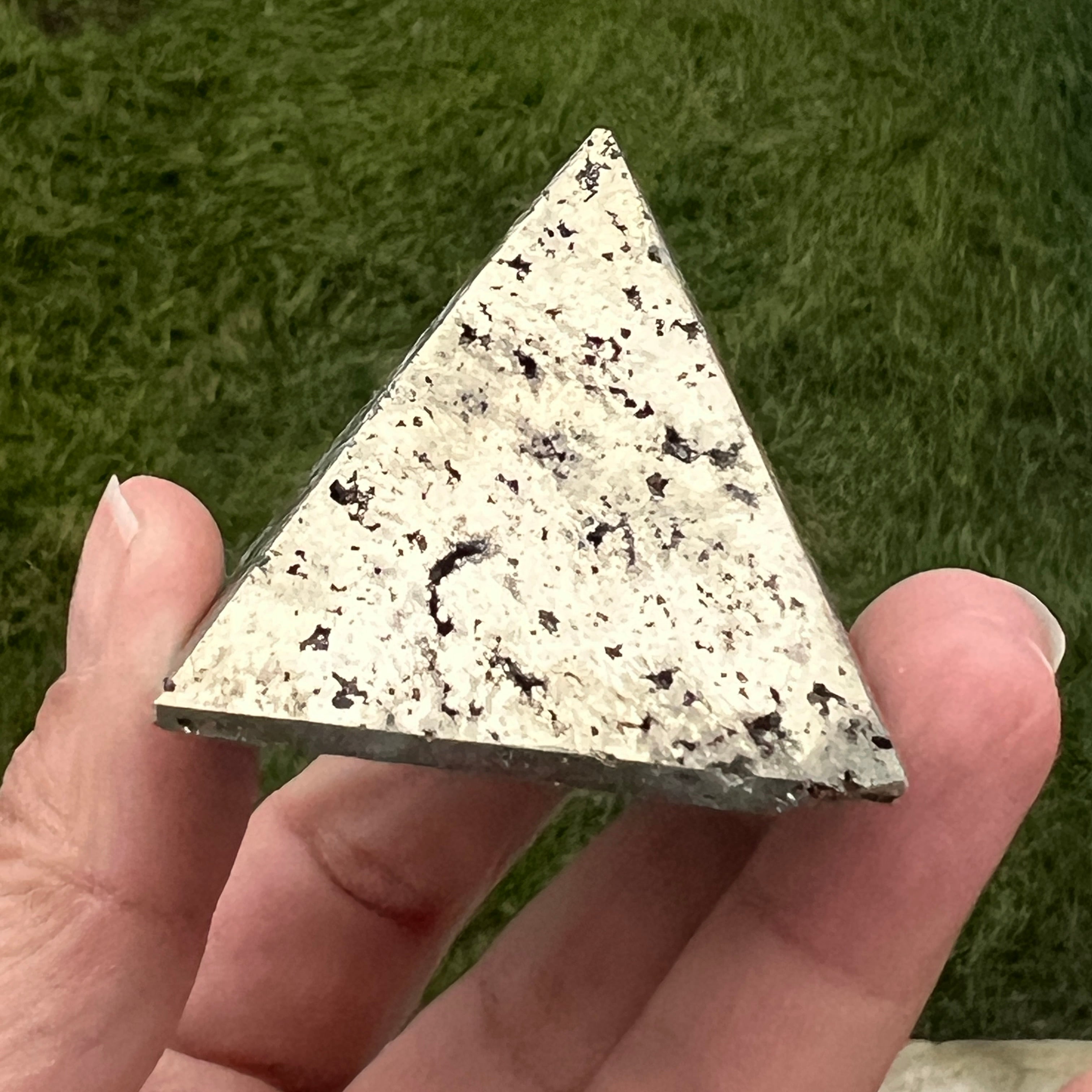 Piramida din pirita peruviană emană putere, abundență și claritate mentală. Fiecare reflex auriu amintește de lumina conștienței și de forța interioară care transformă intențiile în realitate. O piesă spectaculoasă, potrivită atât pentru colecționari, cât și ca obiect decorativ cu energie vibrantă.