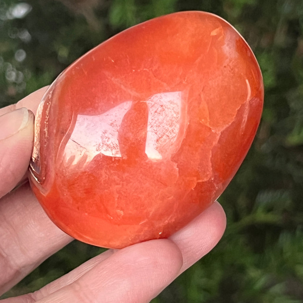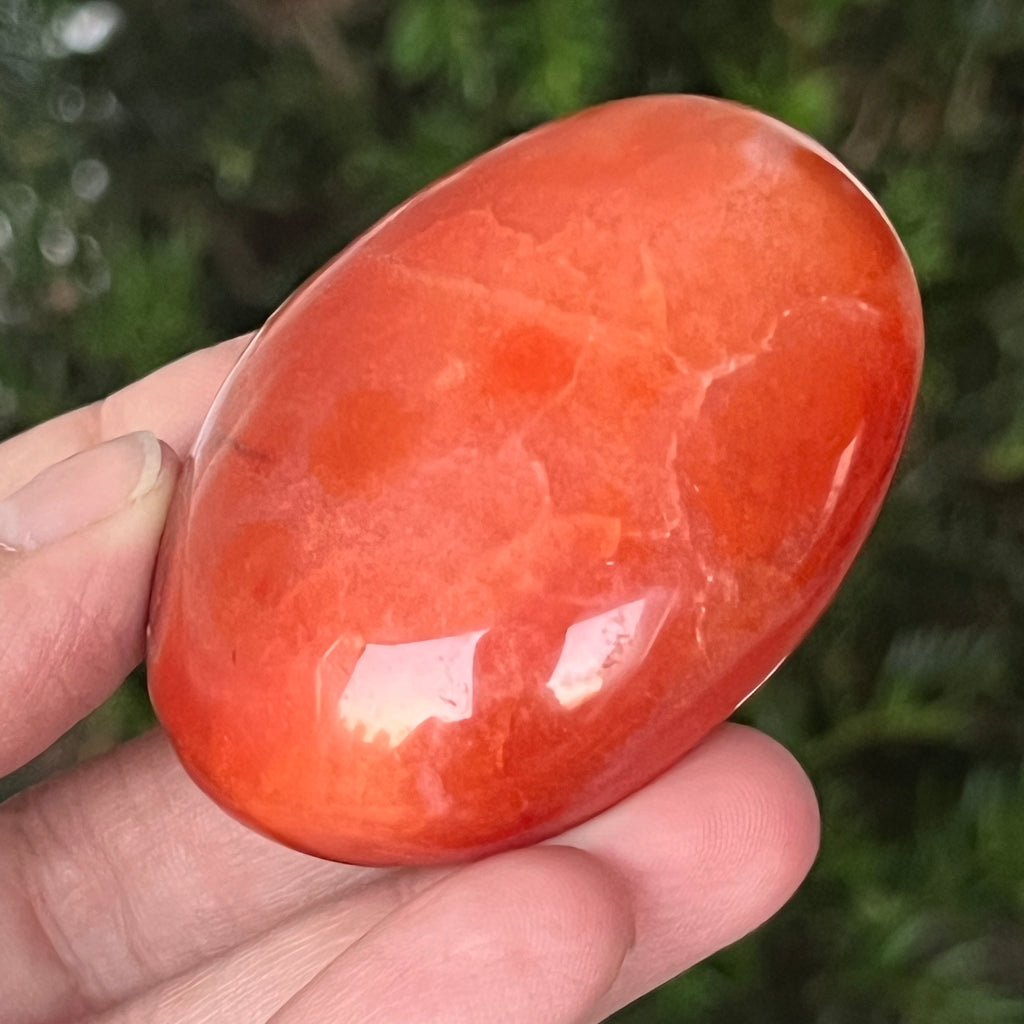 Ținut între palme, acest palmstone din carneol natural devine un instrument al energiei pozitive și al clarității interioare. Poate fi folosit în meditație, în practici de ancorare sau pur și simplu ca obiect decorativ care emană căldură, optimism și forță blândă.