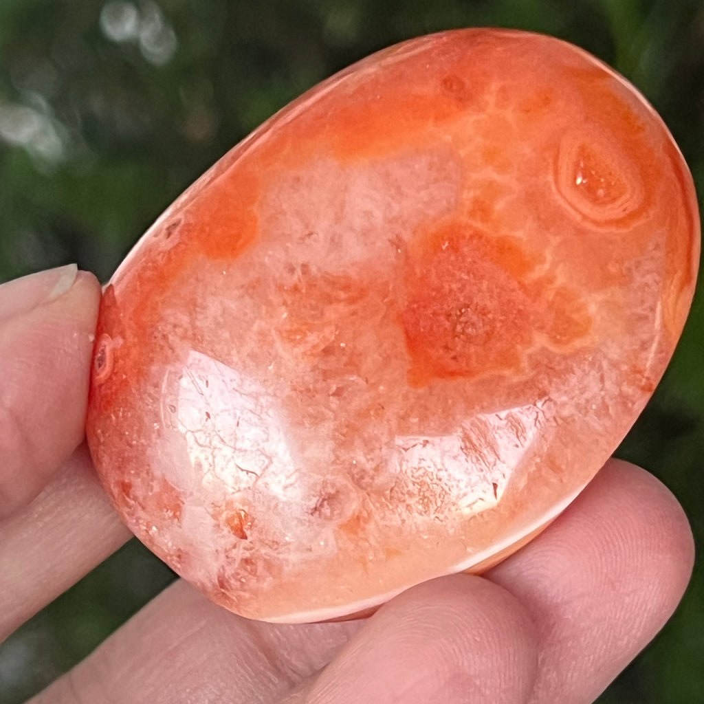 Ținut între palme, acest palmstone din carneol natural devine un instrument al energiei pozitive și al clarității interioare. Poate fi folosit în meditație, în practici de ancorare sau pur și simplu ca obiect decorativ care emană căldură, optimism și forță blândă.