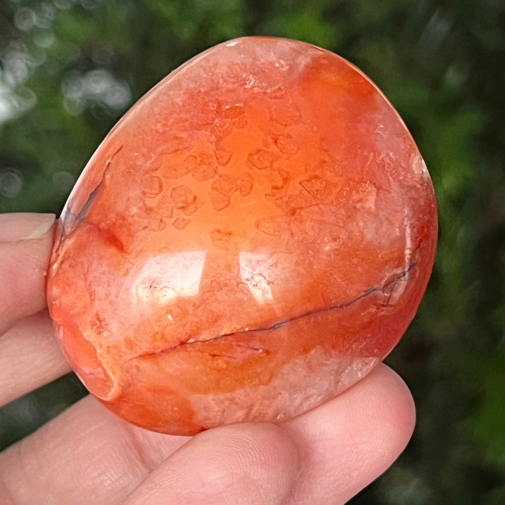 Ținut între palme, acest palmstone din carneol natural devine un instrument al energiei pozitive și al clarității interioare. Poate fi folosit în meditație, în practici de ancorare sau pur și simplu ca obiect decorativ care emană căldură, optimism și forță blândă.