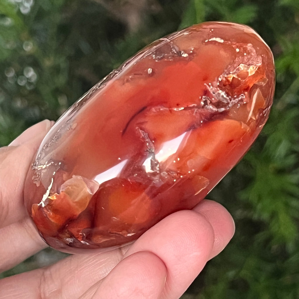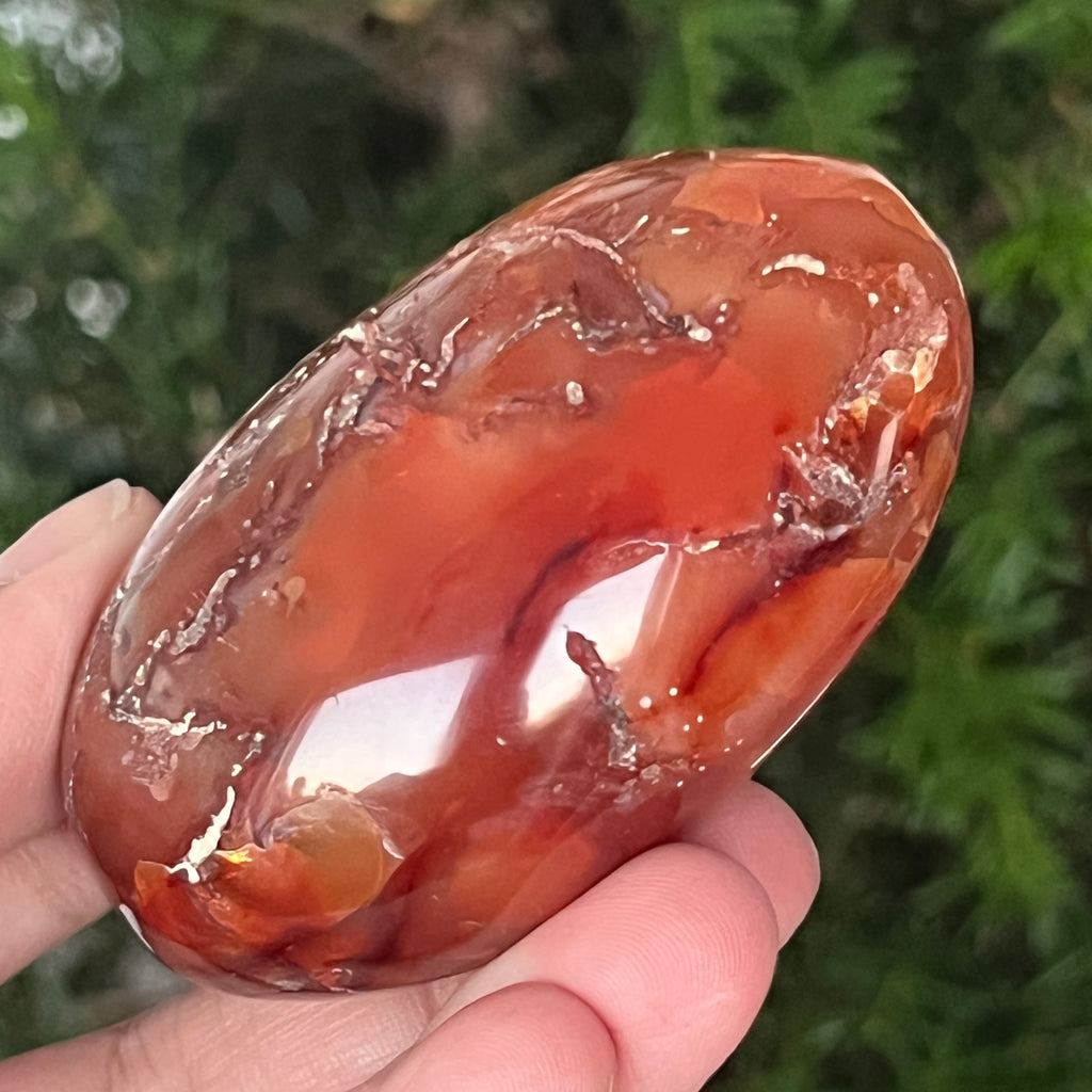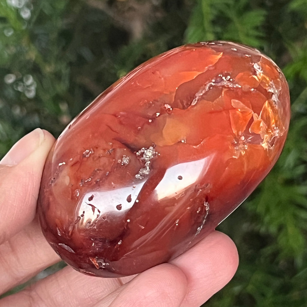 Ținut între palme, acest palmstone din carneol natural devine un instrument al energiei pozitive și al clarității interioare. Poate fi folosit în meditație, în practici de ancorare sau pur și simplu ca obiect decorativ care emană căldură, optimism și forță blândă.