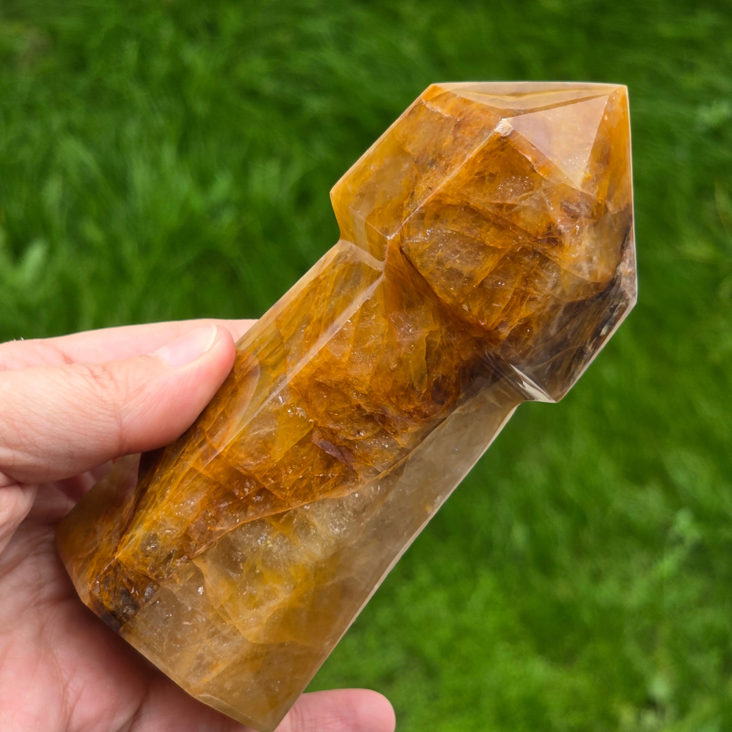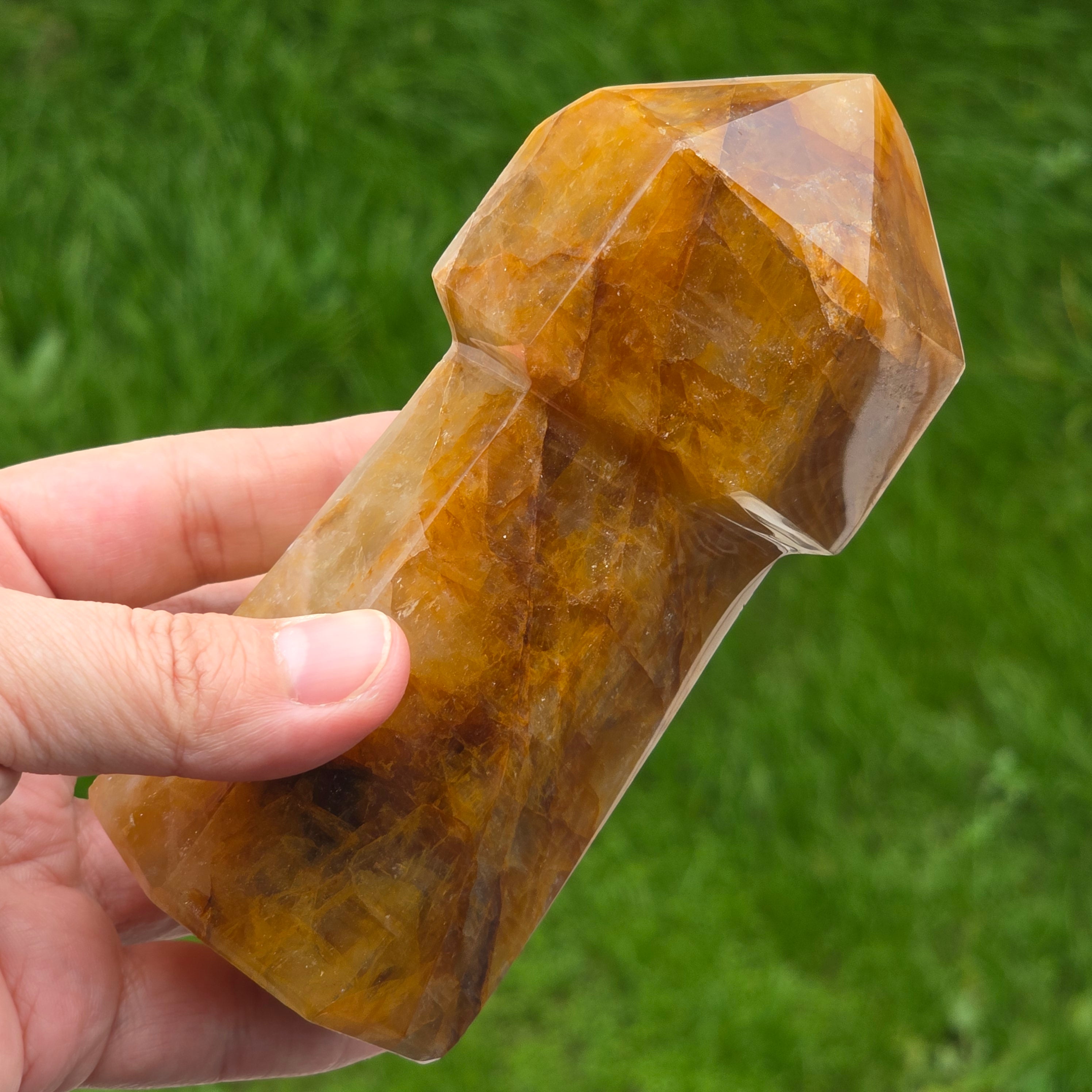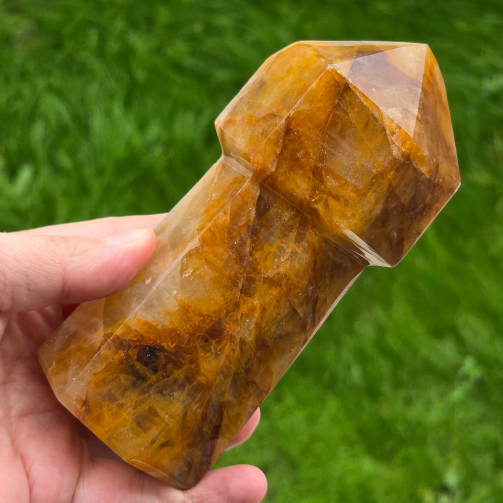 Sceptrul din Cuart Lămâie este o piesă luminoasă și expresivă, sculptată pentru a evidenția transparența blândă a cristalului și nuanțele sale calde de galben. Cuartul lămâie este cunoscut pentru claritatea sa vizuală și pentru reflexiile delicate care se formează atunci când este atins de lumină, iar forma de sceptru îi conferă o prezență elegantă și direcțională. În forma de sceptru, cristalul devine ideal pentru direcționarea energiei, lucrul pe meridiane, masaj energetic, activarea intențiilor și eliberarea tensiunilor din corp. Vârful său bine definit permite lucrul precis, iar partea inferioară stabilizează fluxul energetic în timpul meditației sau terapiei.
