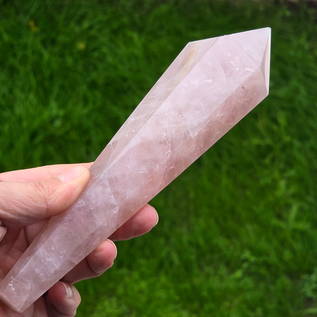 Sceptrul din cuart roz este un instrument folosit în special în practici energetice, masaj holistic și meditație. Forma sa alungită și vârful bine definit permit direcționarea intenției, echilibrarea fluxului energetic și focalizarea atenției în zonele în care ai nevoie de calm sau claritate. Este utilizat deseori pentru masaj energetic, fiind ideal pentru trasee lungi pe meridiane, pentru relaxarea zonei umerilor, spatelui sau palmelor. În meditație, poate fi ținut în mână pentru a amplifica starea de liniște și conectare interioară.