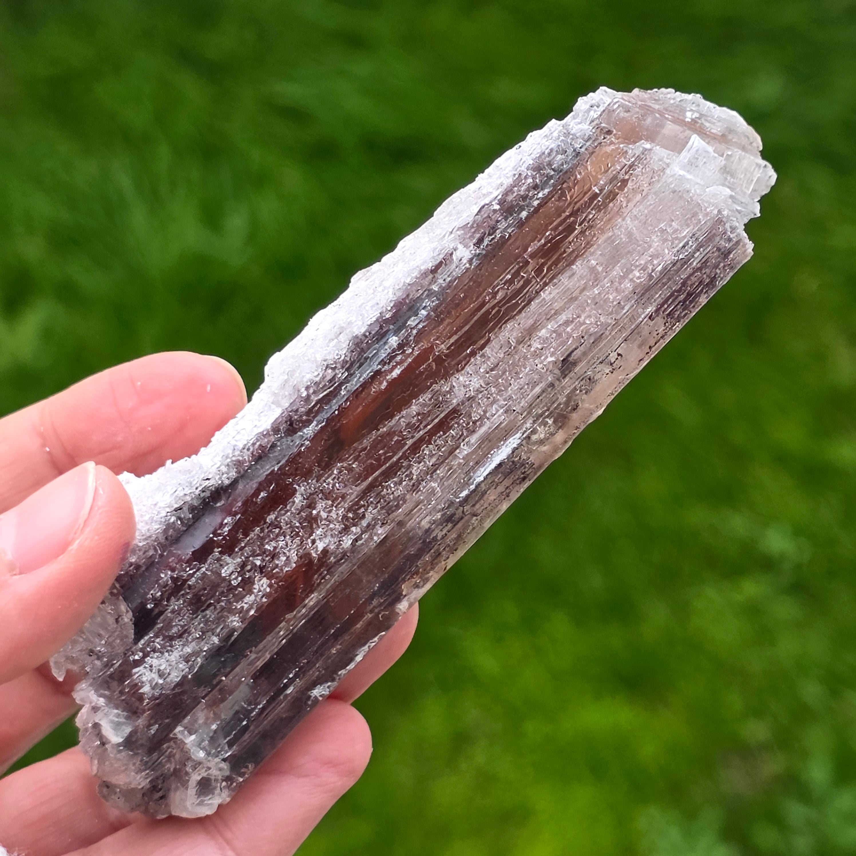 Acest specimen de selenit cu hematit din Mexic este o piesă mineralogică autentică, apreciată pentru contrastul natural dintre transparența lăptoasă a selenitului și nuanțele metalice, brun-roșiatice ale hematitului. Asocierea dintre aceste două minerale creează un aspect vizual puternic.
