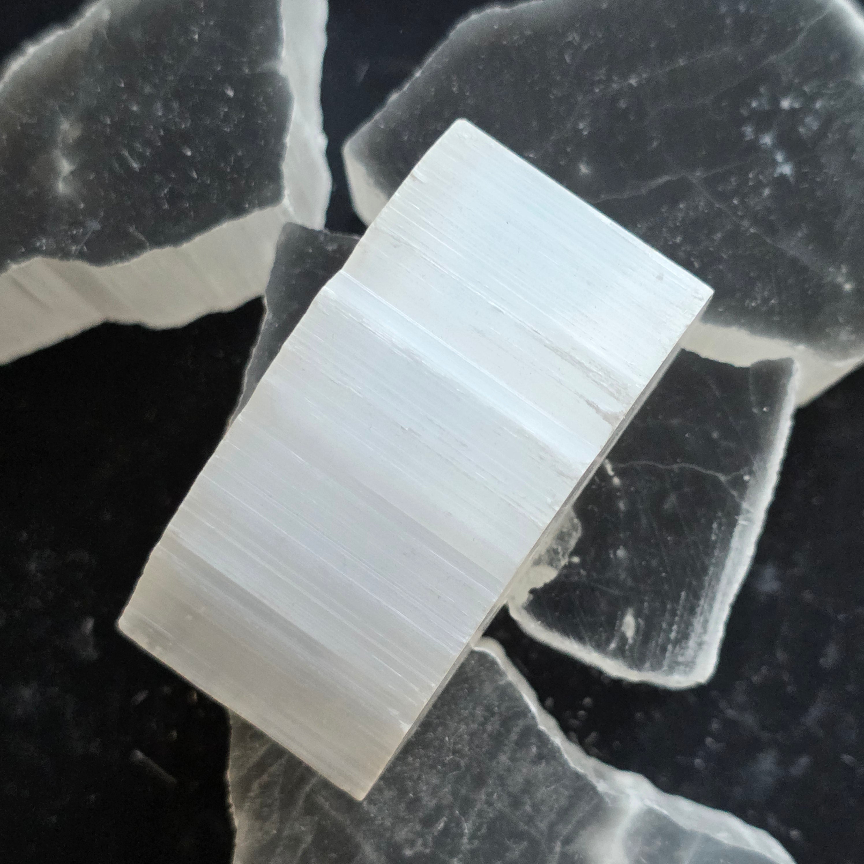 Selenitul este adesea folosit ca un cristal de sprijin în practicile spirituale, ajutând la deschiderea și activarea chakrelor 6 si 7, care sunt asociate cu intuiția, clarviziunea și conexiunea la nivel spiritual.