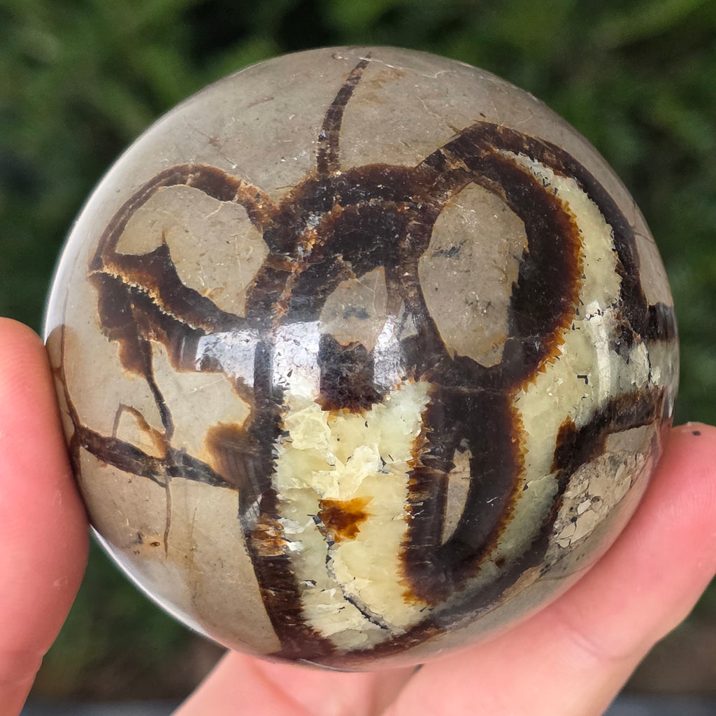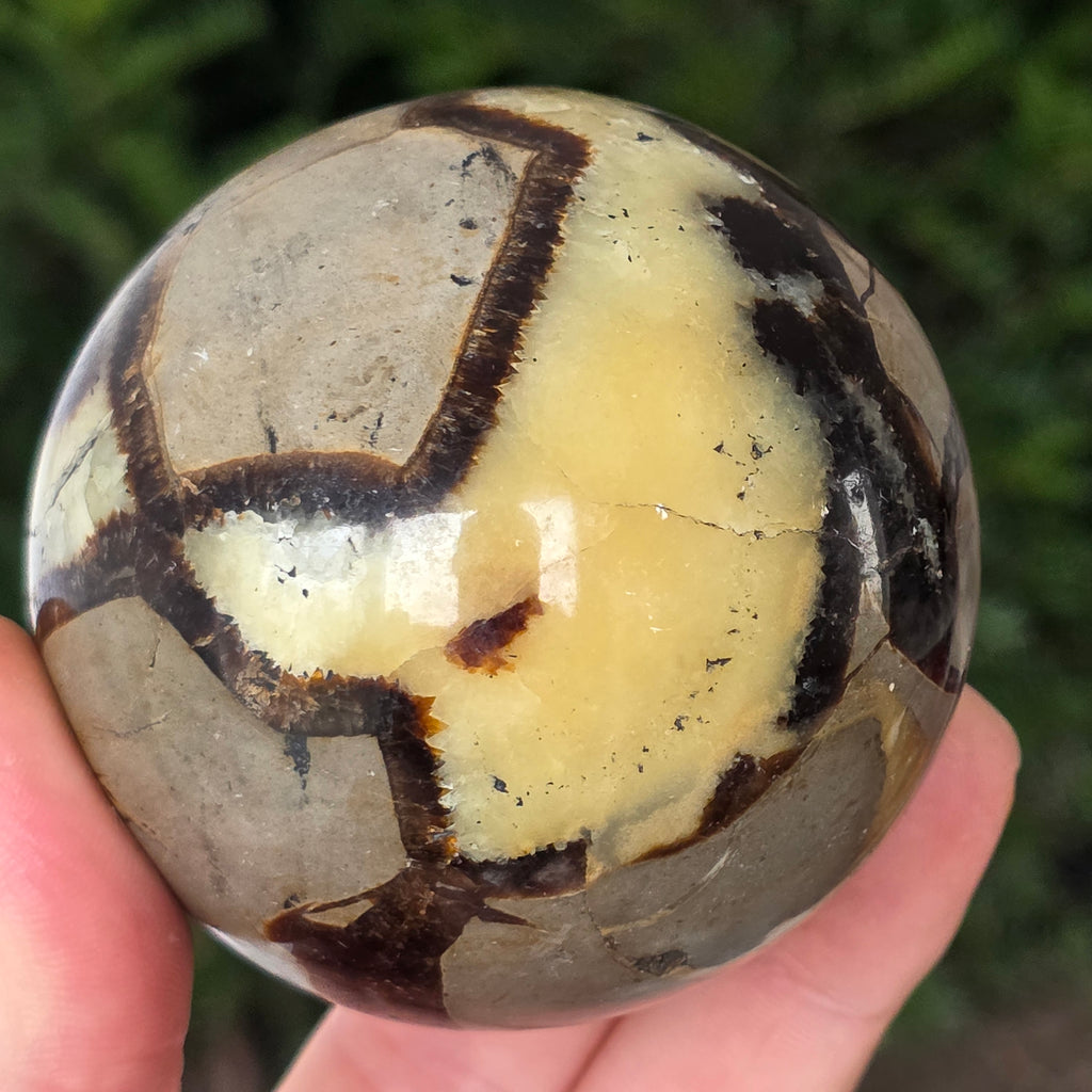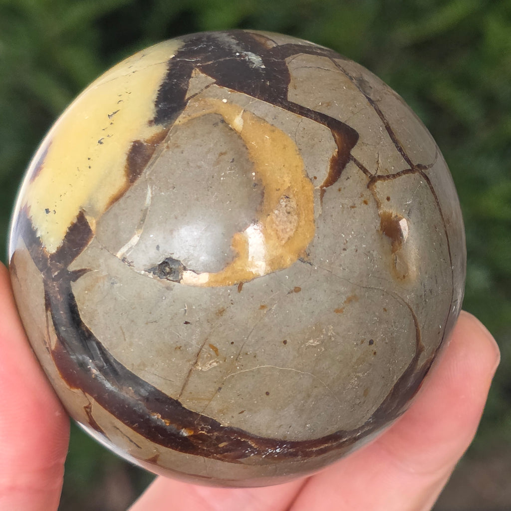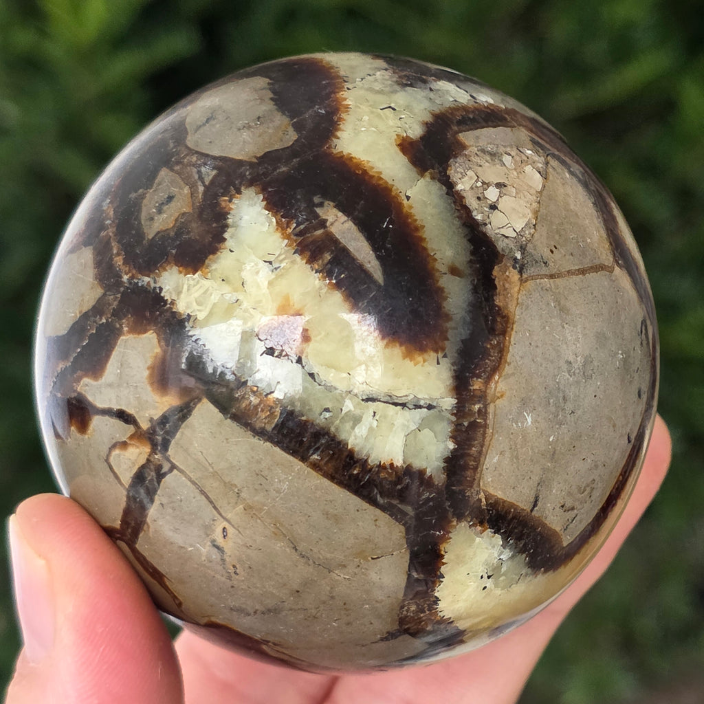 Septaria este formata din calcit, limonit, gips si baritina, minerale care formeaza un joc unic in aceasta piatra si-i dau un aspect aparte.