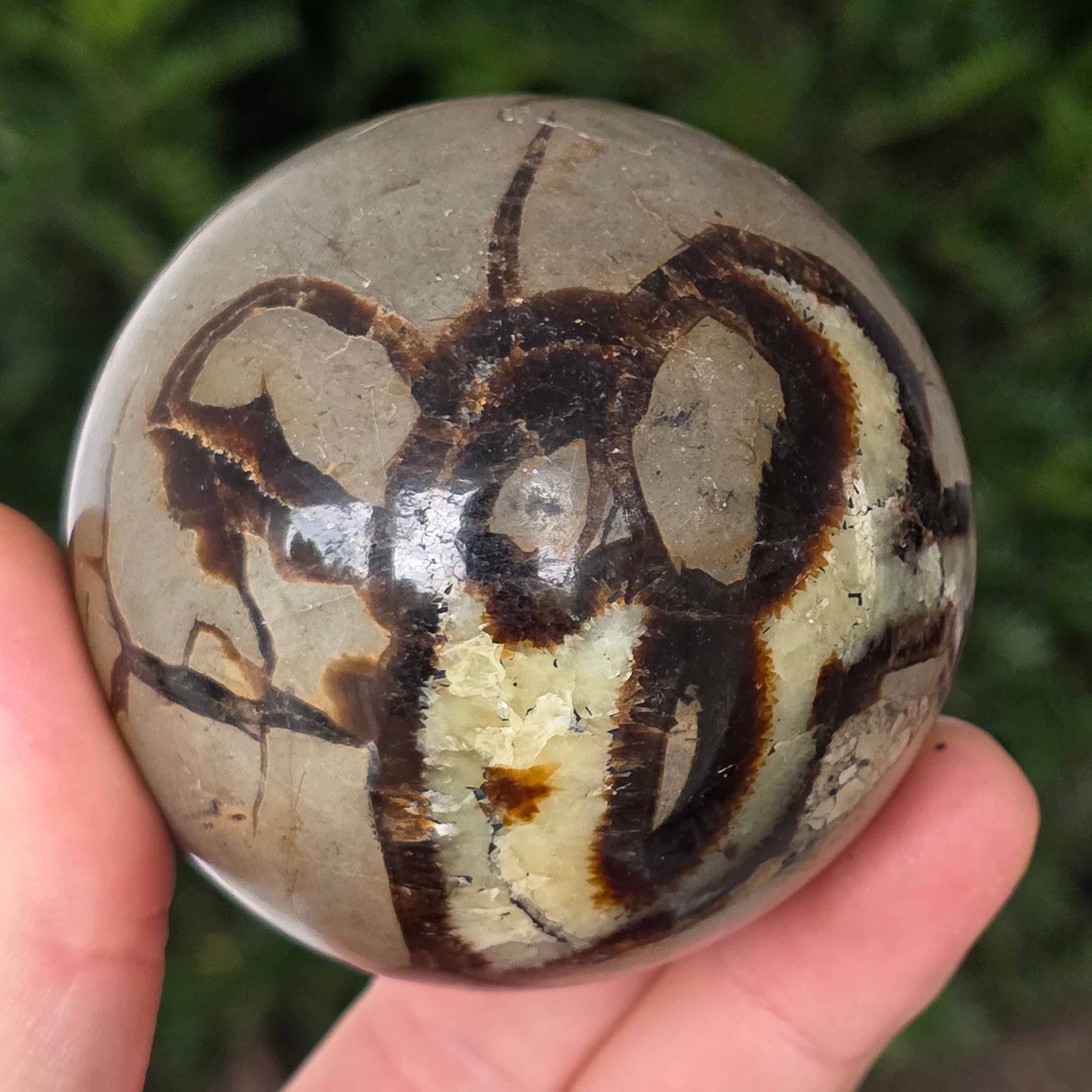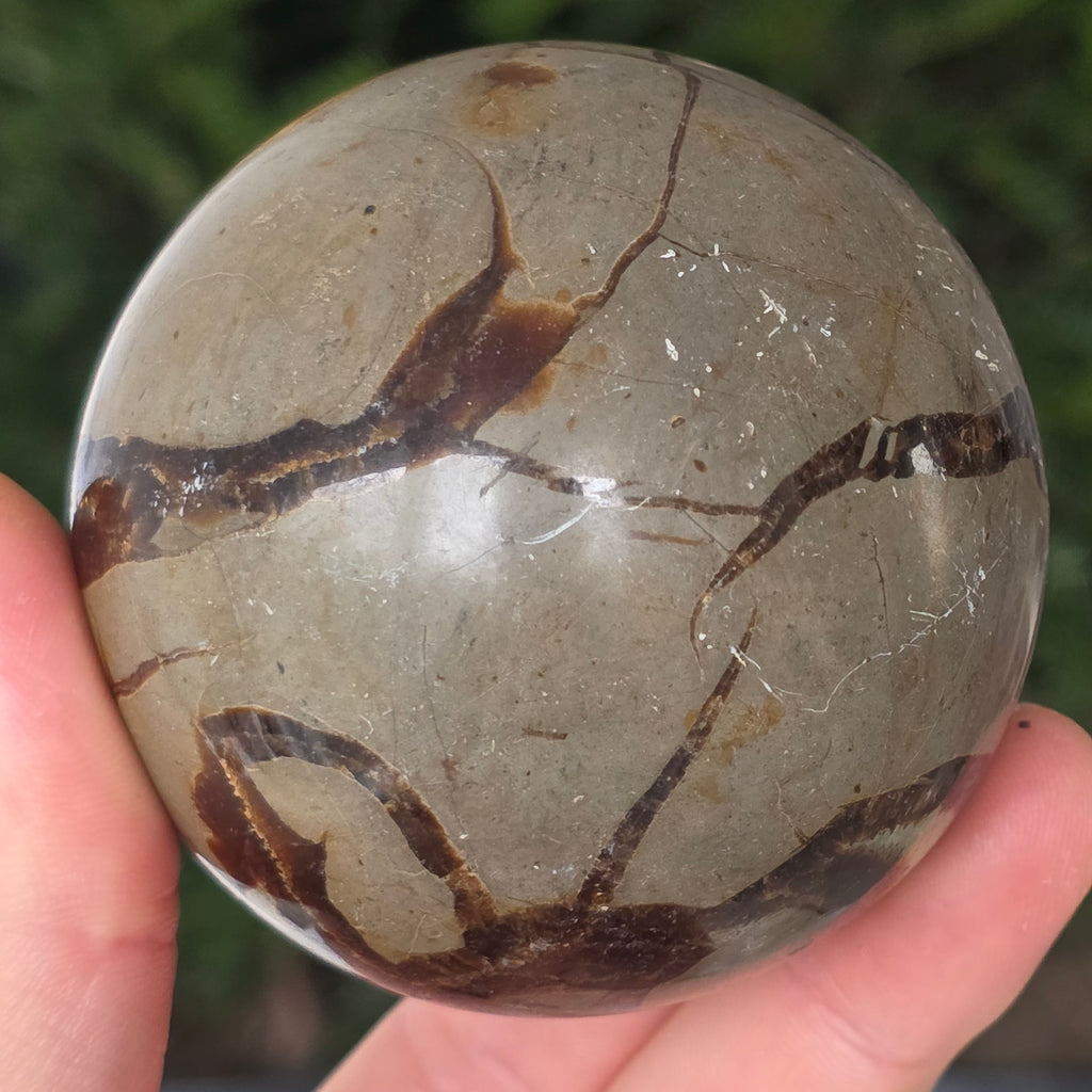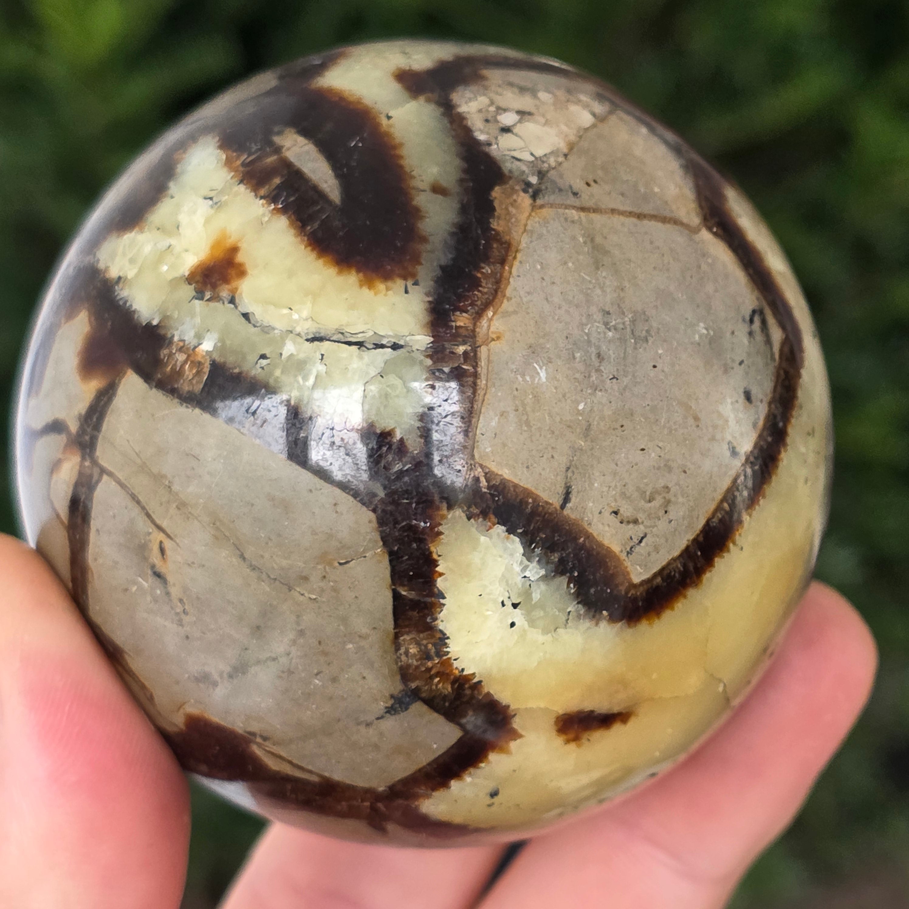 Septaria este formata din calcit, limonit, gips si baritina, minerale care formeaza un joc unic in aceasta piatra si-i dau un aspect aparte.