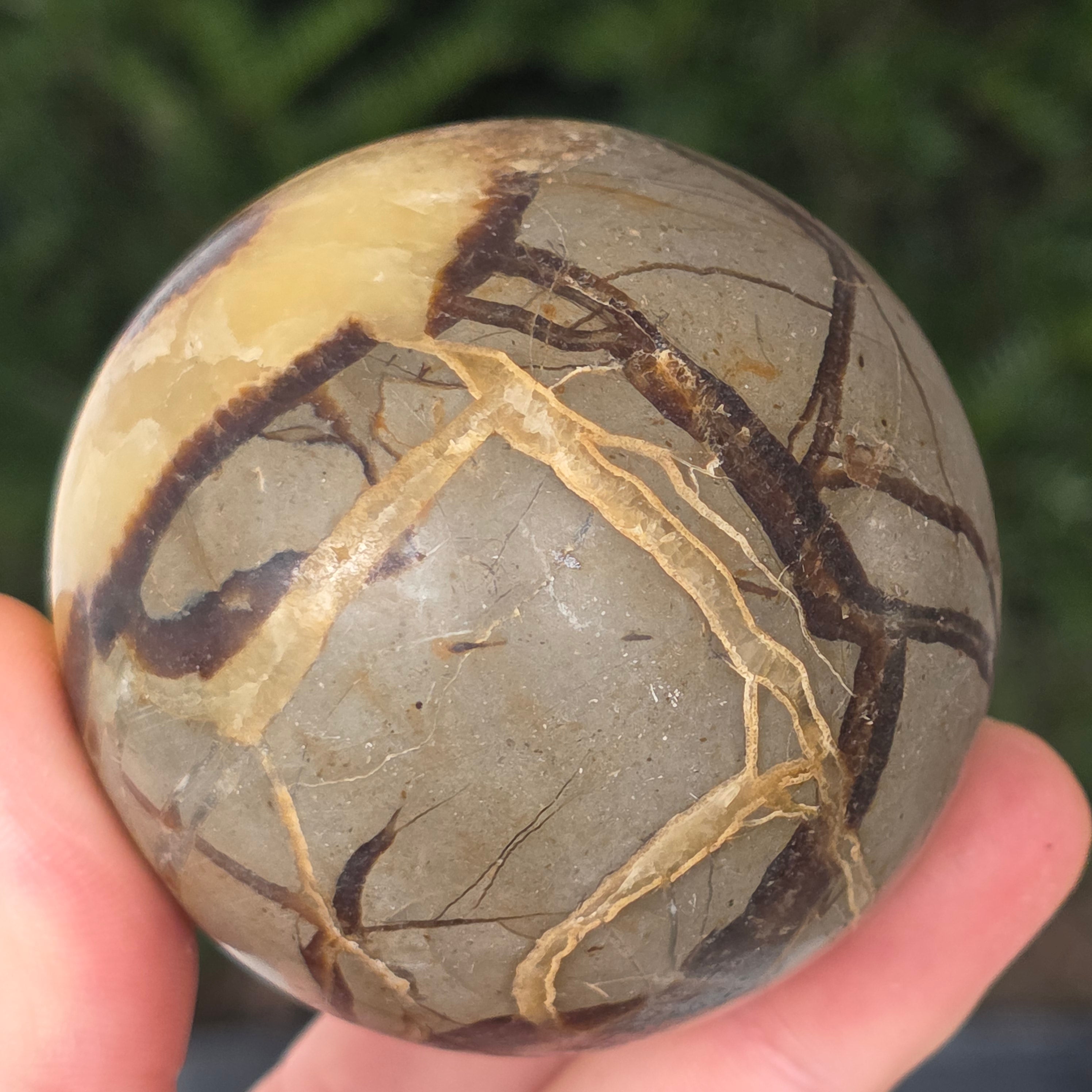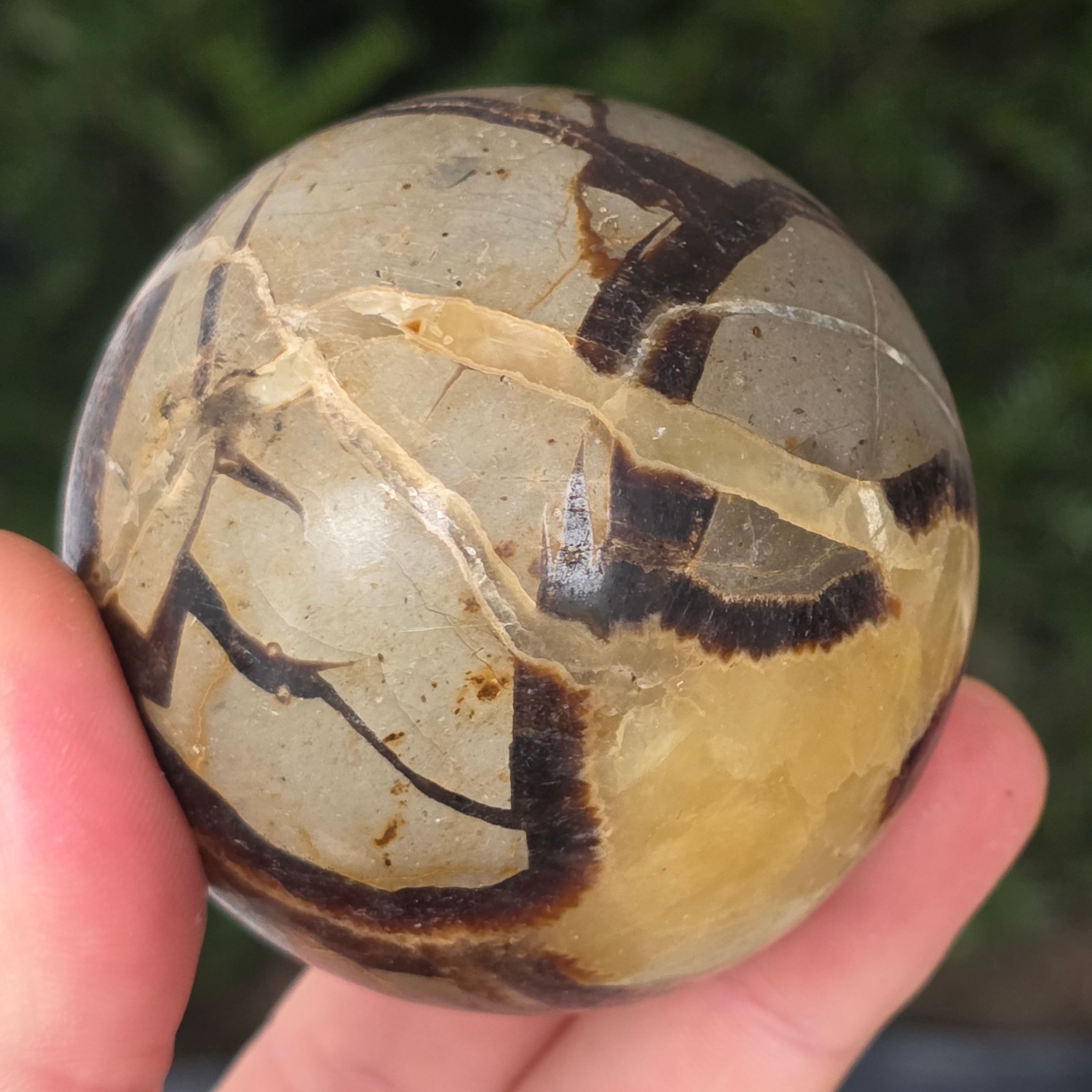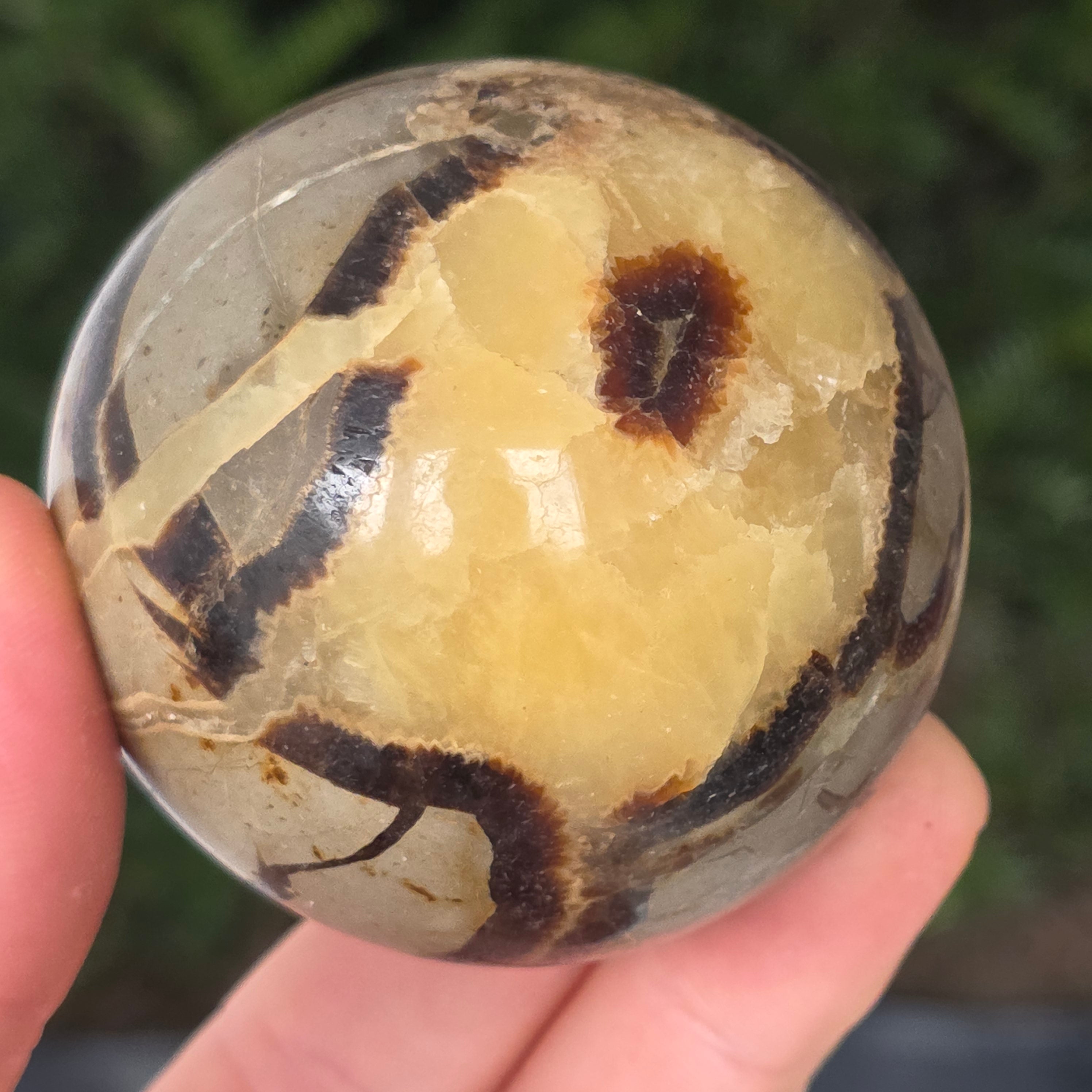 Septaria este formata din calcit, limonit, gips si baritina, minerale care formeaza un joc unic in aceasta piatra si-i dau un aspect aparte.
