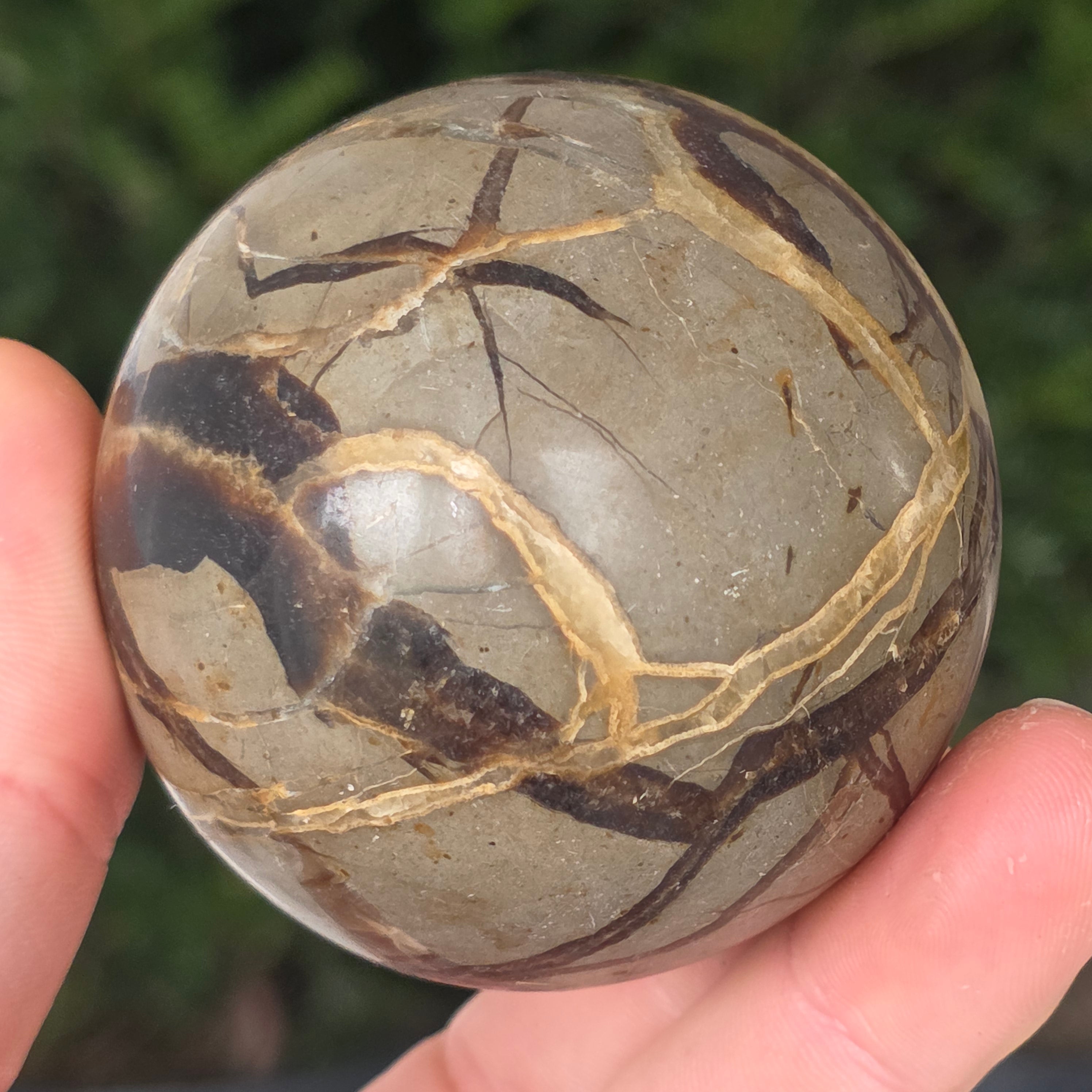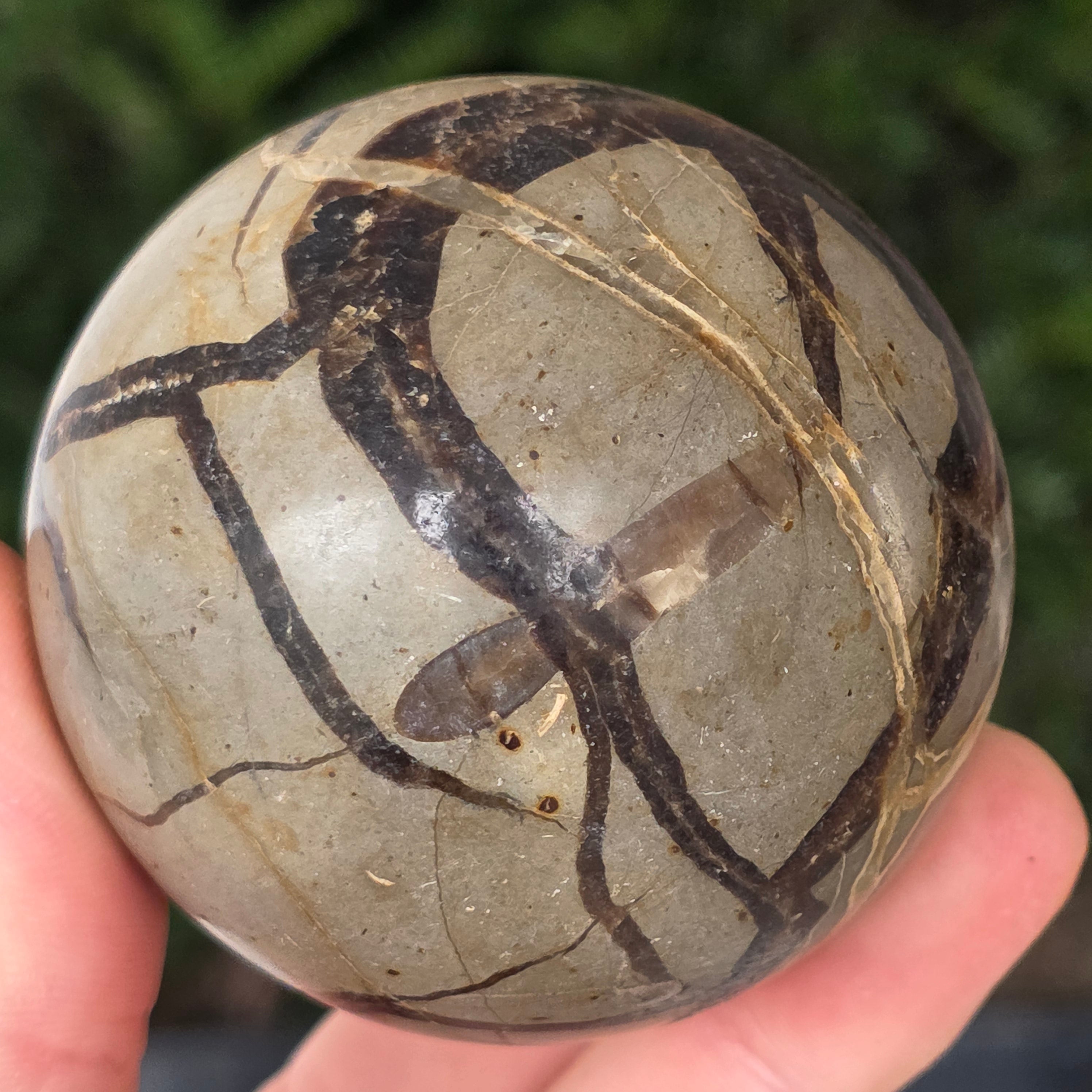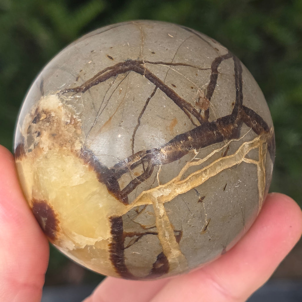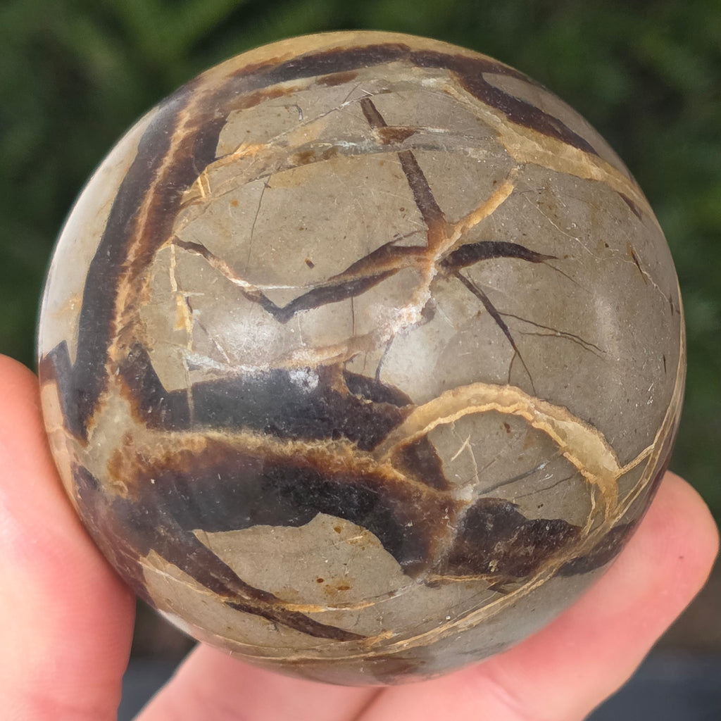 Septaria este formata din calcit, limonit, gips si baritina, minerale care formeaza un joc unic in aceasta piatra si-i dau un aspect aparte.