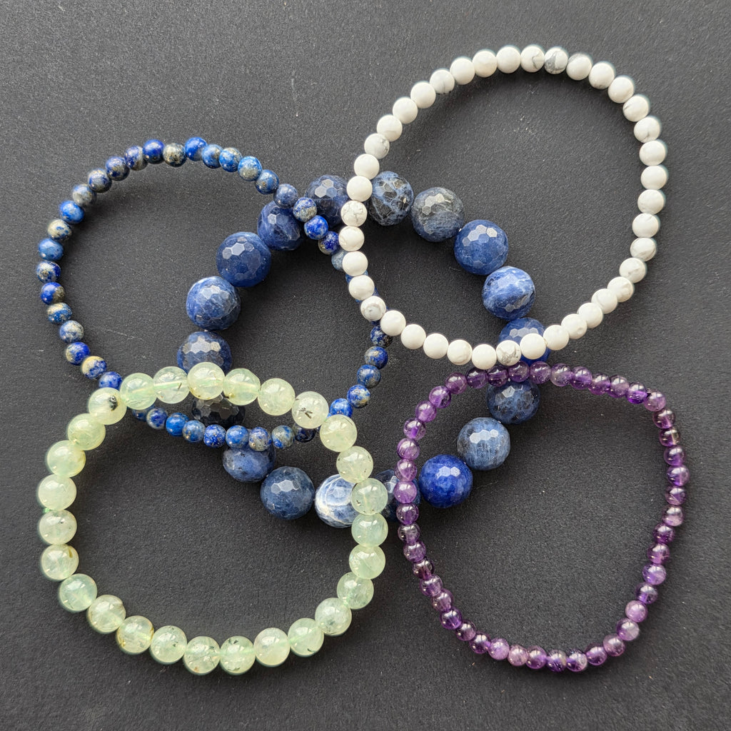 Ametistul de 4 mm oferă liniște, purificare și echilibru spiritual, completând setul cu o vibrație calmă și rafinată.
