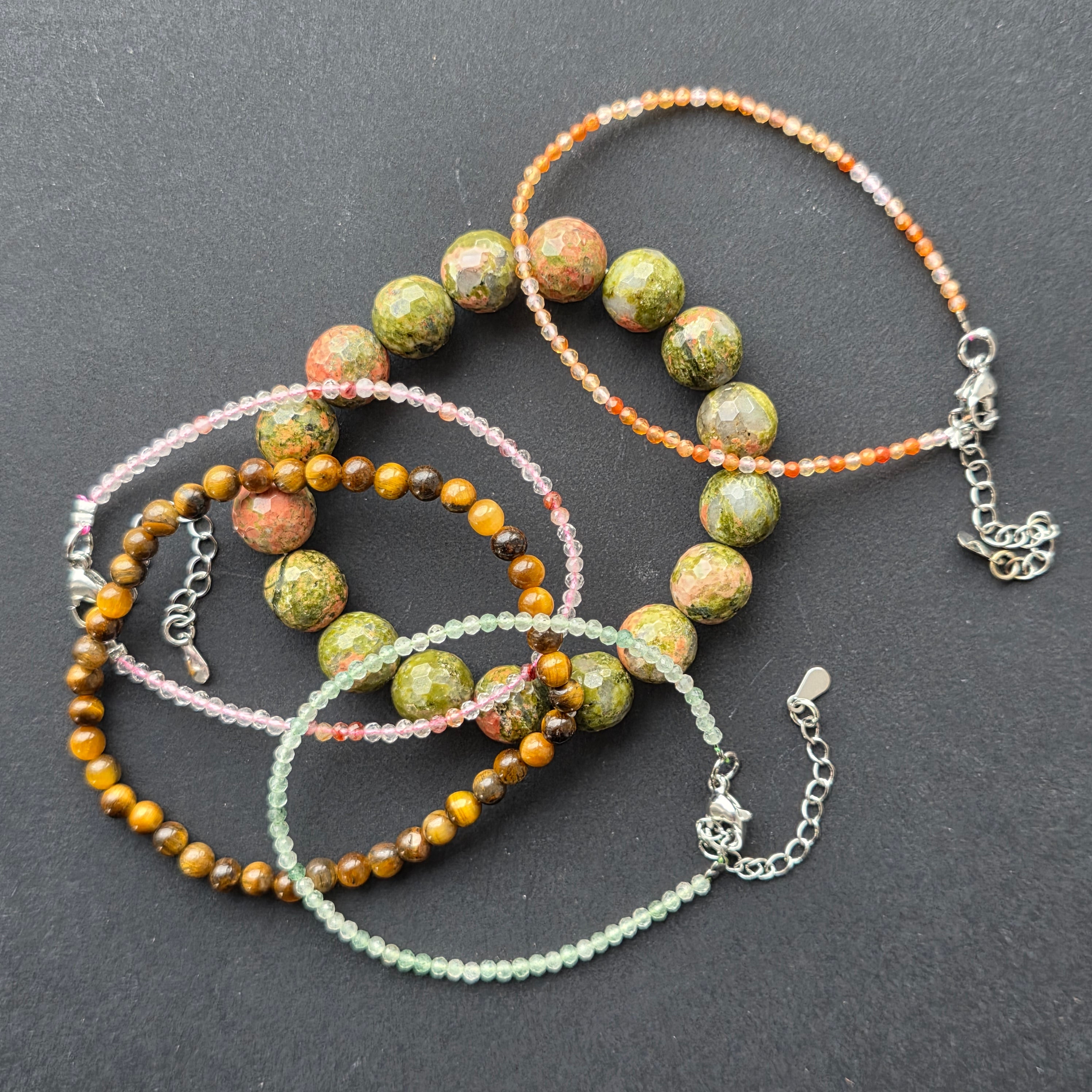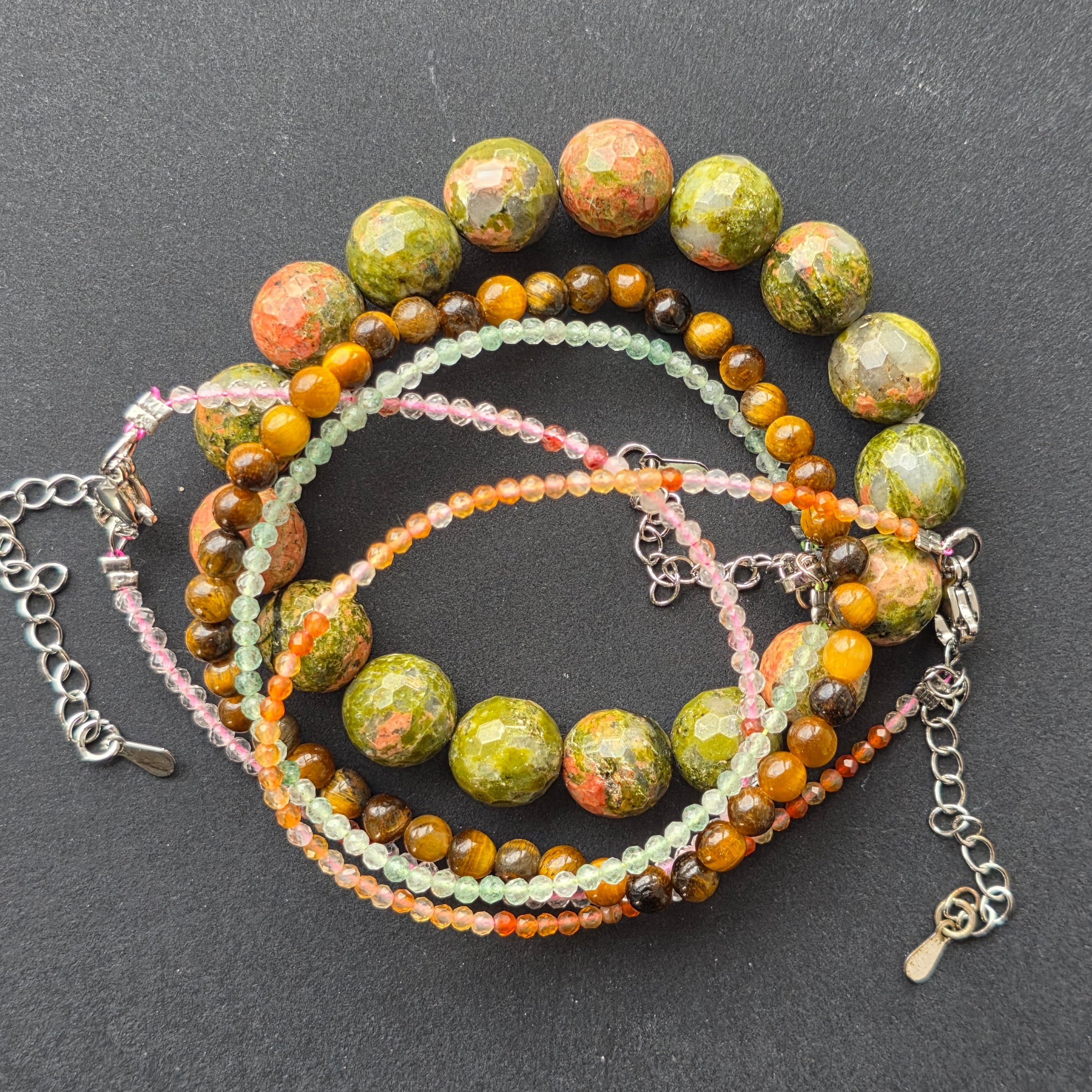 Aventurinul fațetat de 2 mm susține optimismul, inspirația și dorința de explorare, transformând setul într-o vibrație continuă de prospețime și noi începuturi.