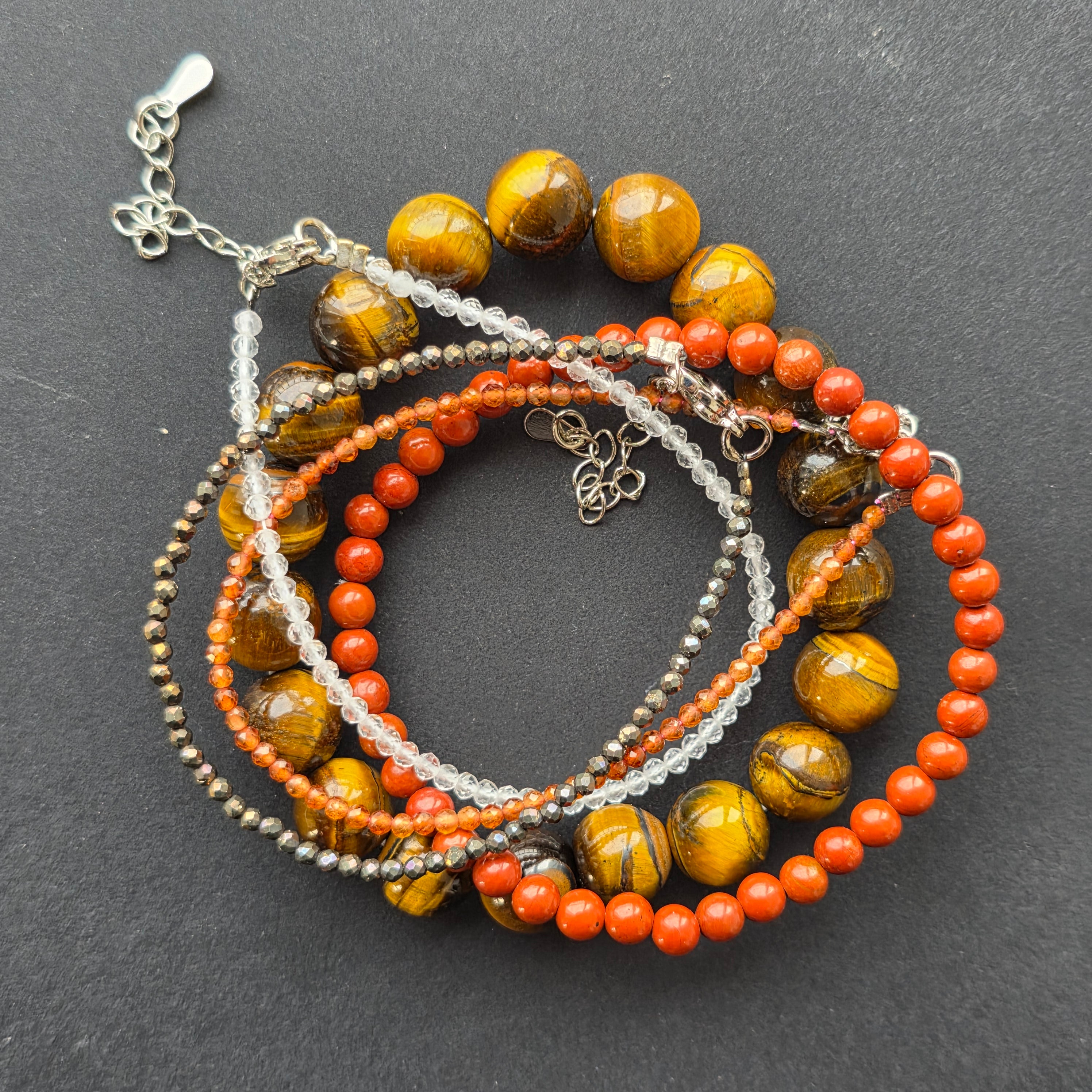 Acest set este creat pentru femeia Leu — solară, magnetică, puternică și plină de viață. Are o prezență care luminează încăperea, un curaj care inspiră și o inimă caldă care iubește generos. Pietrele alese în acest set o susțin în a-și manifesta forța personală, încrederea, creativitatea și strălucirea naturală.