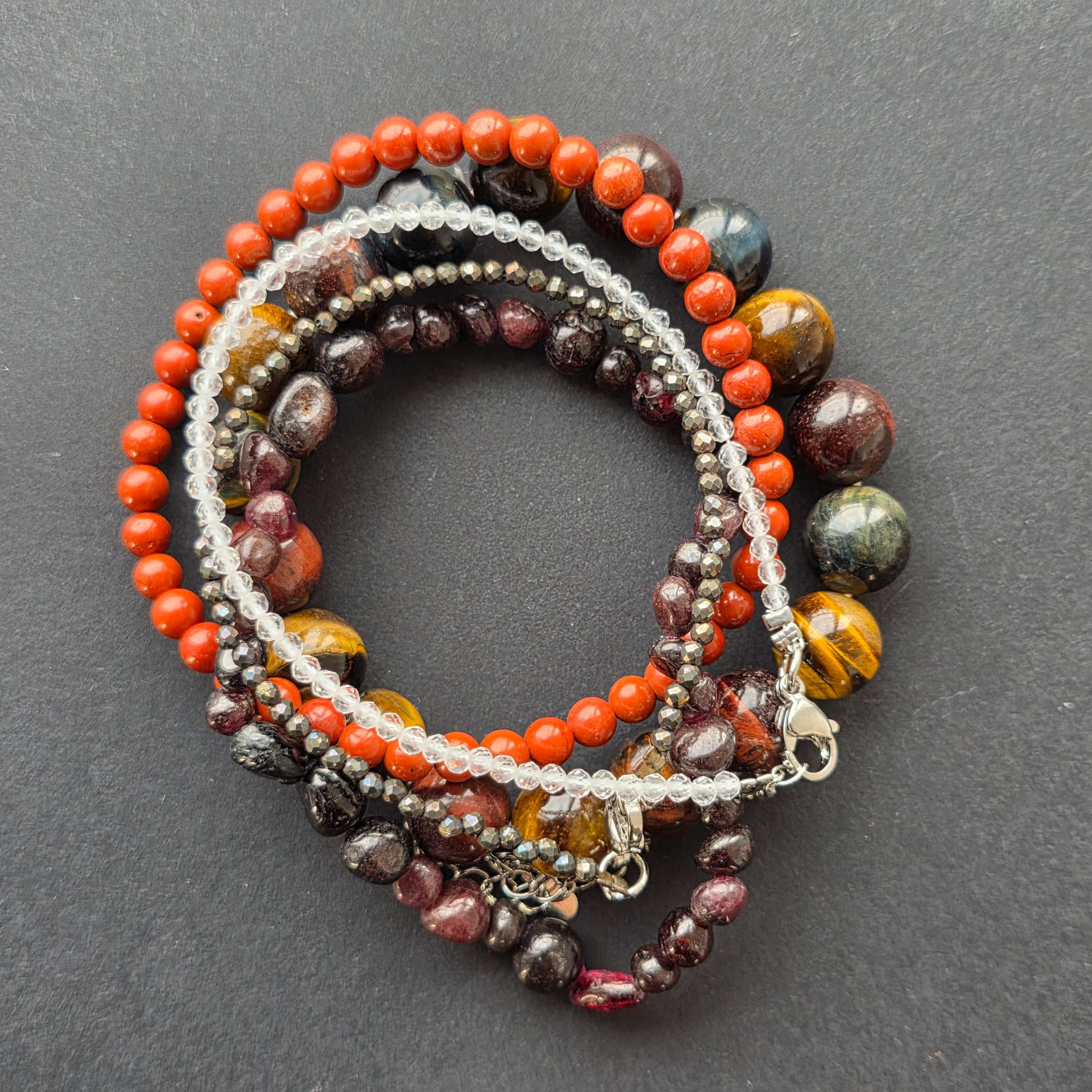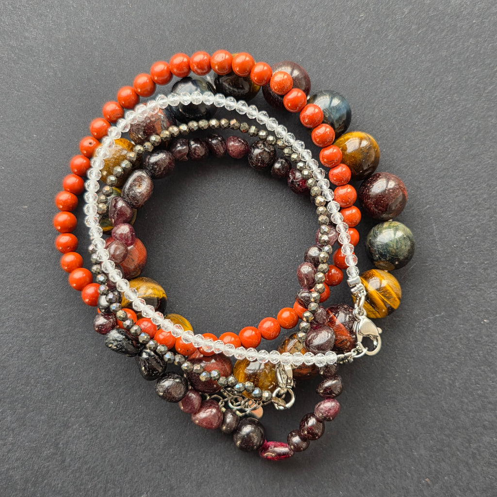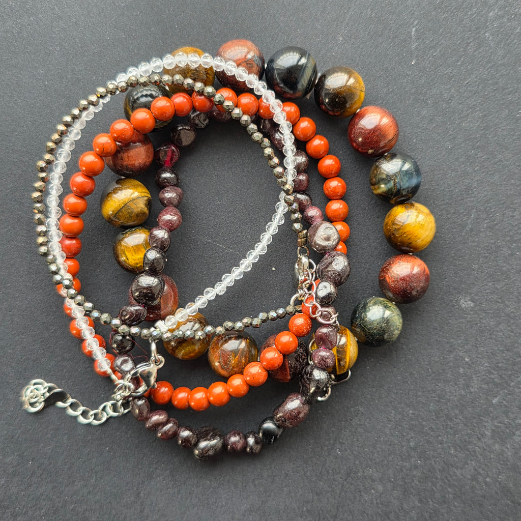 Granatul tumble de 4–6 mm aduce foc interior, pasiune și vitalitate, sprijinind energia intensă și creativitatea femeii Leu.