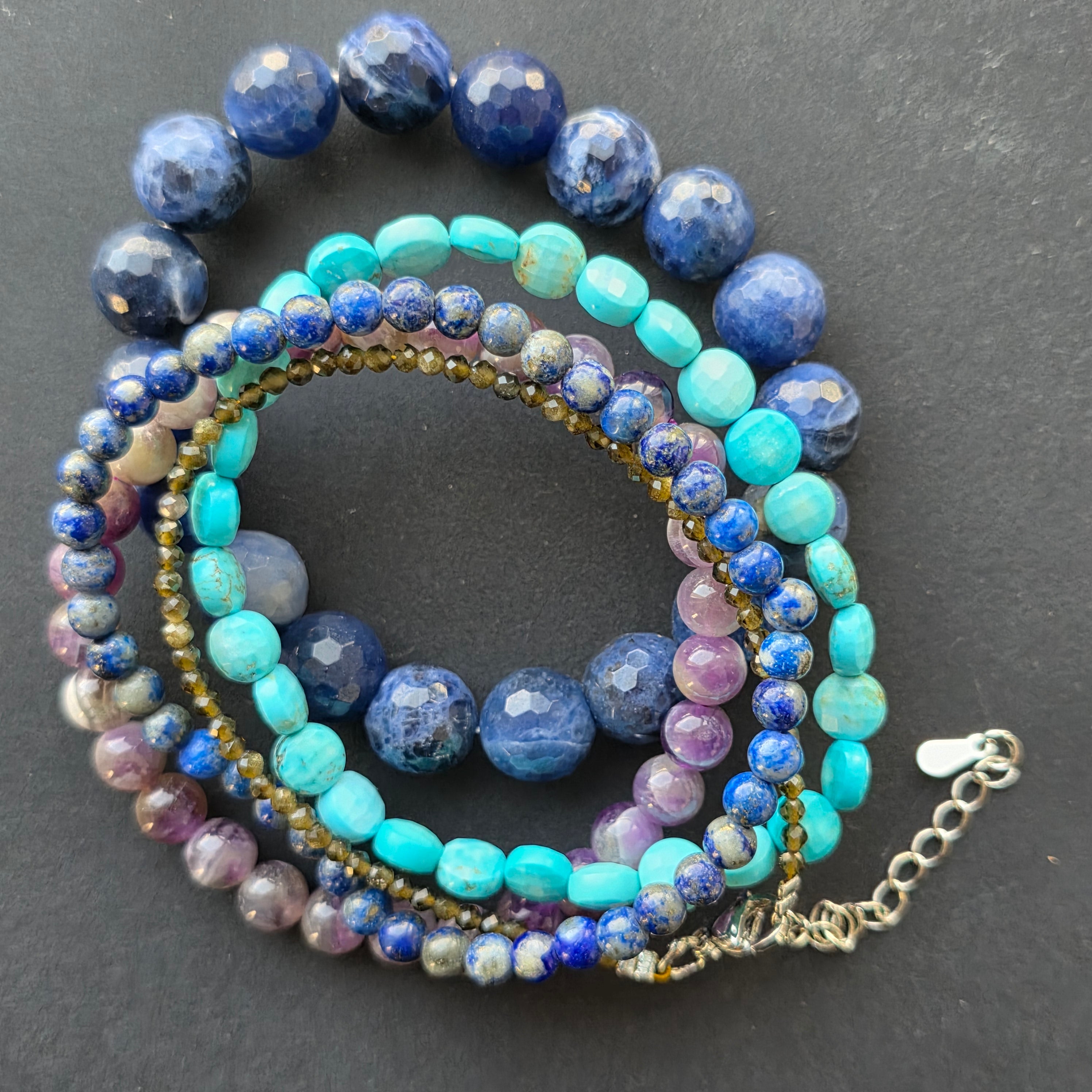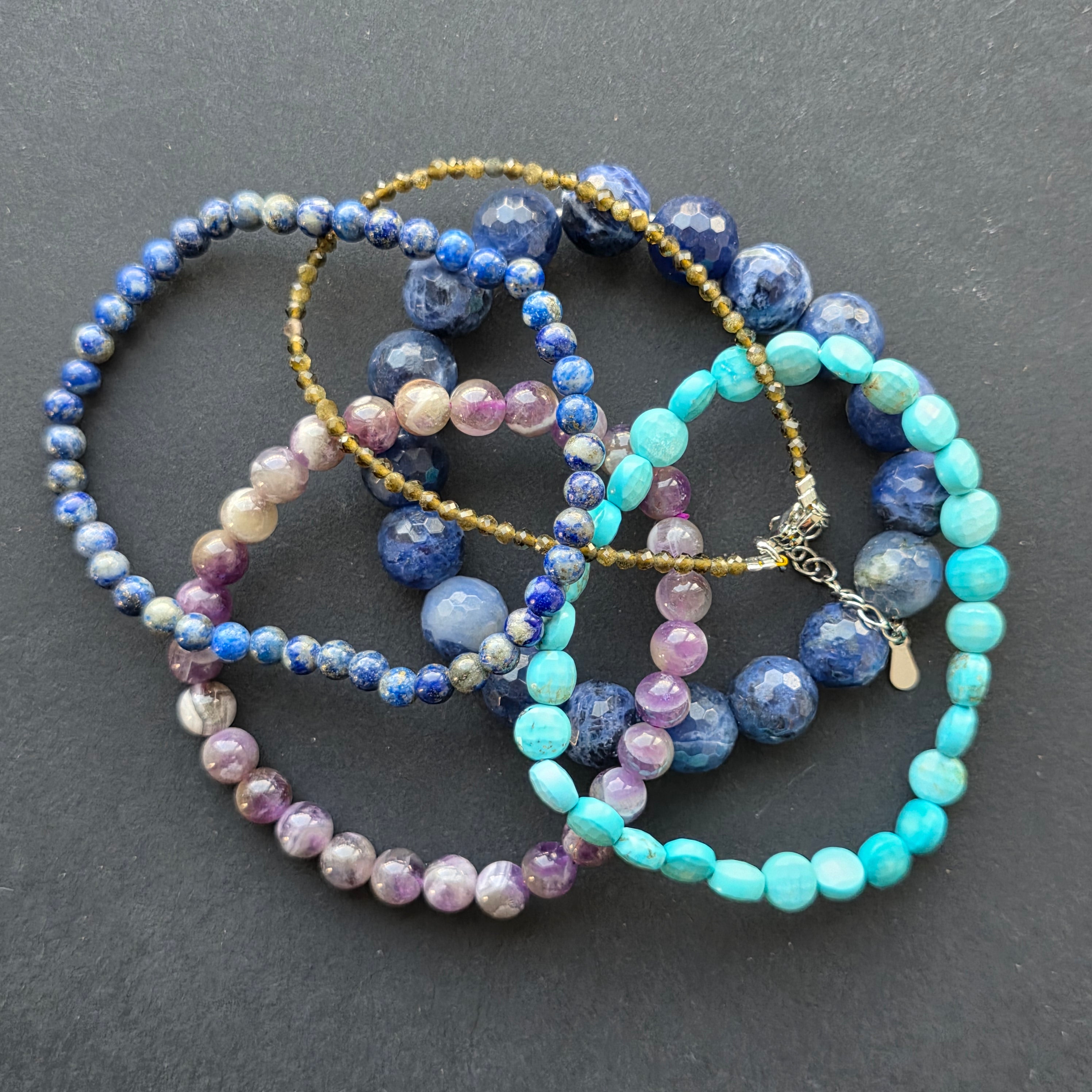 Howlitul albastru în discuri de 4 mm oferă inspirație, calm și o vibrație ușoară, echilibrând ritmul ei dinamic și deschiderea către noi experiențe.
