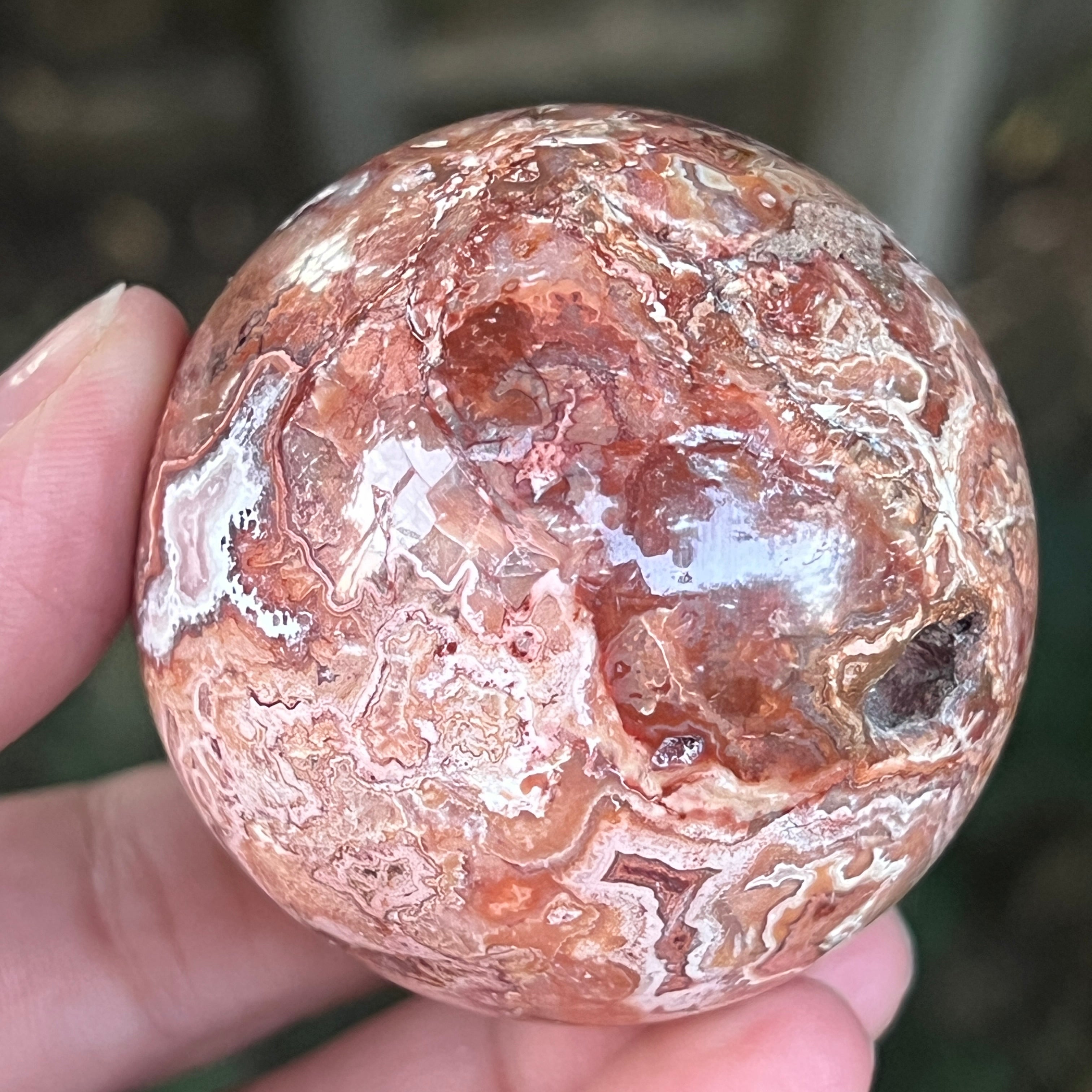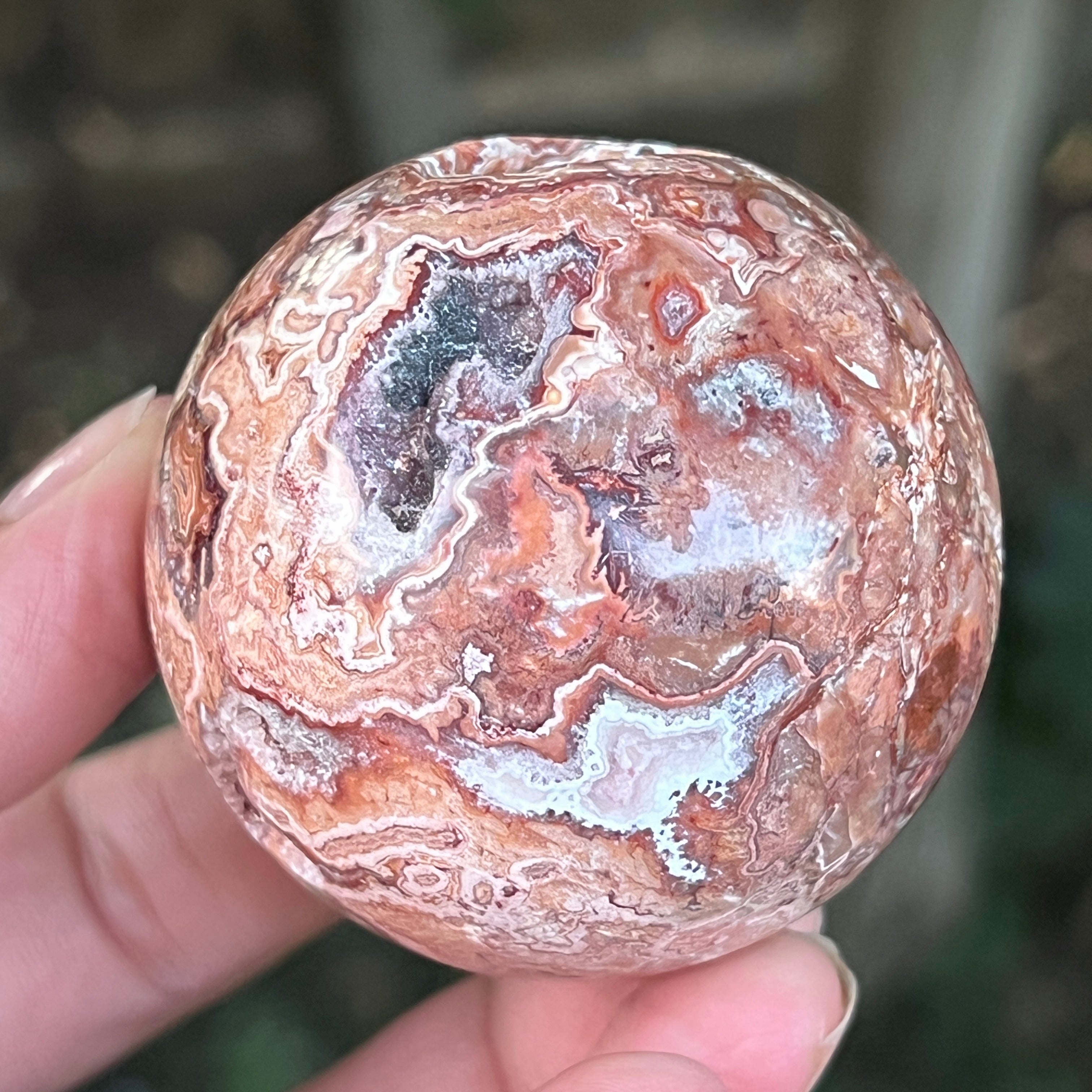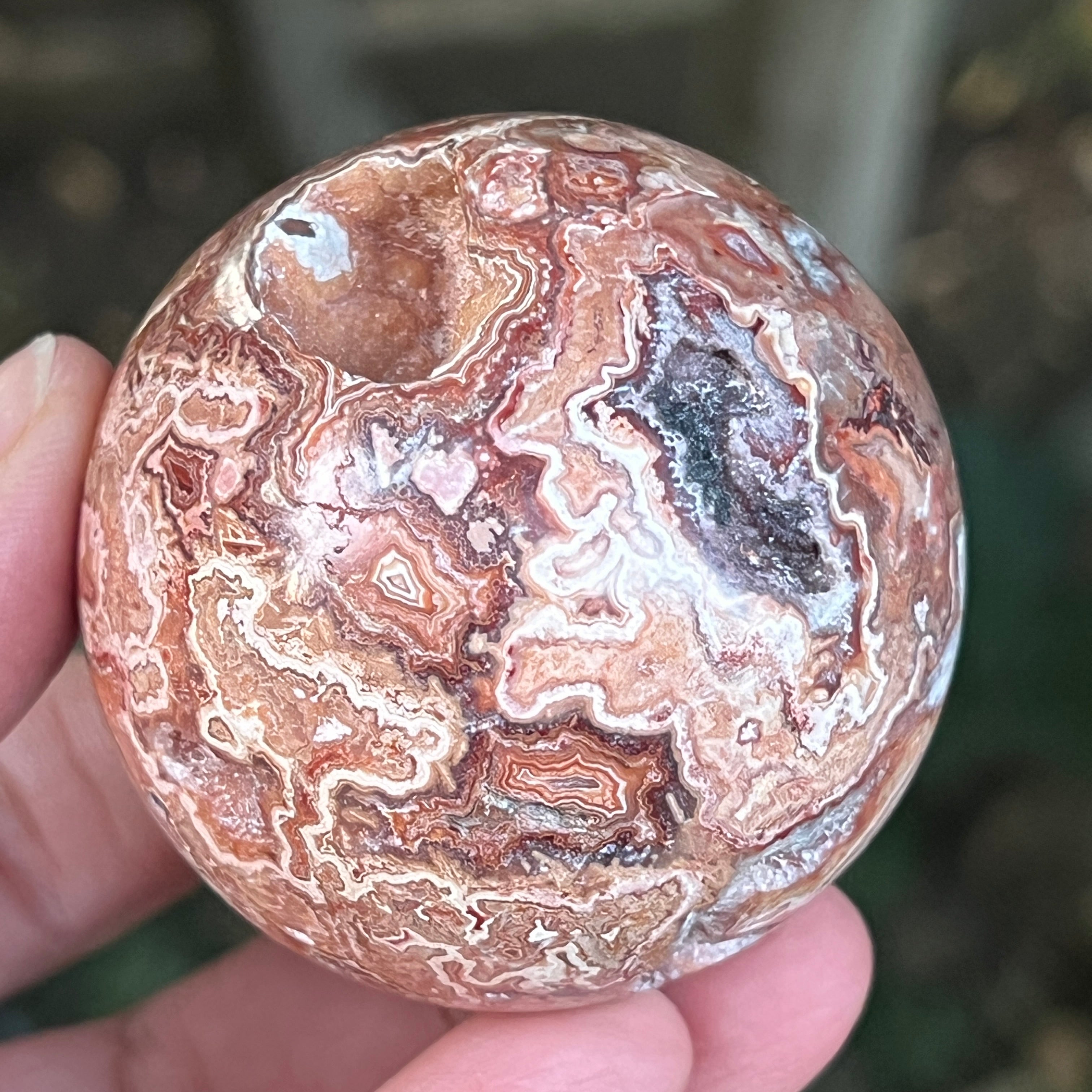 Agatul Crazy Lace este o varietate de calcedonie din grupa cuarțului, format prin depuneri ritmice de silice în cavitățile rocilor vulcanice, ceea ce creează benzile sale ondulate distincte. Compoziția sa chimică este SiO₂ (dioxid de siliciu), iar culorile sale variate (galben, portocaliu, roșu, alb și maro) sunt datorate impurităților de fier și alte minerale.