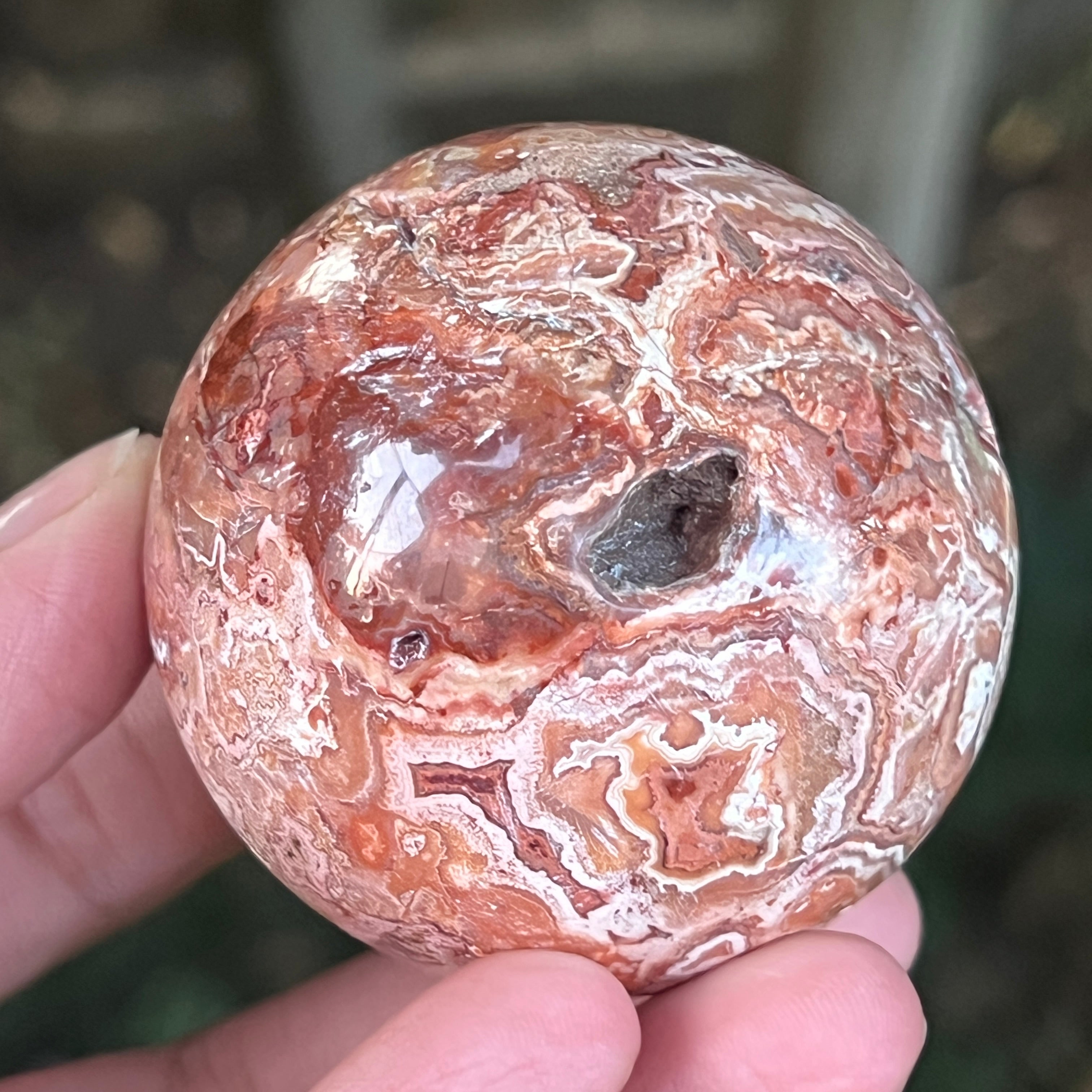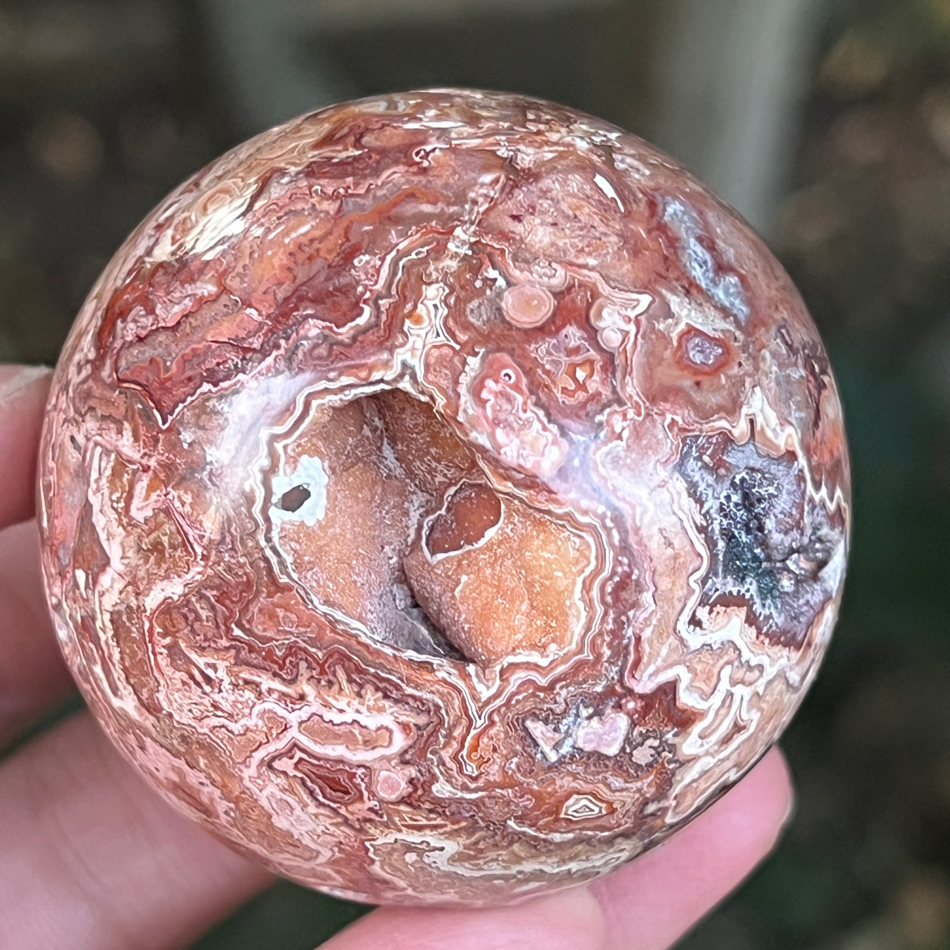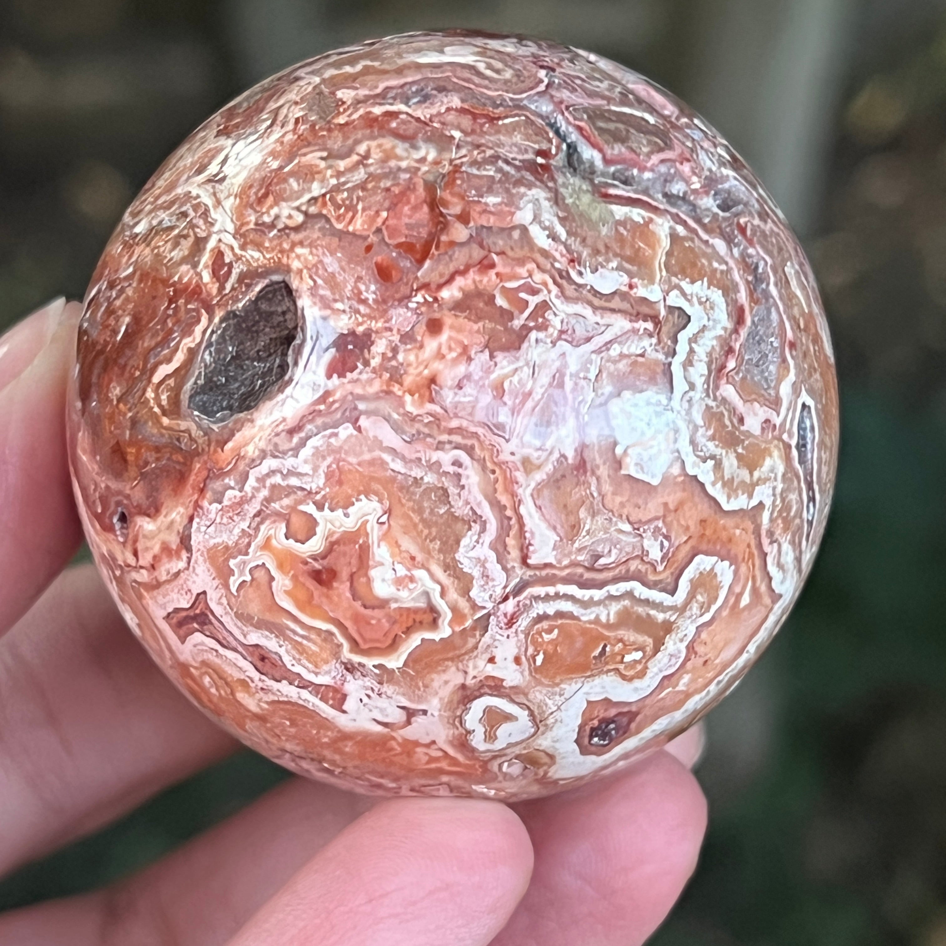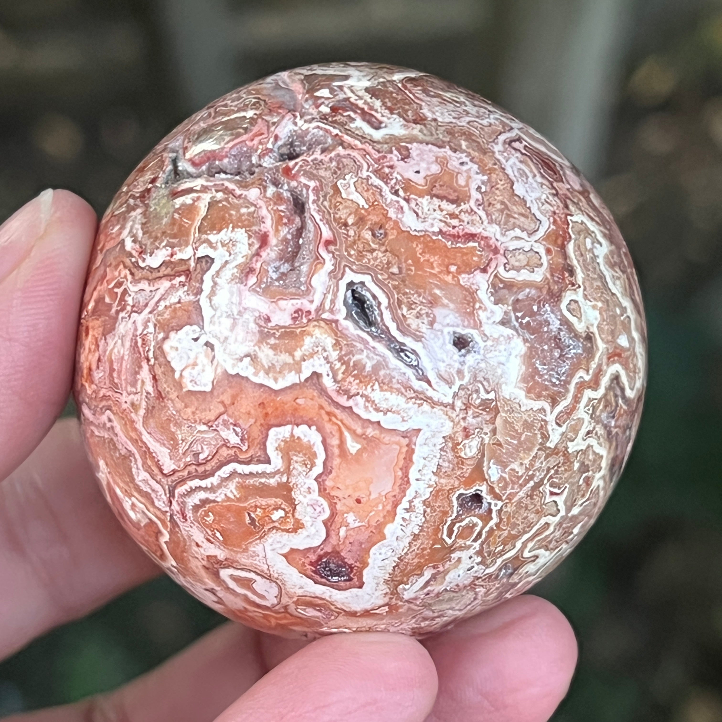 Agatul Crazy Lace este o varietate de calcedonie din grupa cuarțului, format prin depuneri ritmice de silice în cavitățile rocilor vulcanice, ceea ce creează benzile sale ondulate distincte. Compoziția sa chimică este SiO₂ (dioxid de siliciu), iar culorile sale variate (galben, portocaliu, roșu, alb și maro) sunt datorate impurităților de fier și alte minerale.