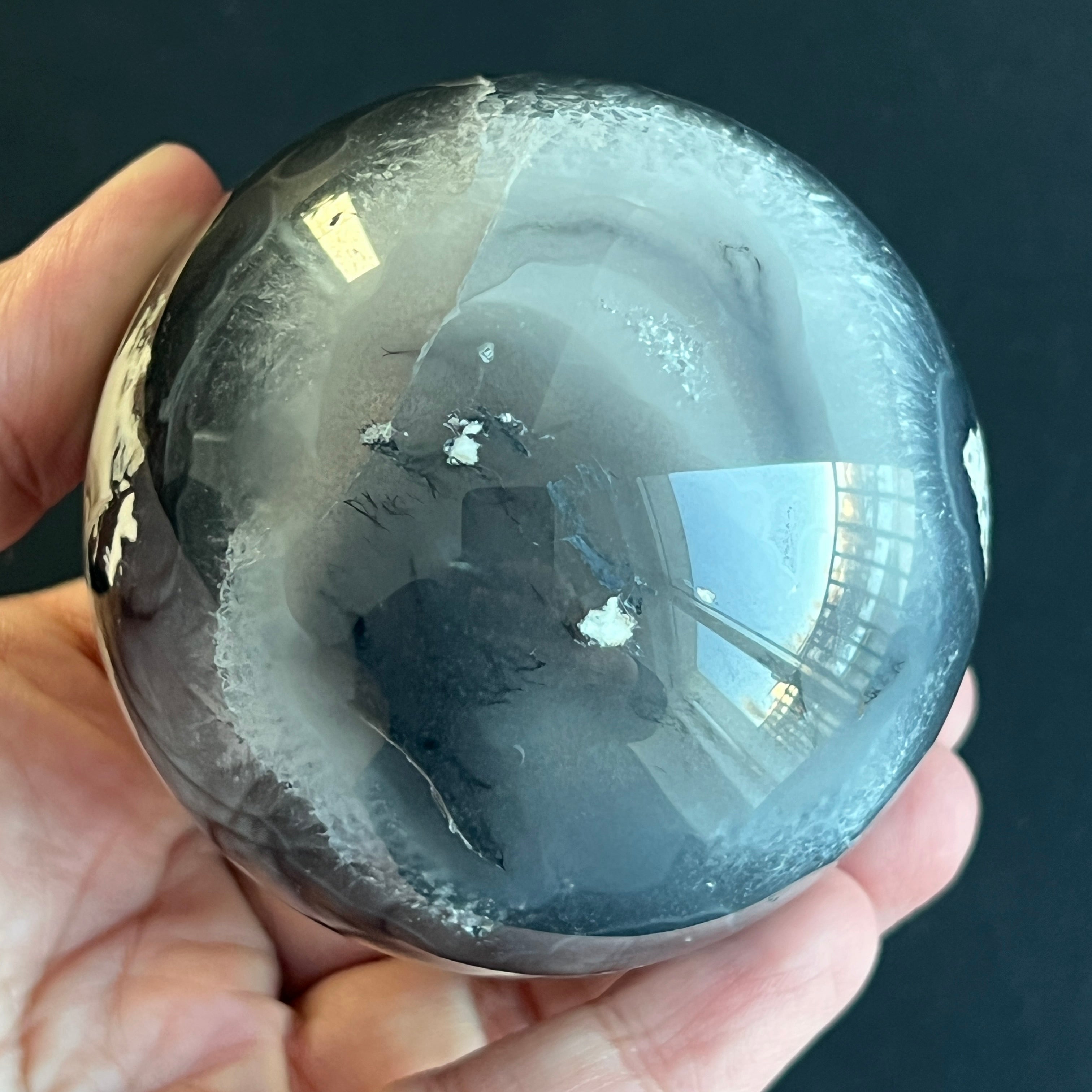 • Piatra: agat negru natural – sferă șlefuită integral