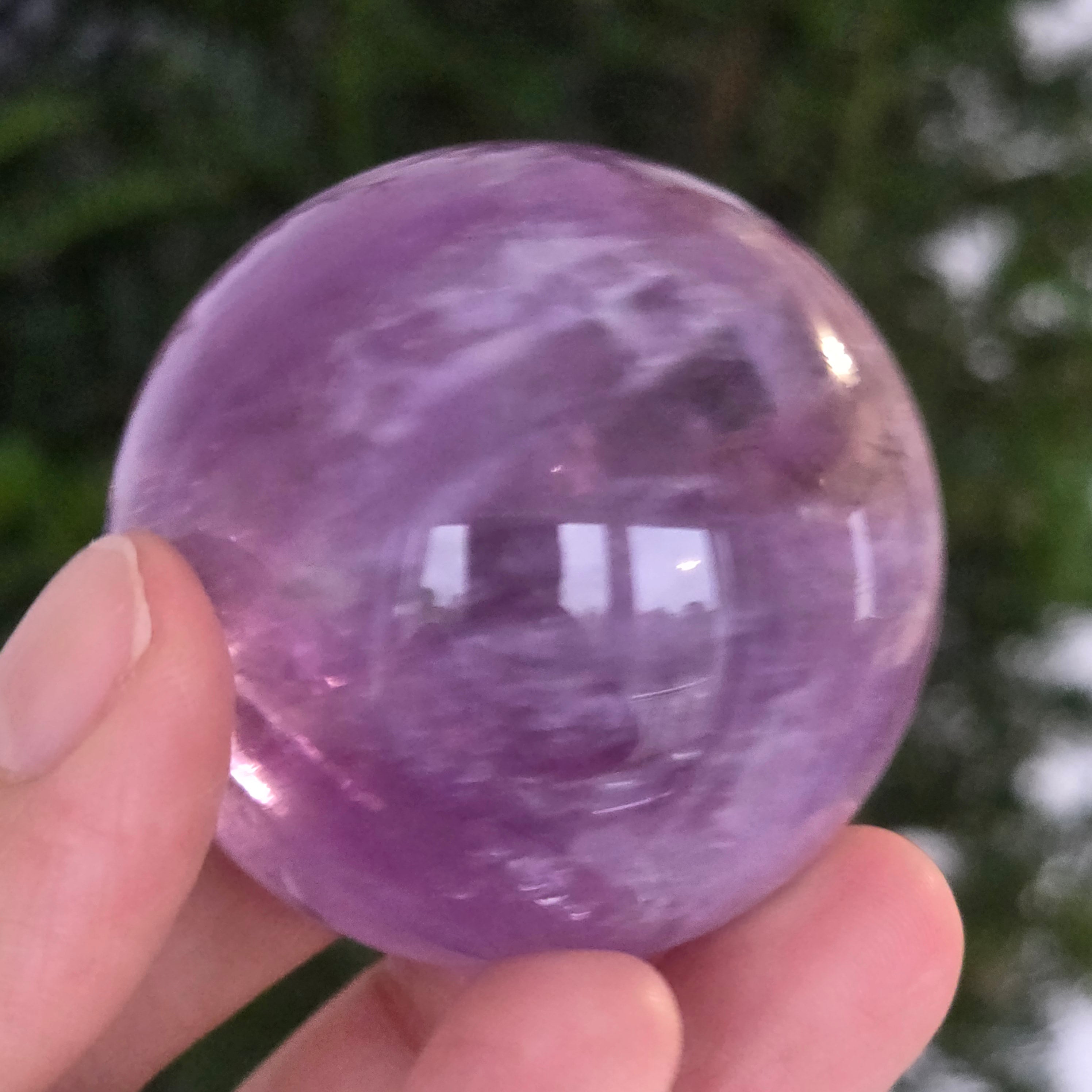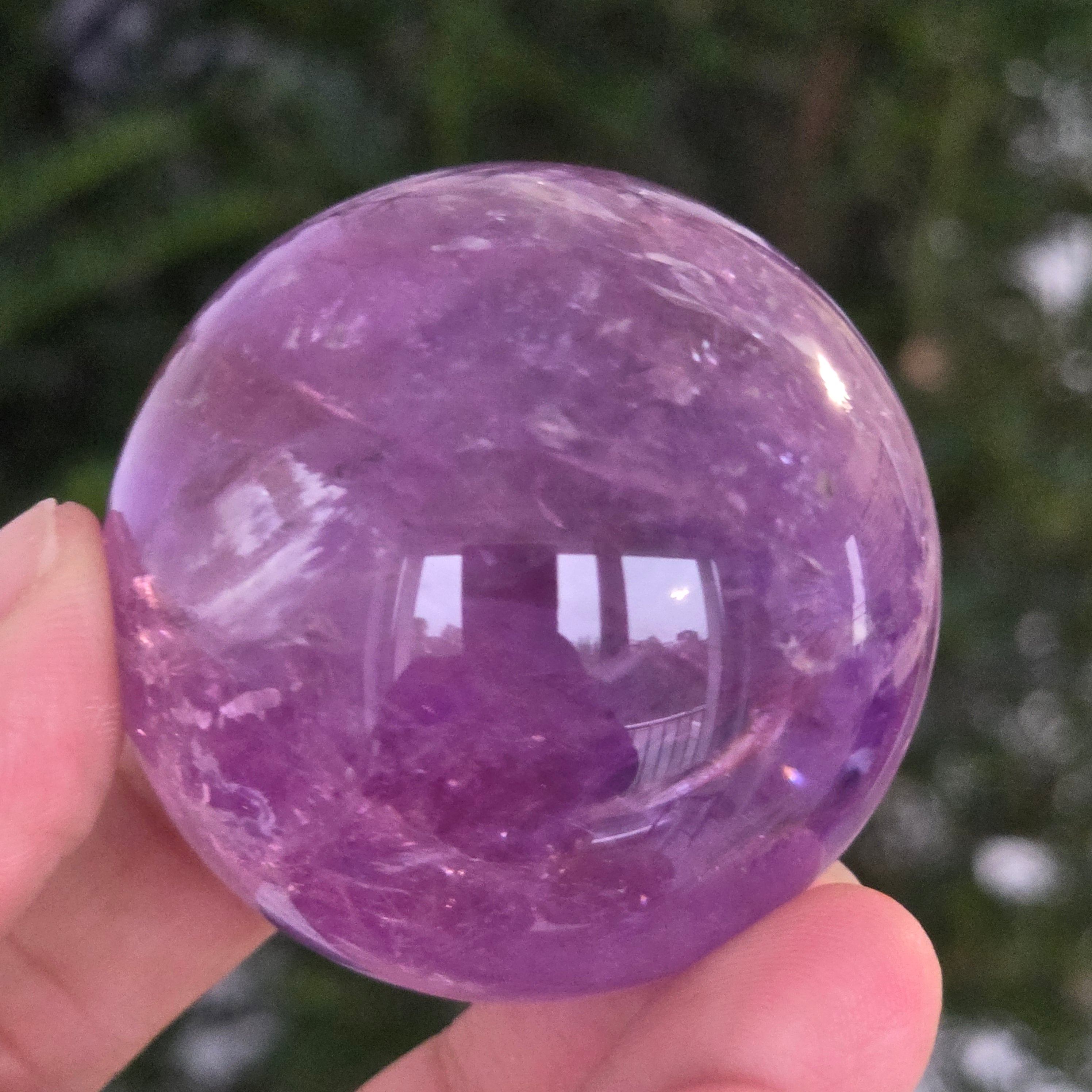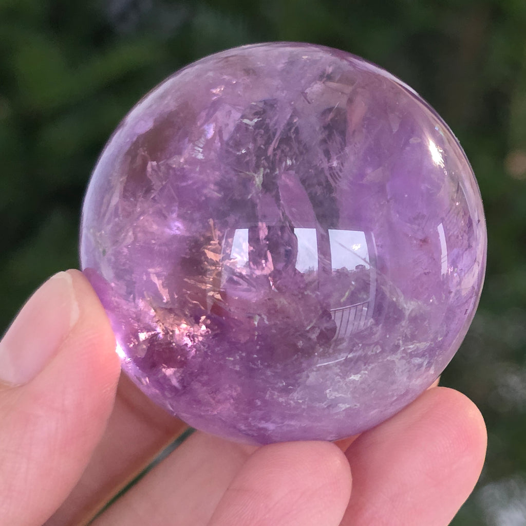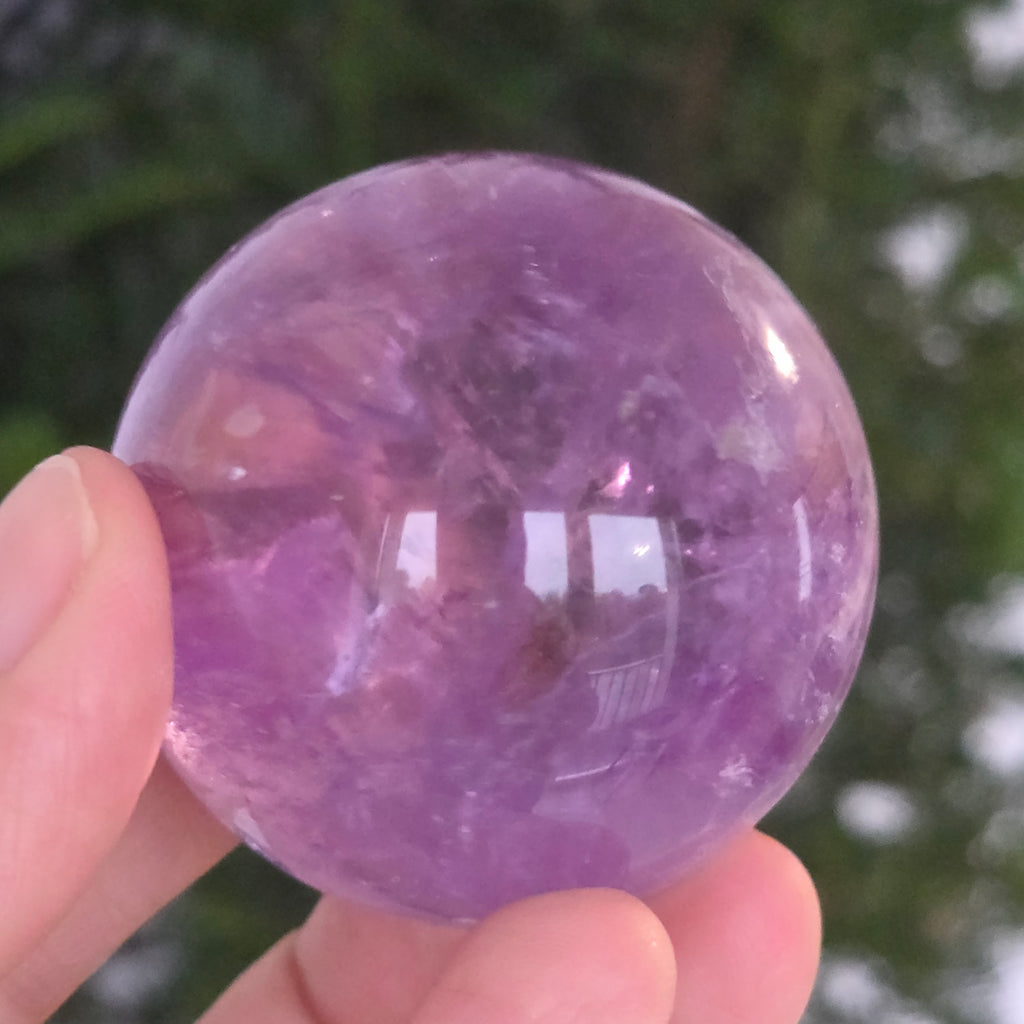 O sferă ce pare să fi capturat esența cerului la apus. Această piesă unicat din ametist natural AA din Brazilia, emană o strălucire profundă și translucidă, cu nuanțe de violet regal, liliachiu și umbre de lavandă care se joacă în lumină. Finisajul perfect lustruit scoate la iveală puritatea cristalului și finețea texturii sale naturale – o bijuterie minerală de o frumusețe clasică și echilibrată.