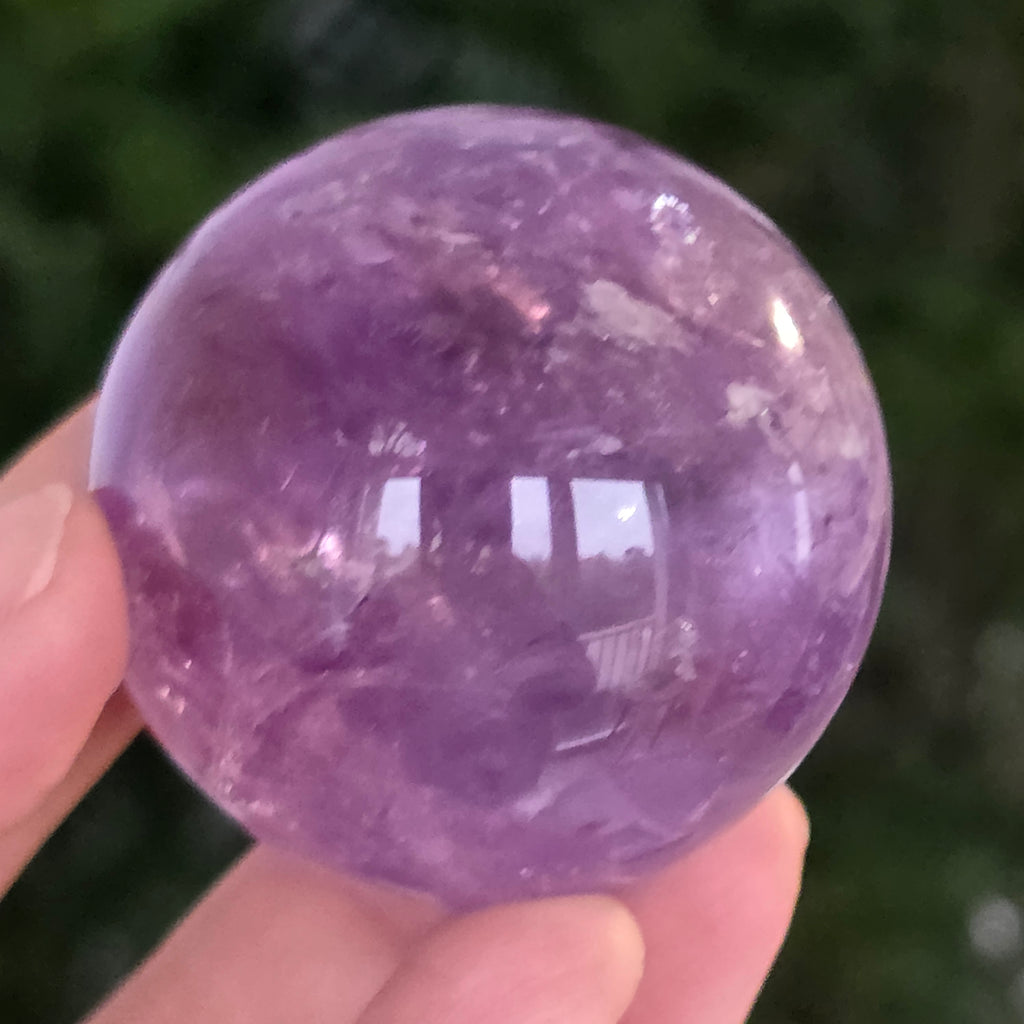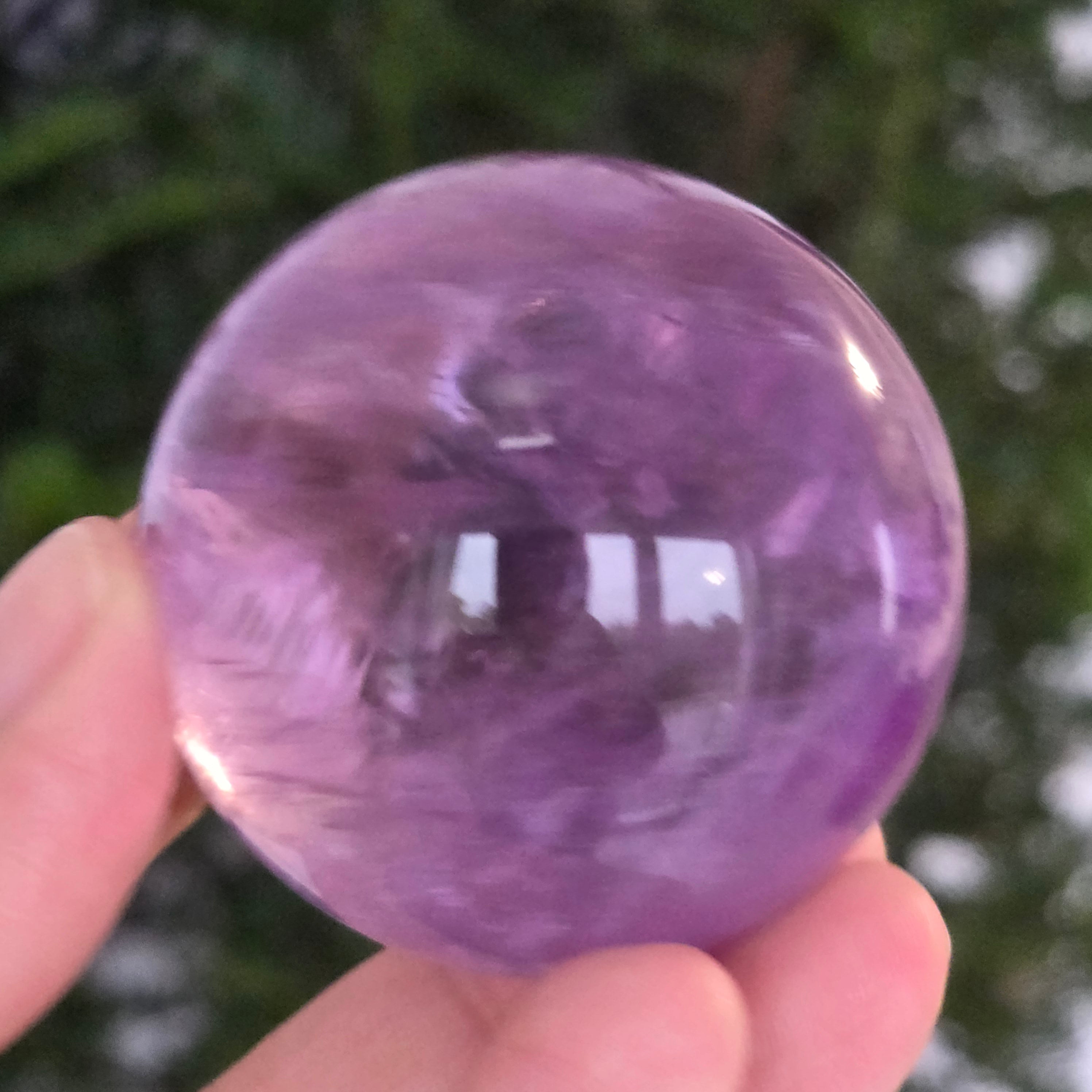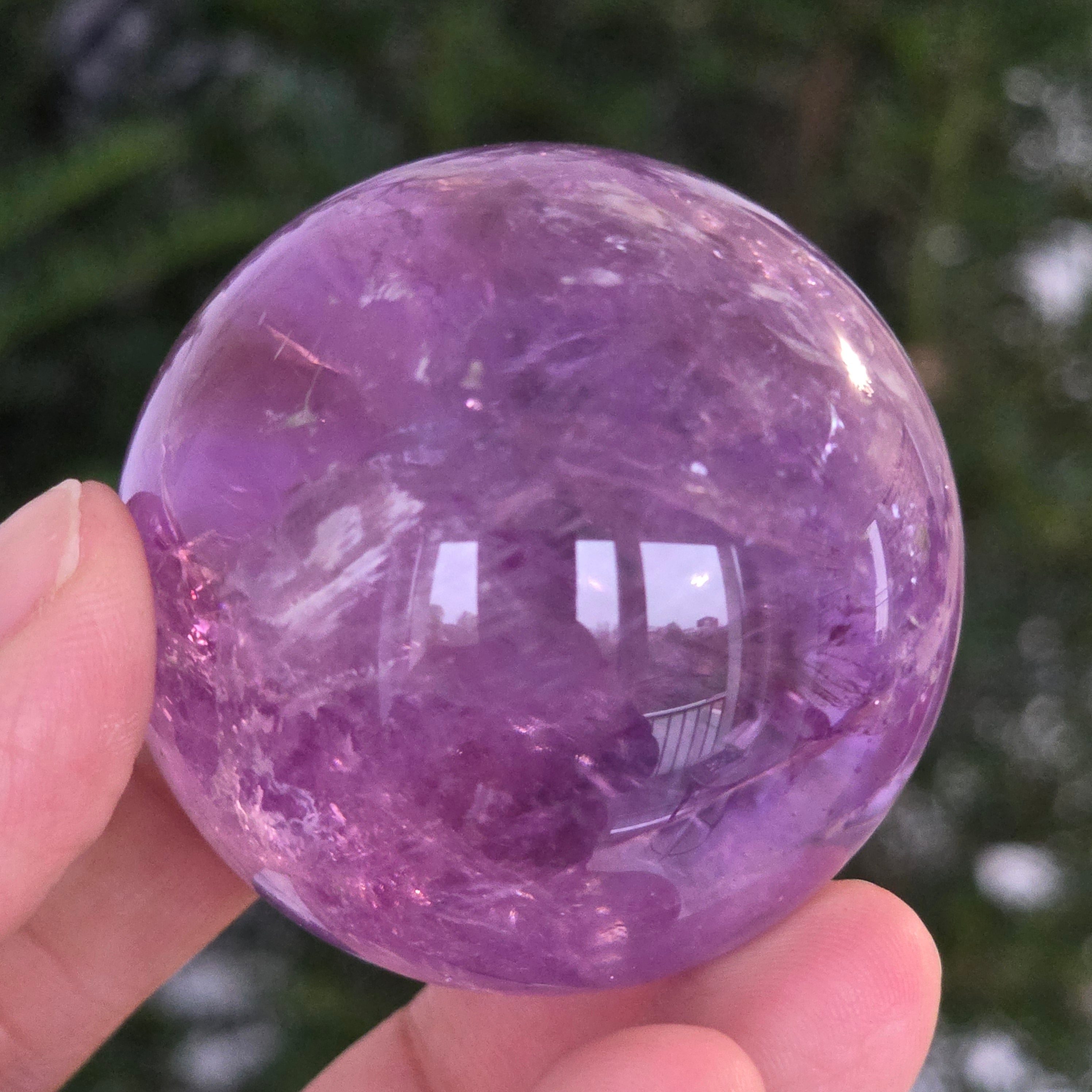 O sferă ce pare să fi capturat esența cerului la apus. Această piesă unicat din ametist natural AA din Brazilia, emană o strălucire profundă și translucidă, cu nuanțe de violet regal, liliachiu și umbre de lavandă care se joacă în lumină. Finisajul perfect lustruit scoate la iveală puritatea cristalului și finețea texturii sale naturale – o bijuterie minerală de o frumusețe clasică și echilibrată.