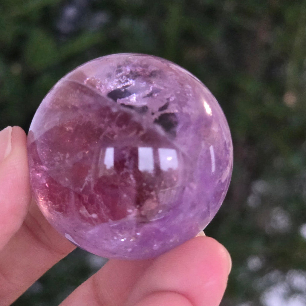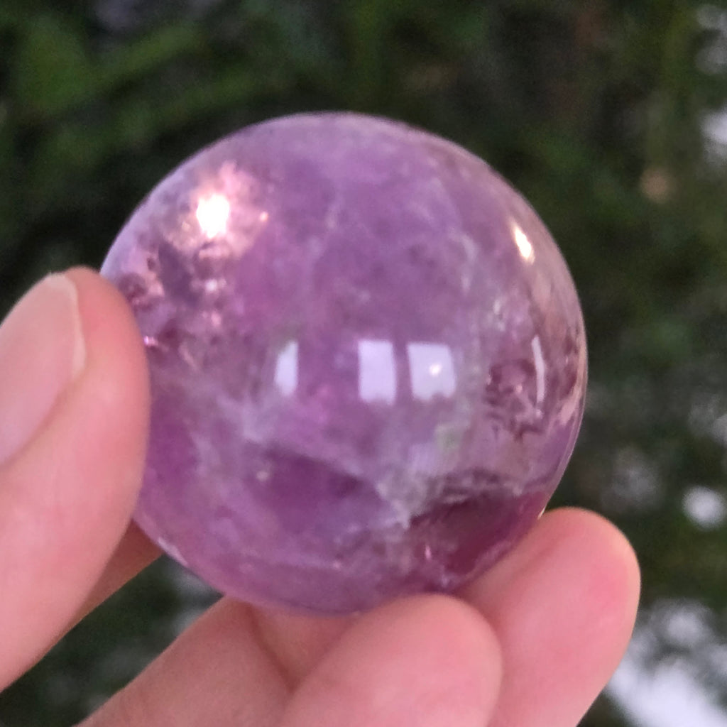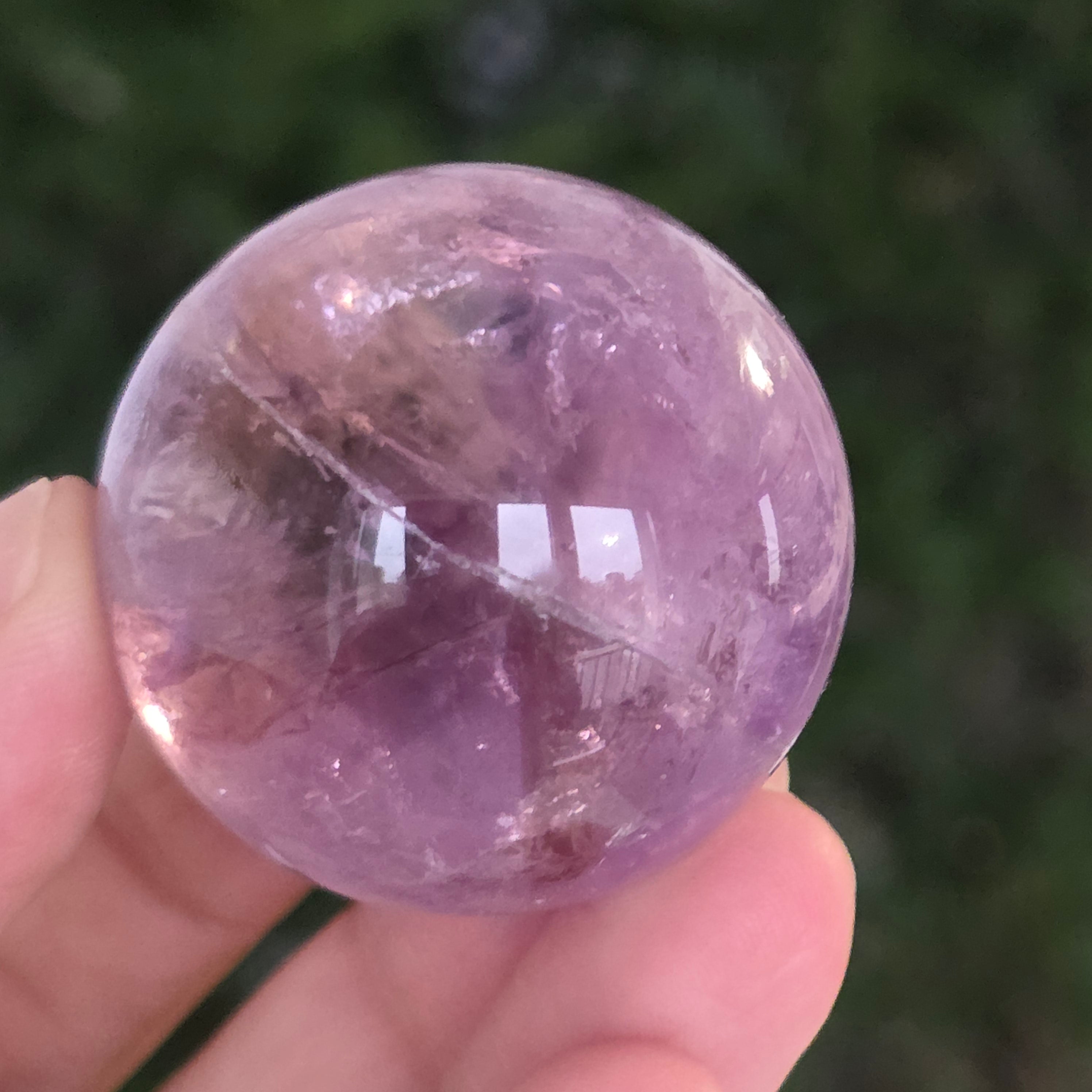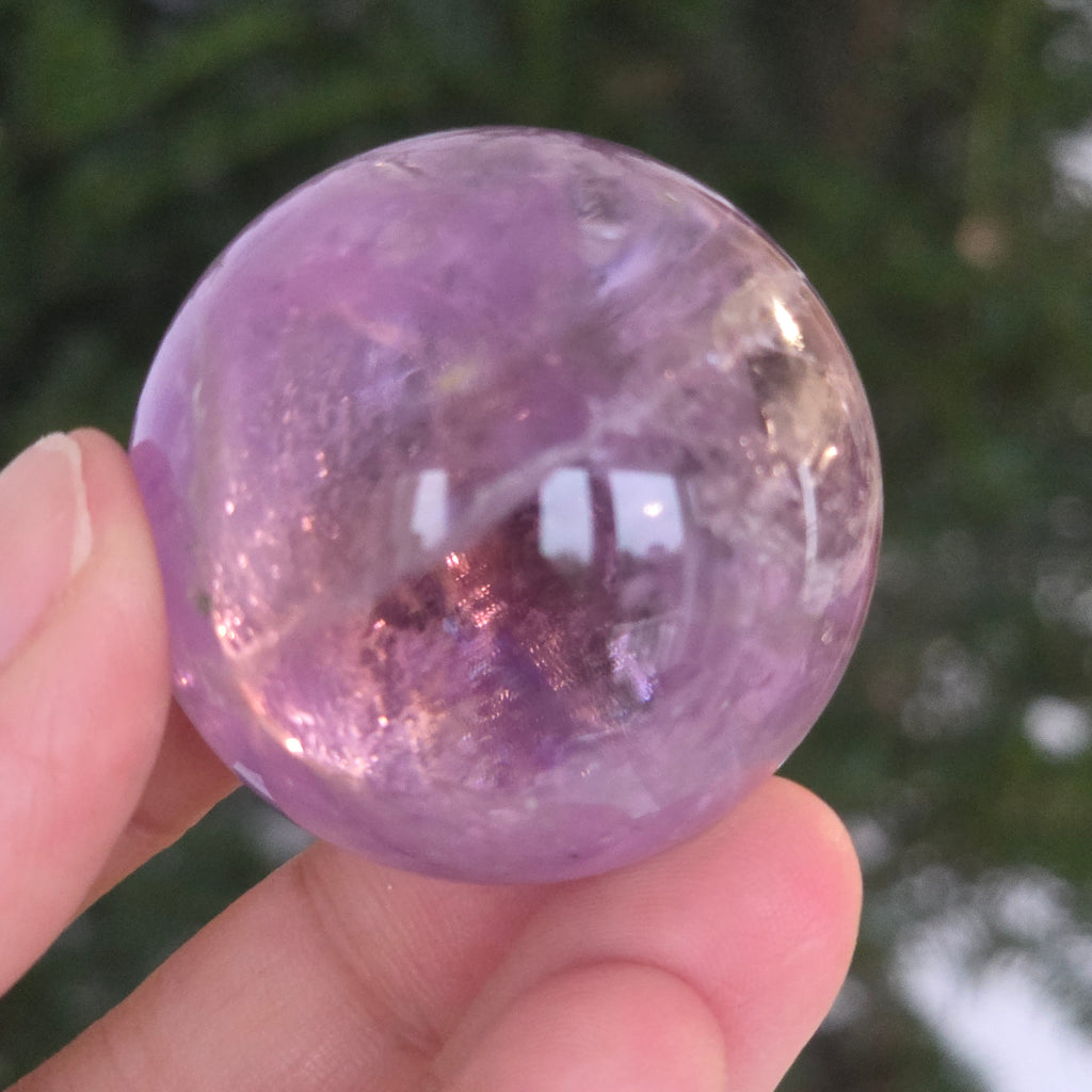O sferă ce pare să fi capturat esența cerului la apus. Această piesă unicat din ametist natural AA din Brazilia, emană o strălucire profundă și translucidă, cu nuanțe de violet regal, liliachiu și umbre de lavandă care se joacă în lumină. Finisajul perfect lustruit scoate la iveală puritatea cristalului și finețea texturii sale naturale – o bijuterie minerală de o frumusețe clasică și echilibrată.