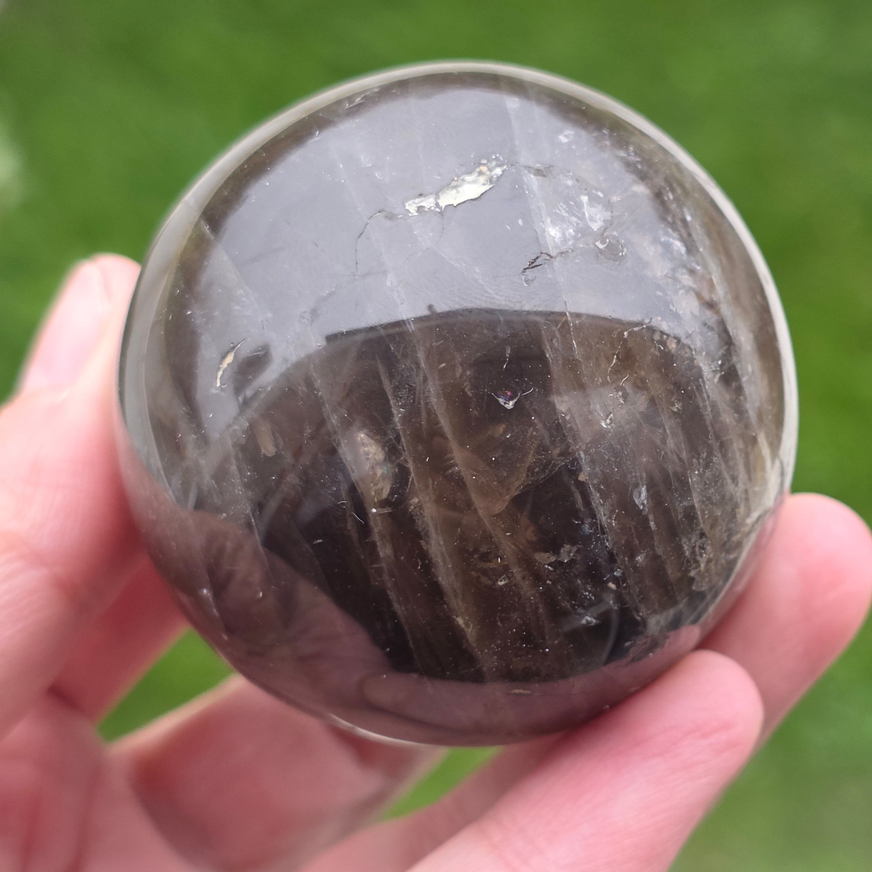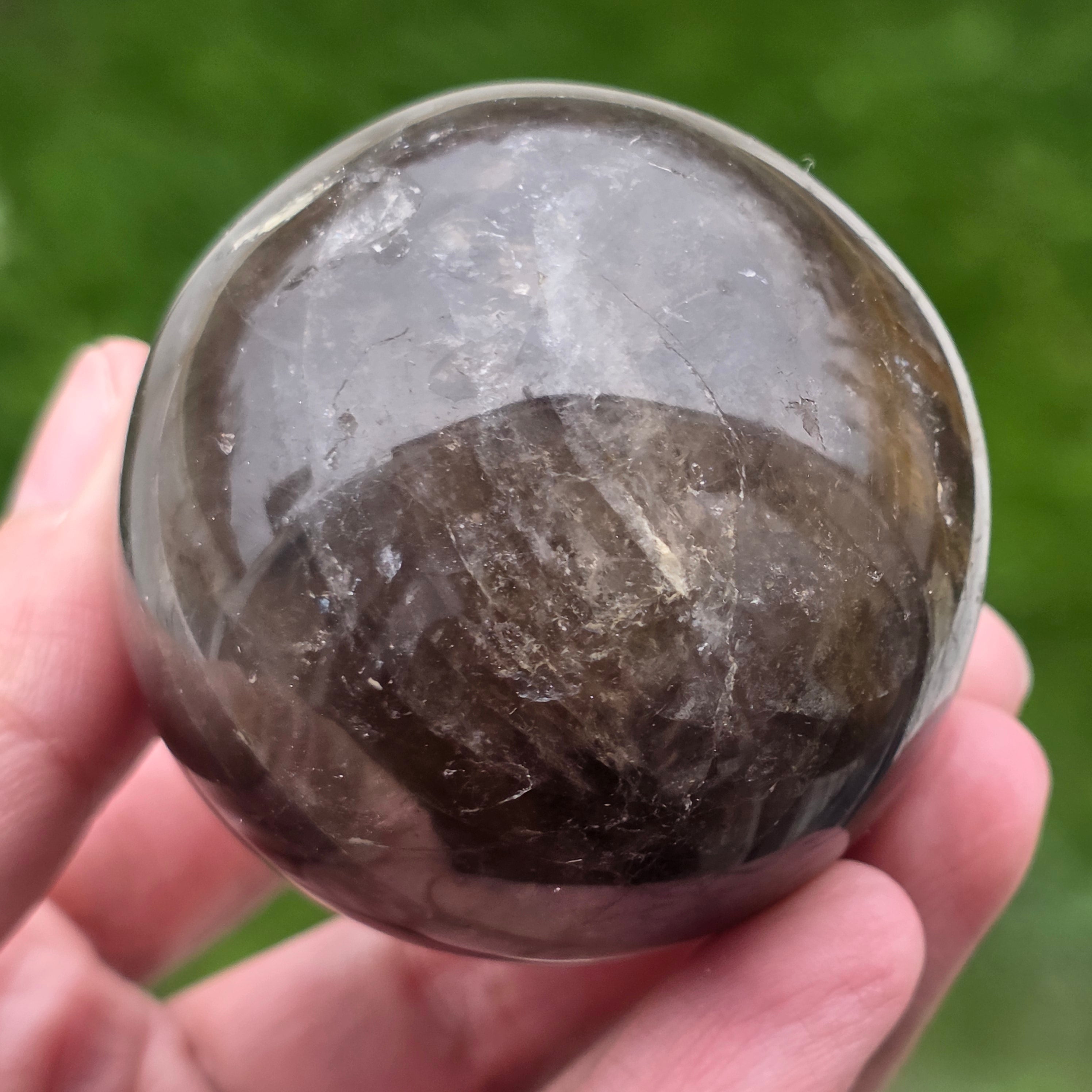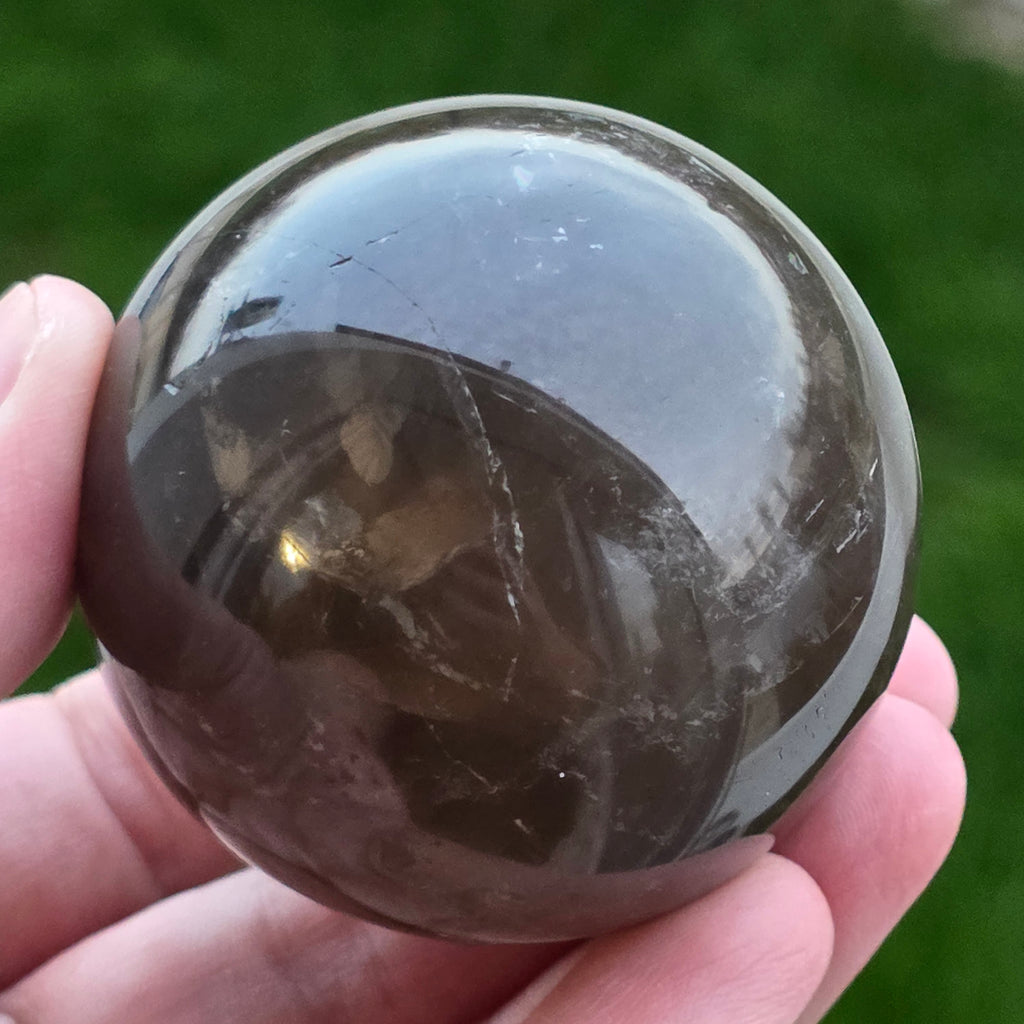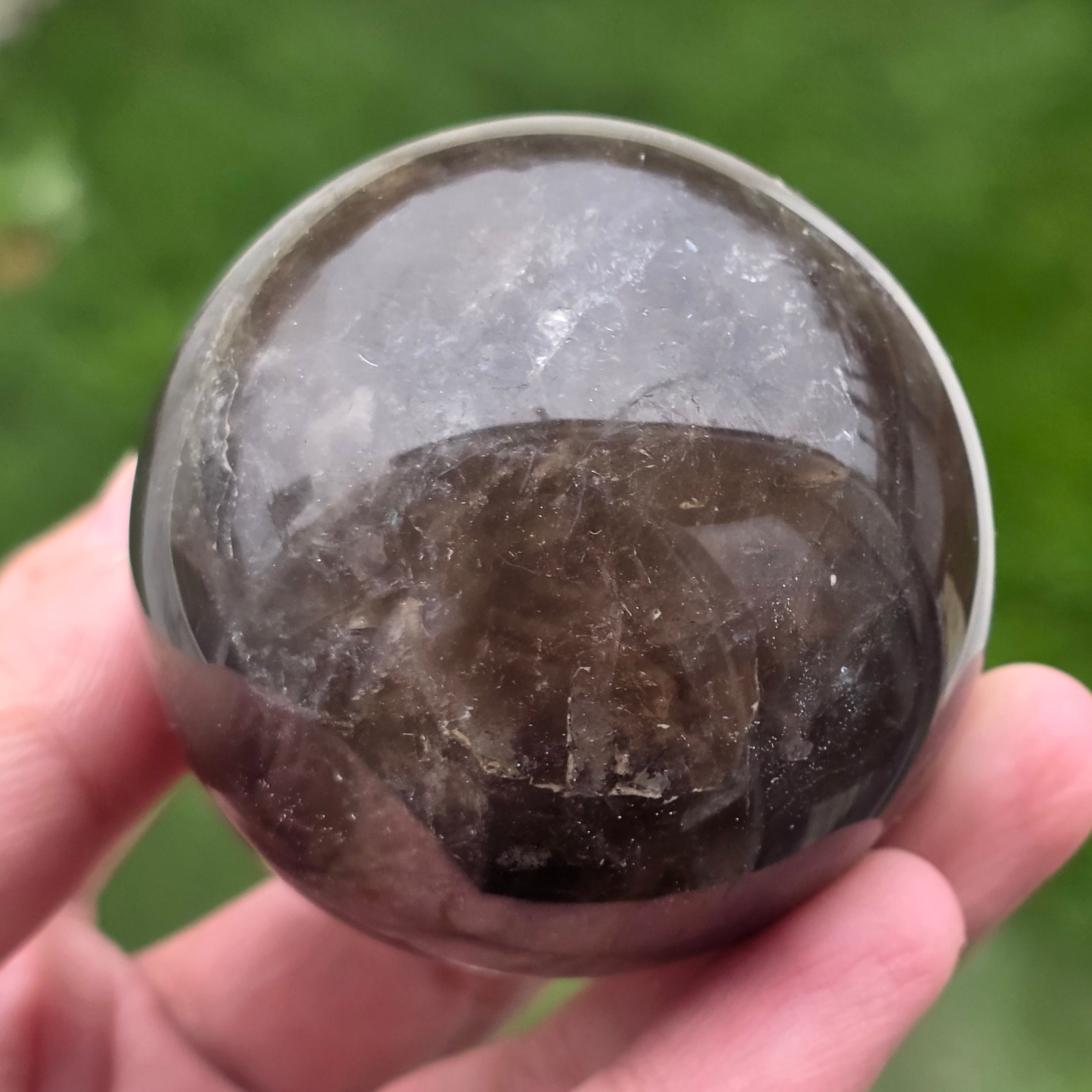 Sfera din cuarț morion este o piesă puternică și elegantă, cunoscută pentru nuanța sa profundă, asemănătoare fumului dens sau obsidianului transparent. Morionul este cea mai închisă varietate de cuarț fumuriu, iar în această formă perfect rotundă dezvăluie reflexii discrete, detalii interne fine și o prezență vizuală cu adevărat sofisticată.