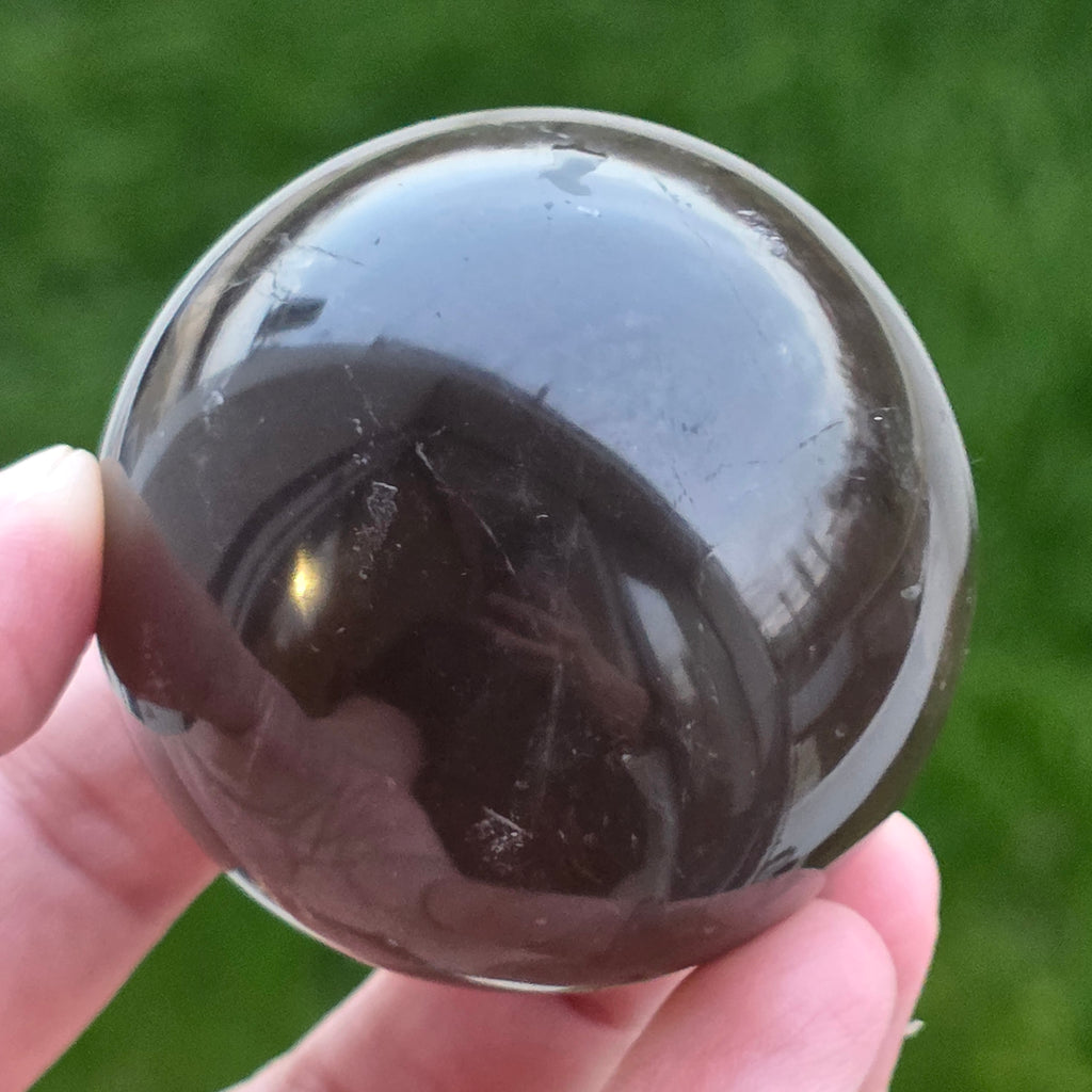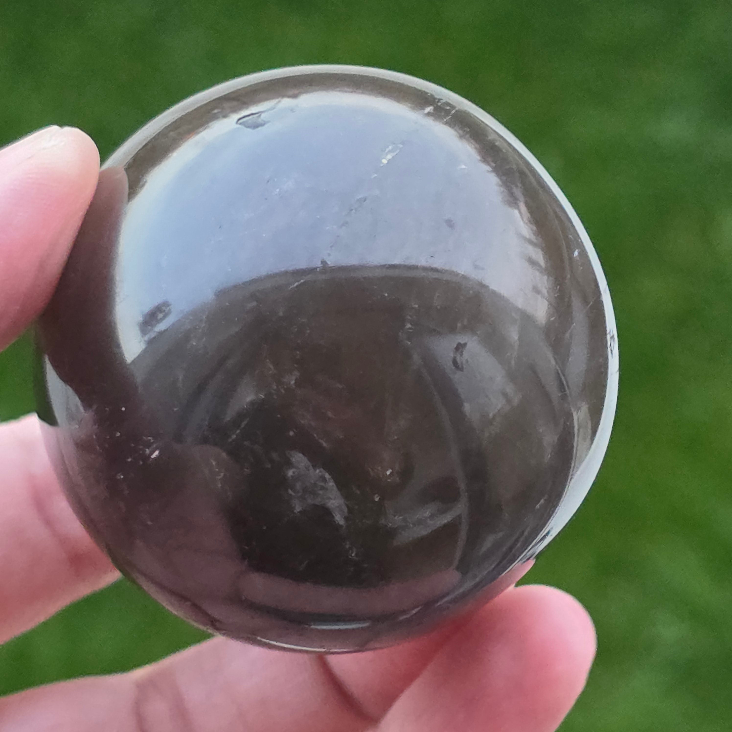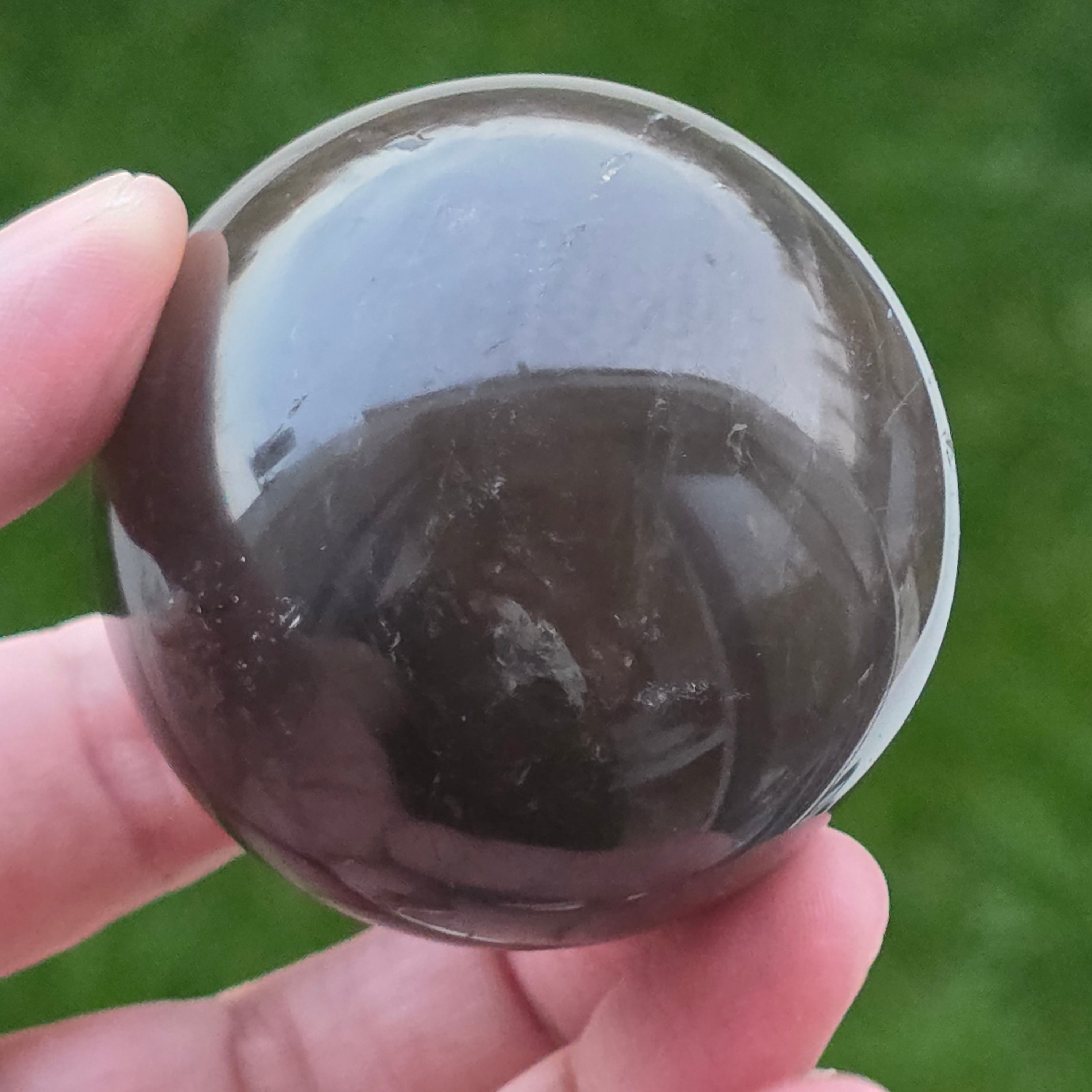 Sfera din cuarț morion este o piesă puternică și elegantă, cunoscută pentru nuanța sa profundă, asemănătoare fumului dens sau obsidianului transparent. Morionul este cea mai închisă varietate de cuarț fumuriu, iar în această formă perfect rotundă dezvăluie reflexii discrete, detalii interne fine și o prezență vizuală cu adevărat sofisticată.