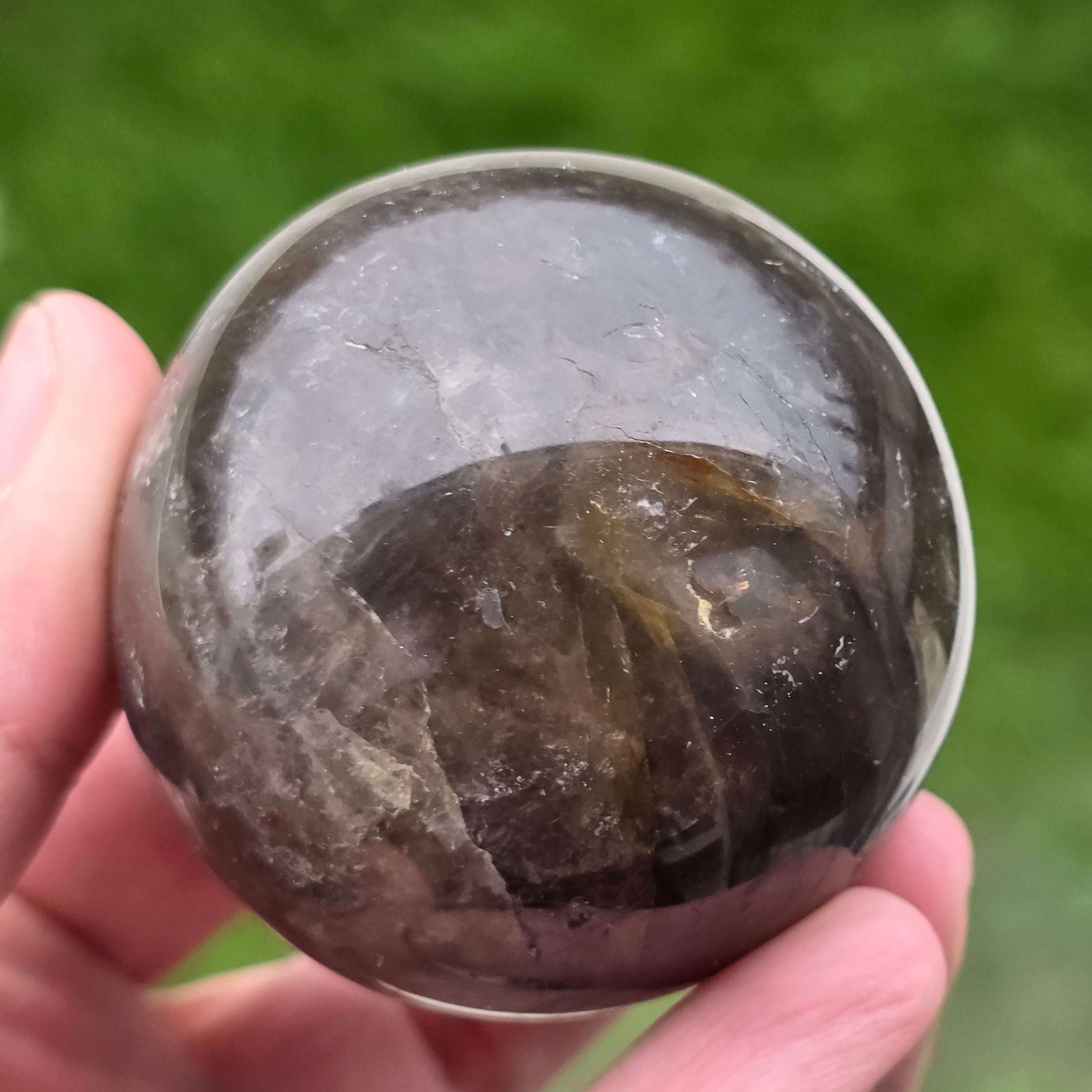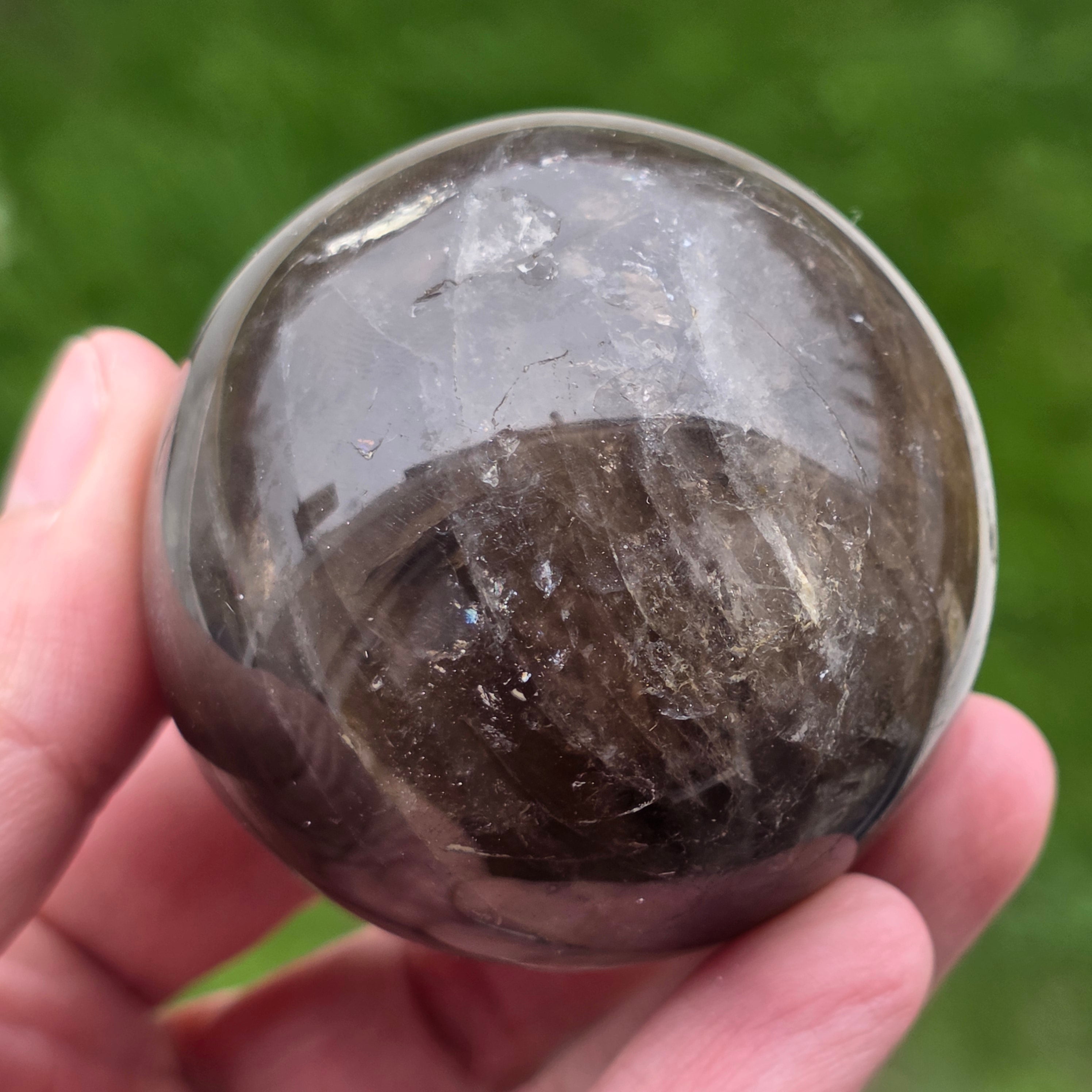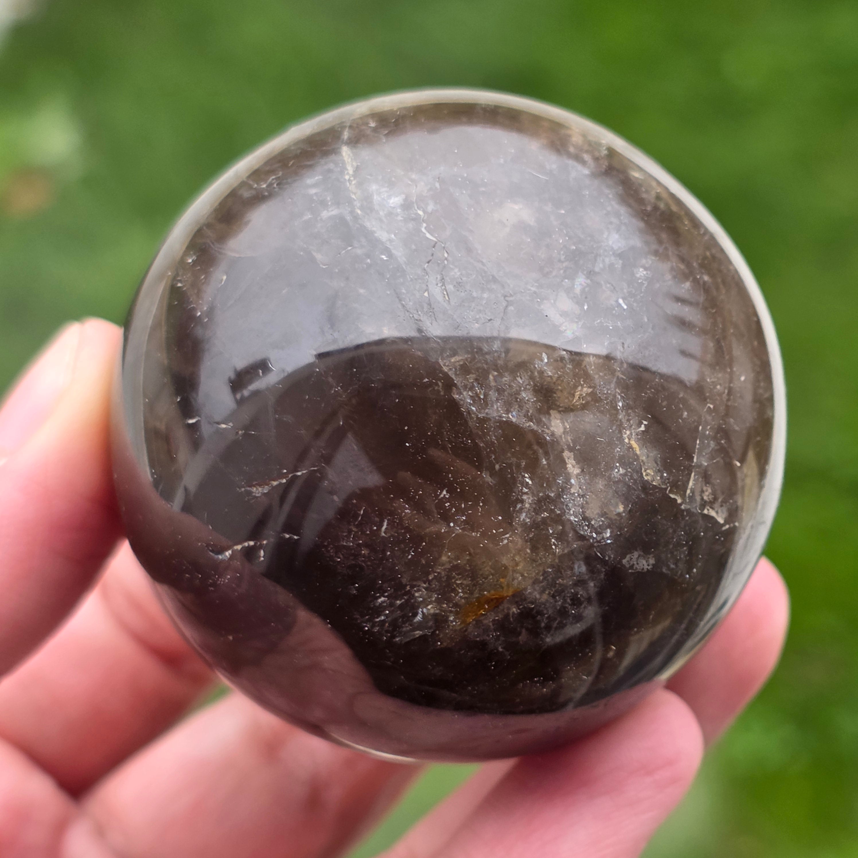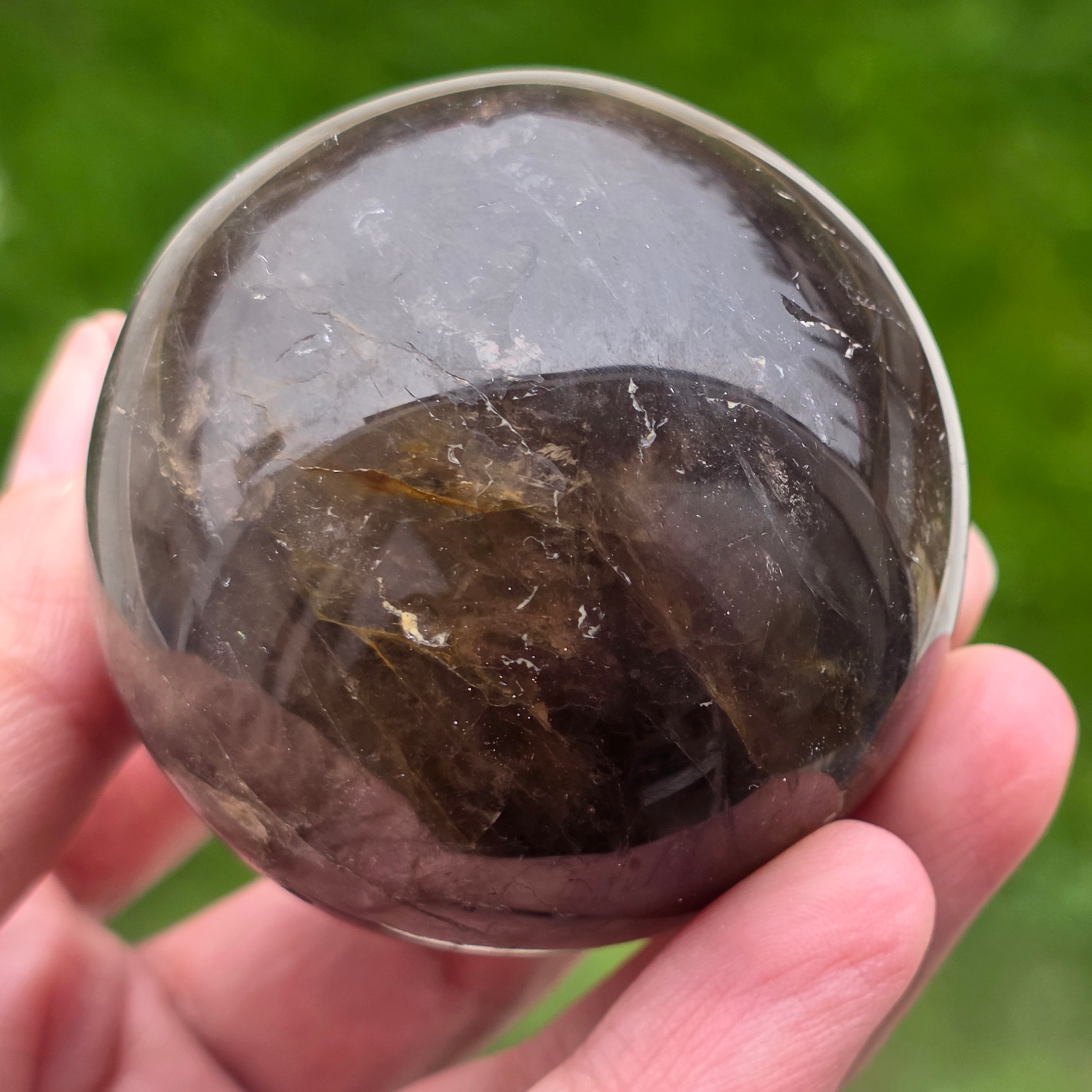 Sfera din cuarț morion este o piesă puternică și elegantă, cunoscută pentru nuanța sa profundă, asemănătoare fumului dens sau obsidianului transparent. Morionul este cea mai închisă varietate de cuarț fumuriu, iar în această formă perfect rotundă dezvăluie reflexii discrete, detalii interne fine și o prezență vizuală cu adevărat sofisticată.