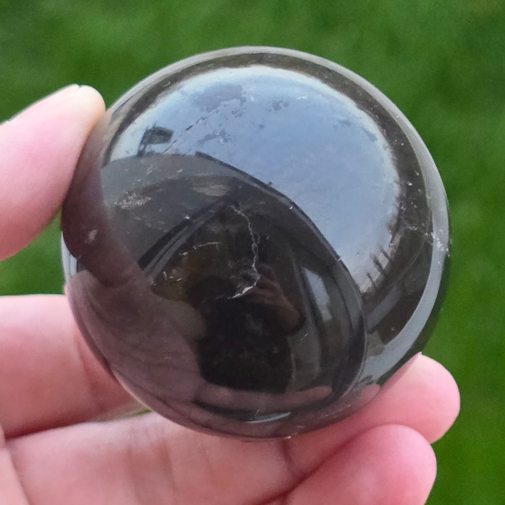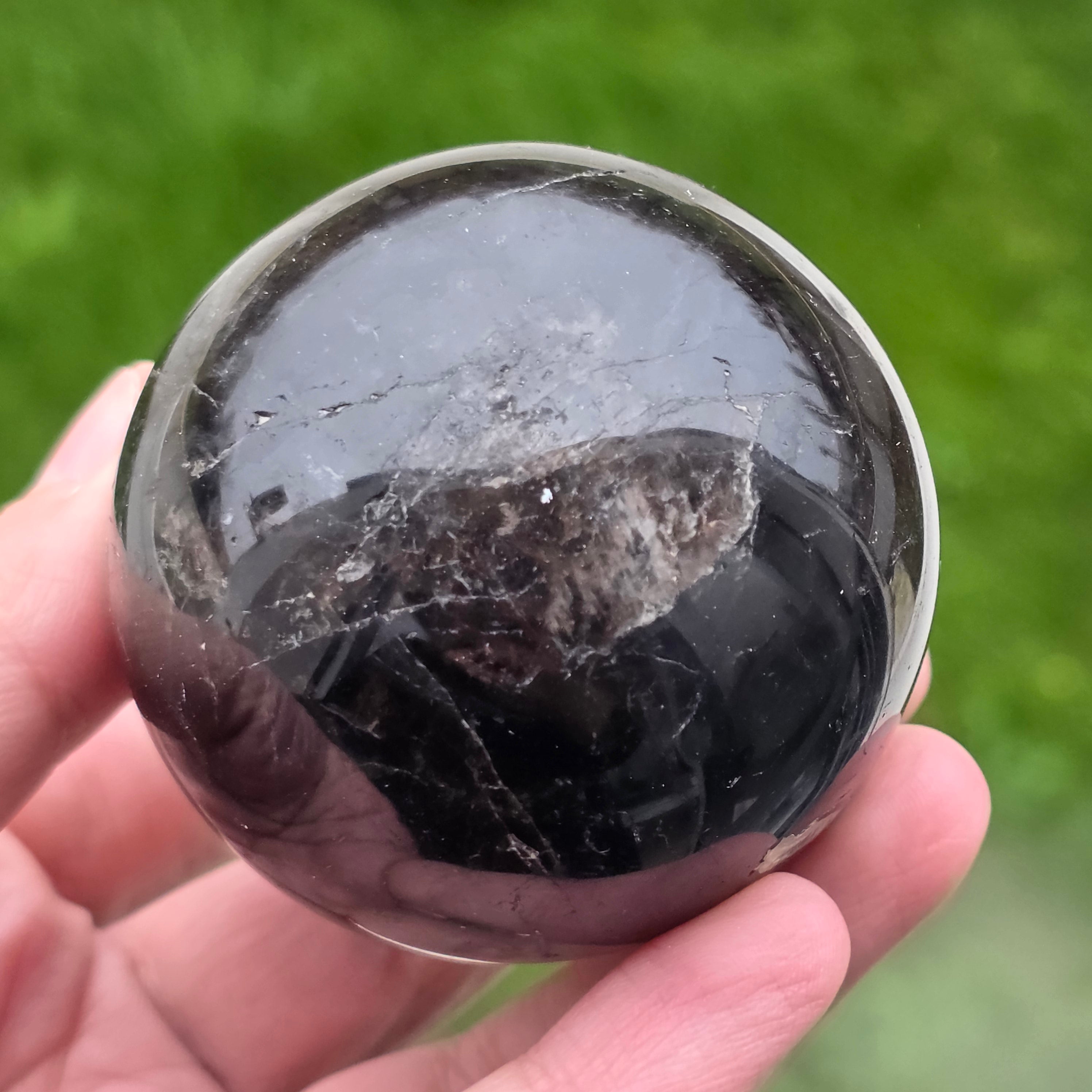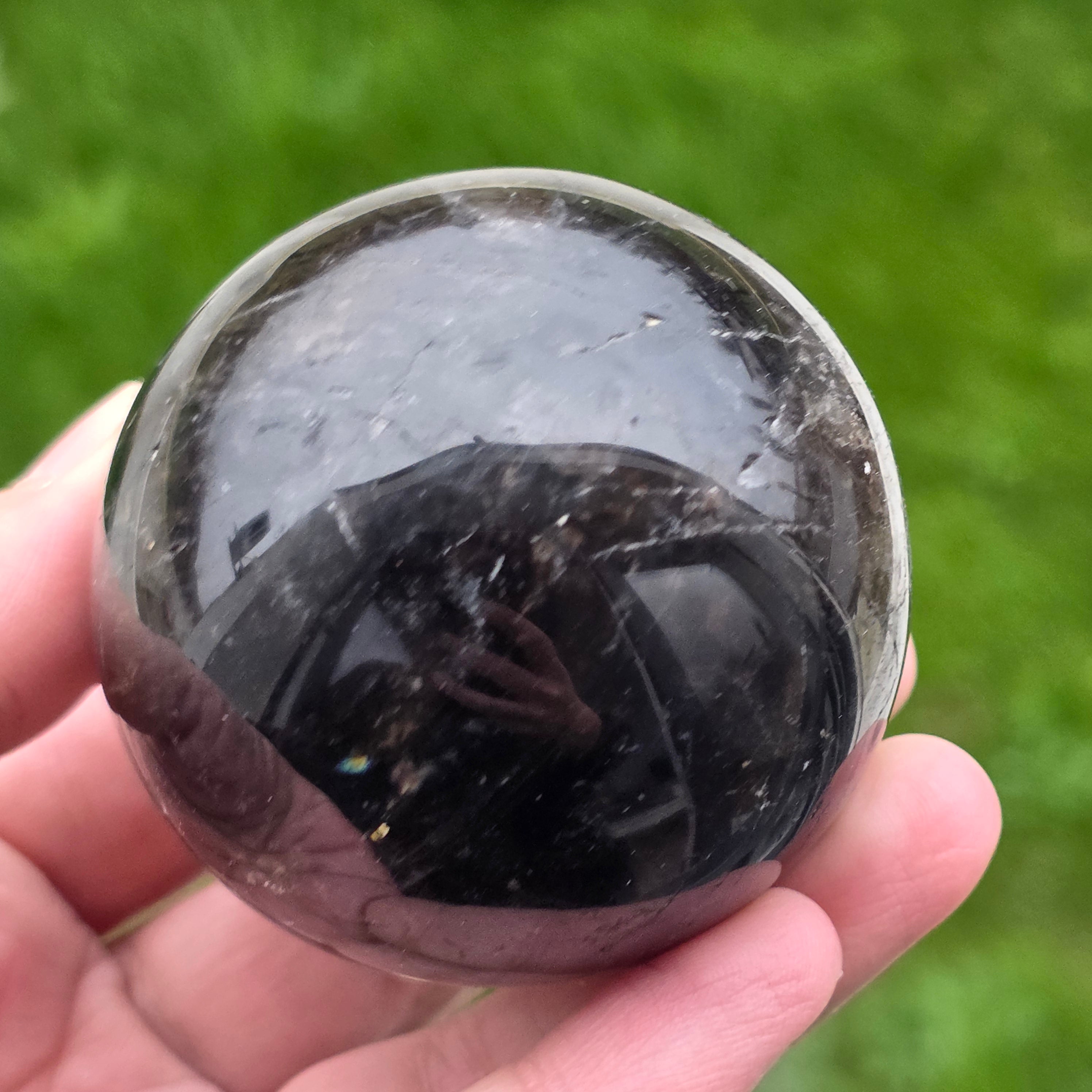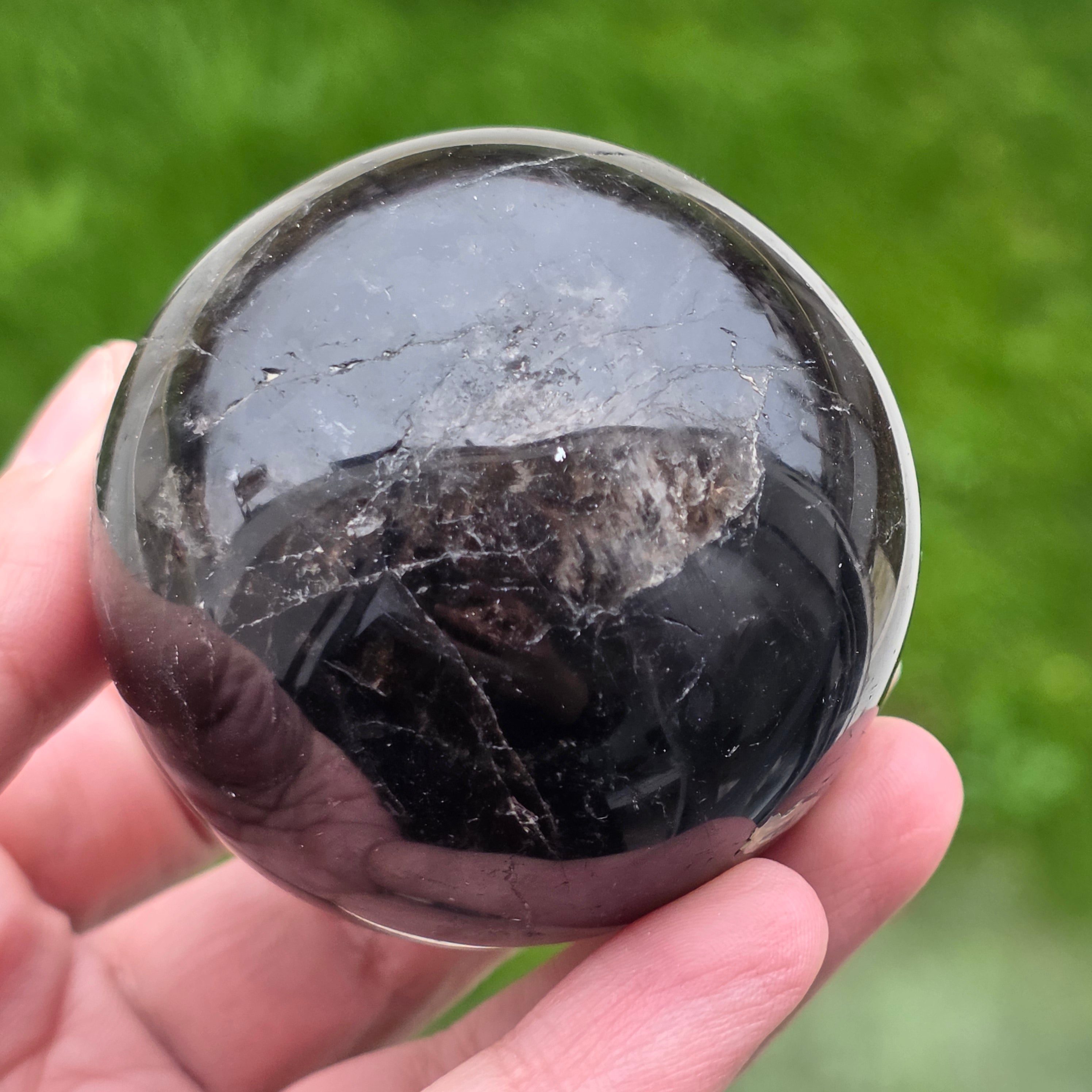Sfera din cuarț morion este o piesă puternică și elegantă, cunoscută pentru nuanța sa profundă, asemănătoare fumului dens sau obsidianului transparent. Morionul este cea mai închisă varietate de cuarț fumuriu, iar în această formă perfect rotundă dezvăluie reflexii discrete, detalii interne fine și o prezență vizuală cu adevărat sofisticată.