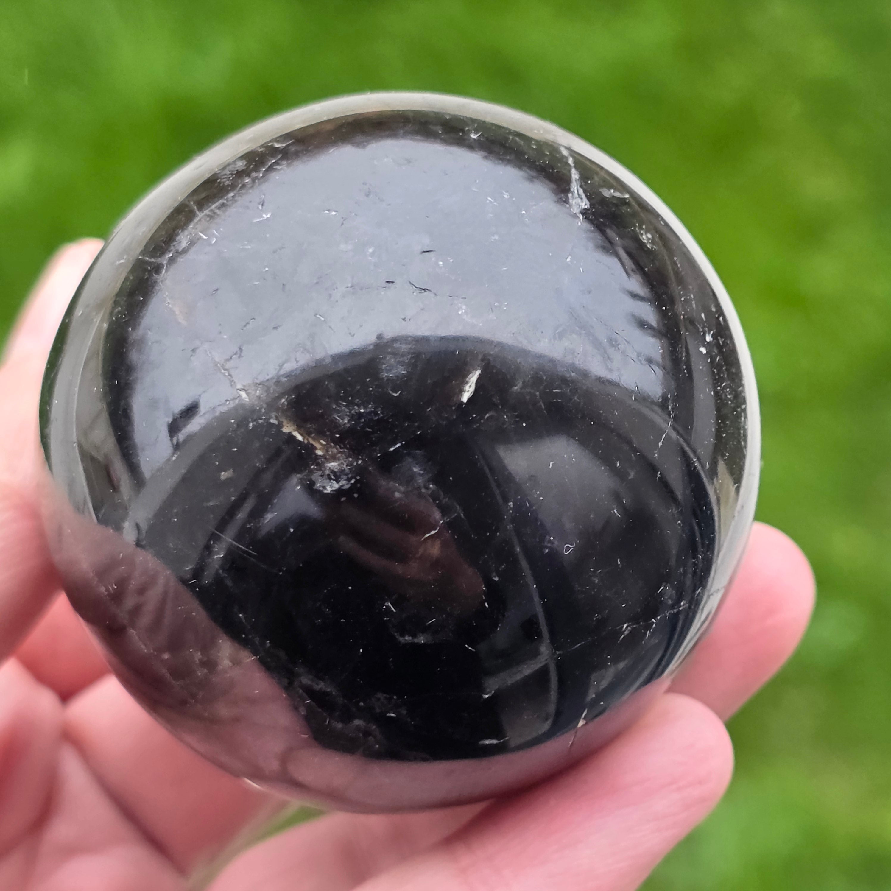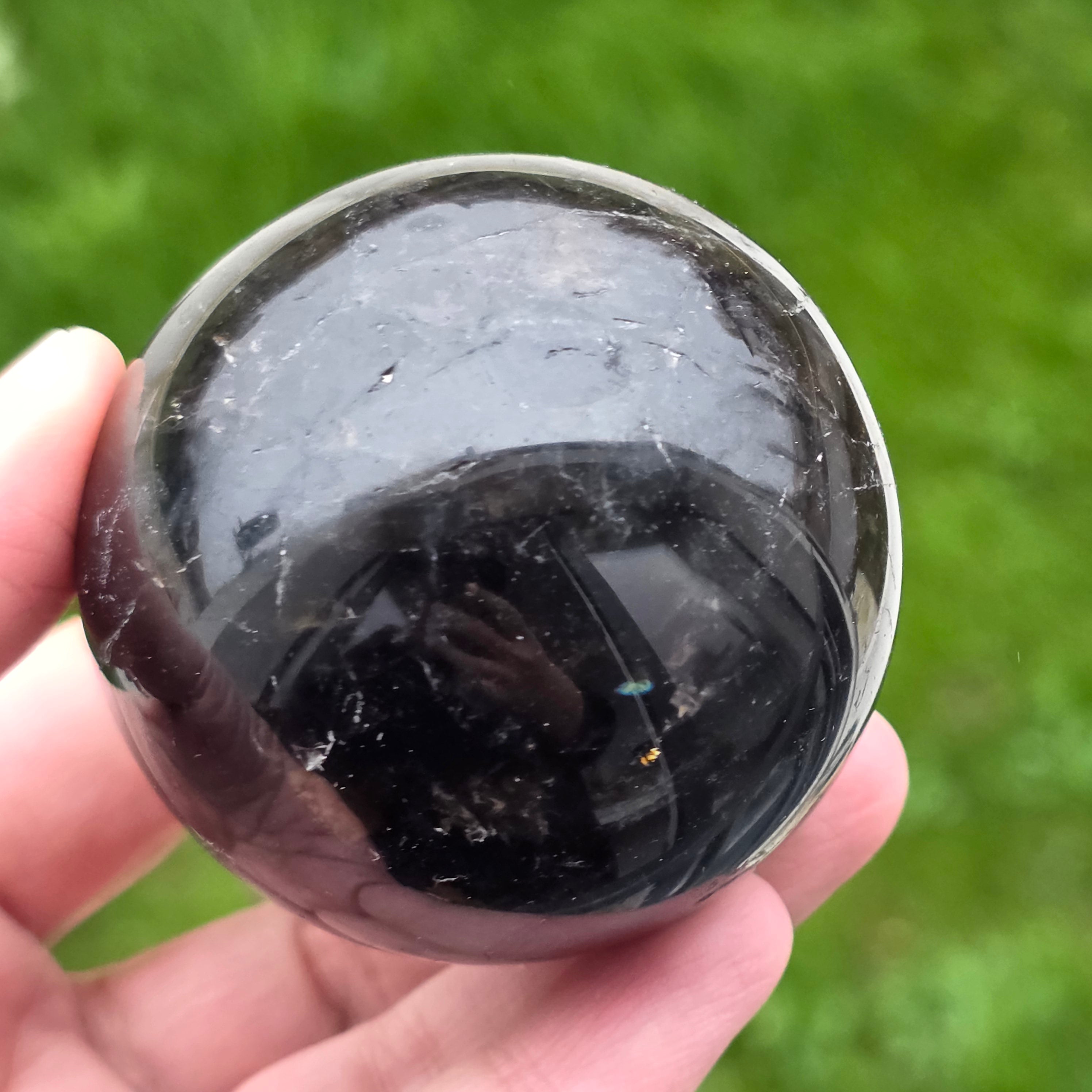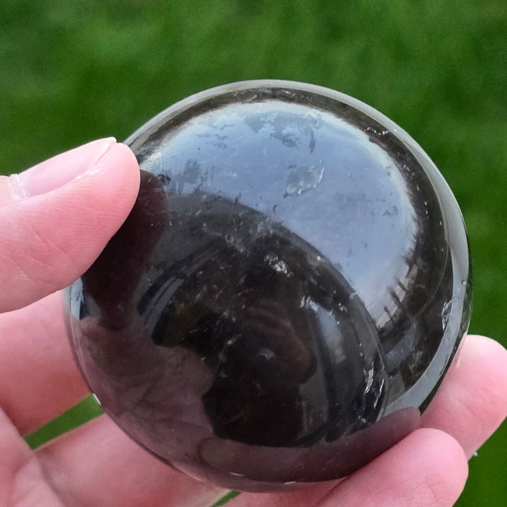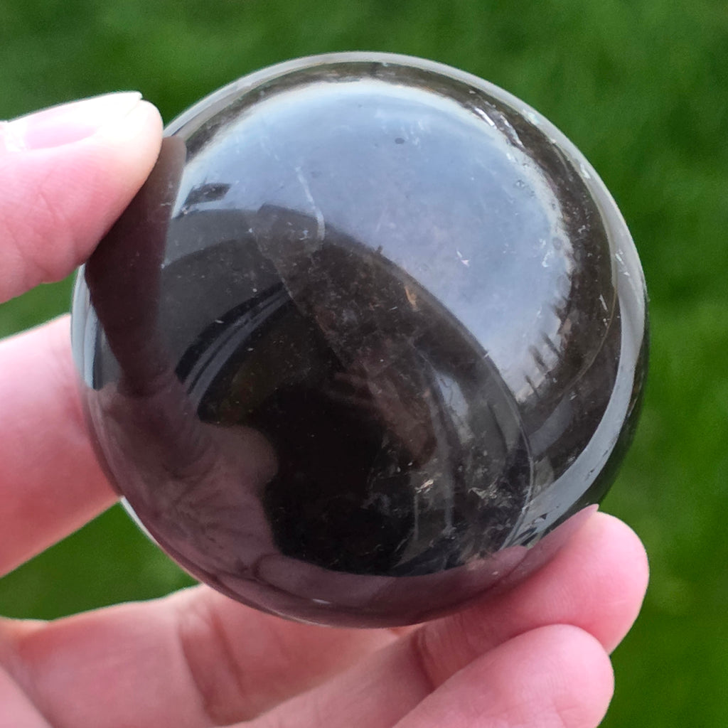 Sfera din cuarț morion este o piesă puternică și elegantă, cunoscută pentru nuanța sa profundă, asemănătoare fumului dens sau obsidianului transparent. Morionul este cea mai închisă varietate de cuarț fumuriu, iar în această formă perfect rotundă dezvăluie reflexii discrete, detalii interne fine și o prezență vizuală cu adevărat sofisticată.