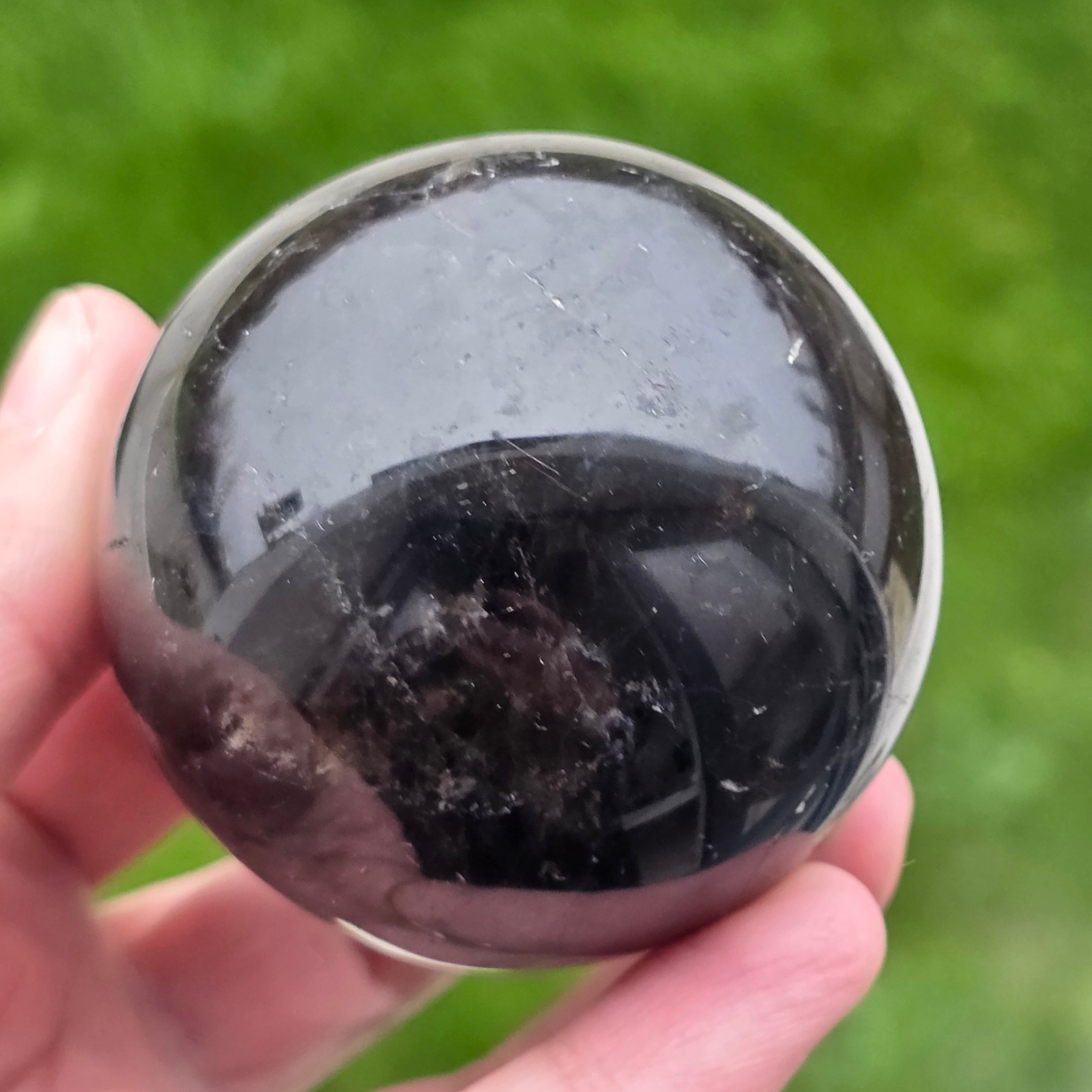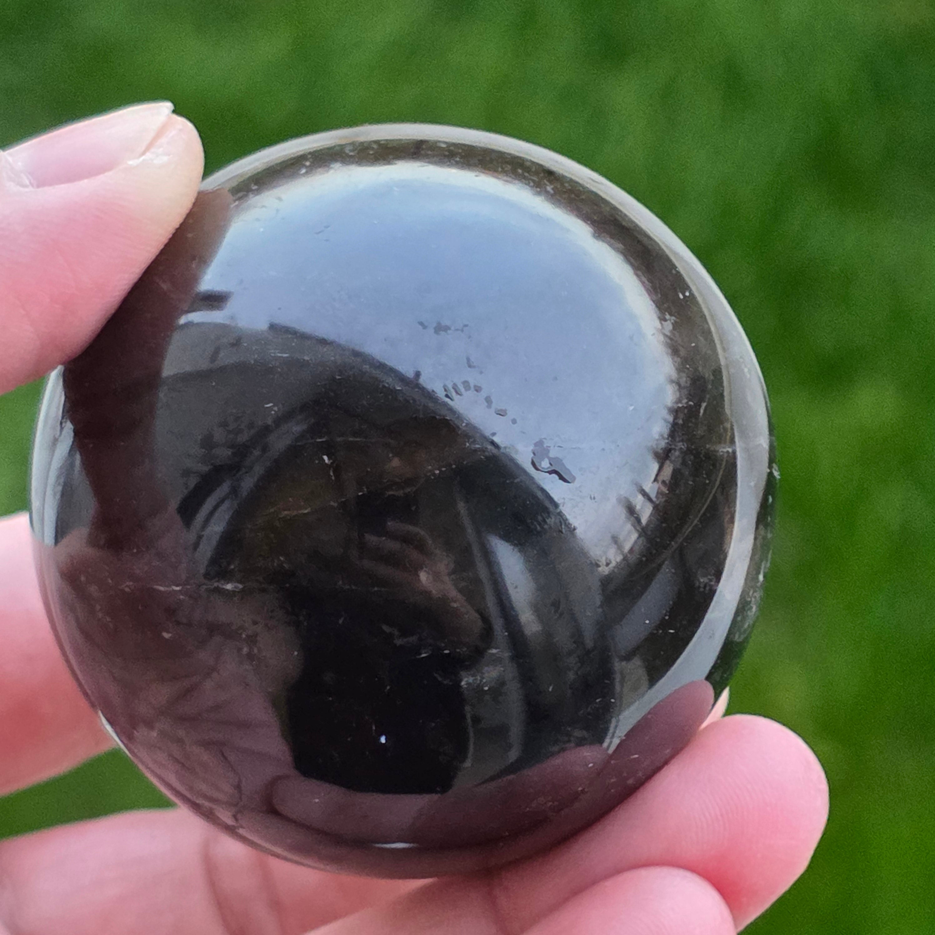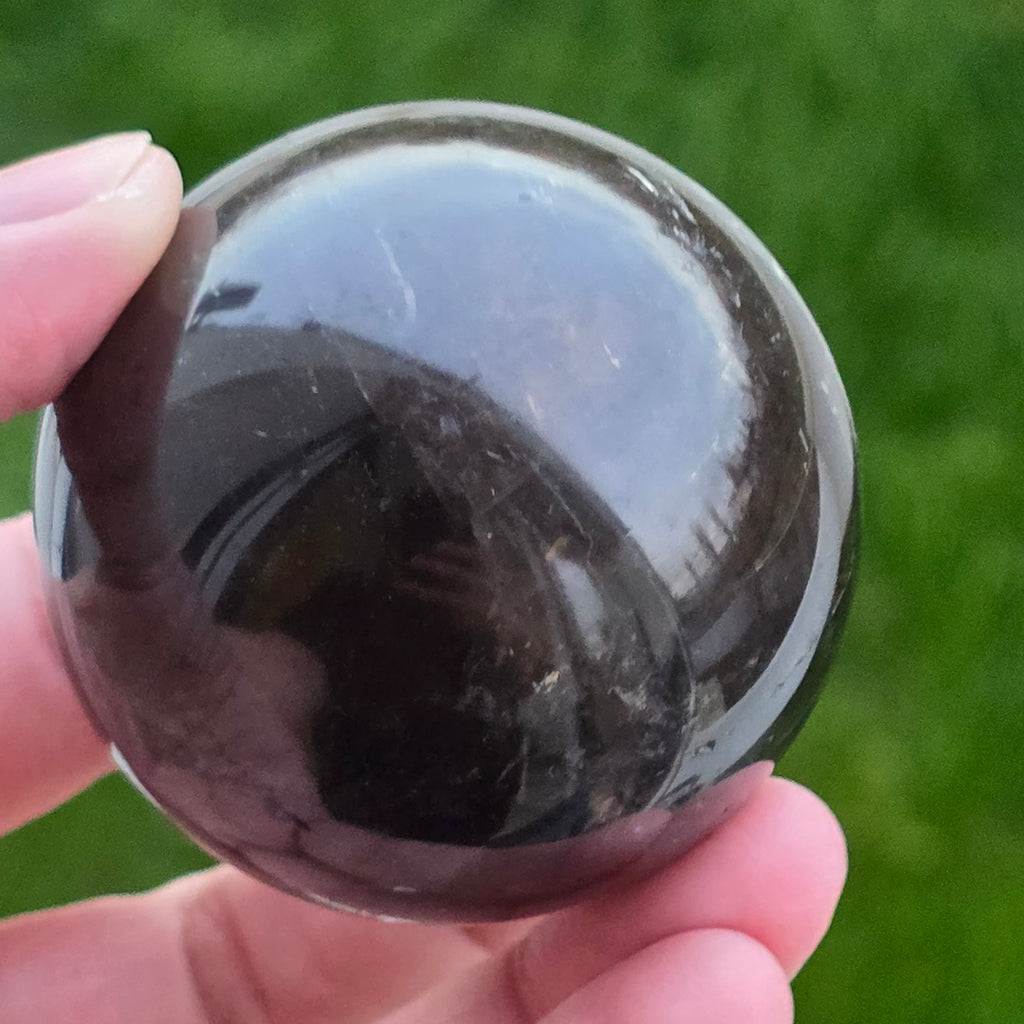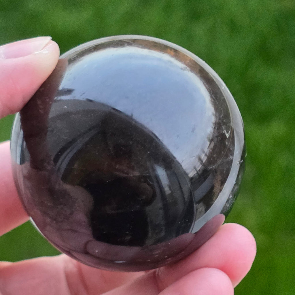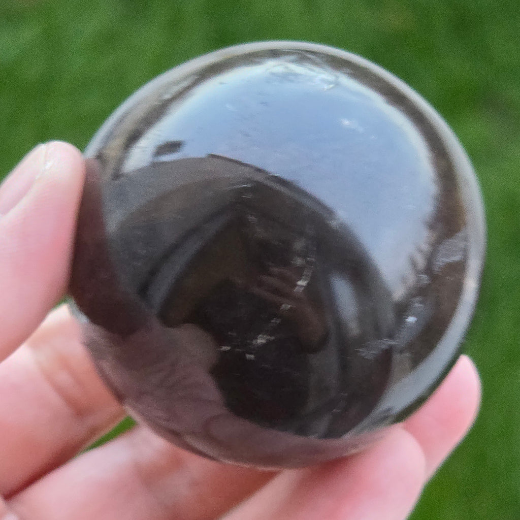 Sfera din cuarț morion este o piesă puternică și elegantă, cunoscută pentru nuanța sa profundă, asemănătoare fumului dens sau obsidianului transparent. Morionul este cea mai închisă varietate de cuarț fumuriu, iar în această formă perfect rotundă dezvăluie reflexii discrete, detalii interne fine și o prezență vizuală cu adevărat sofisticată.