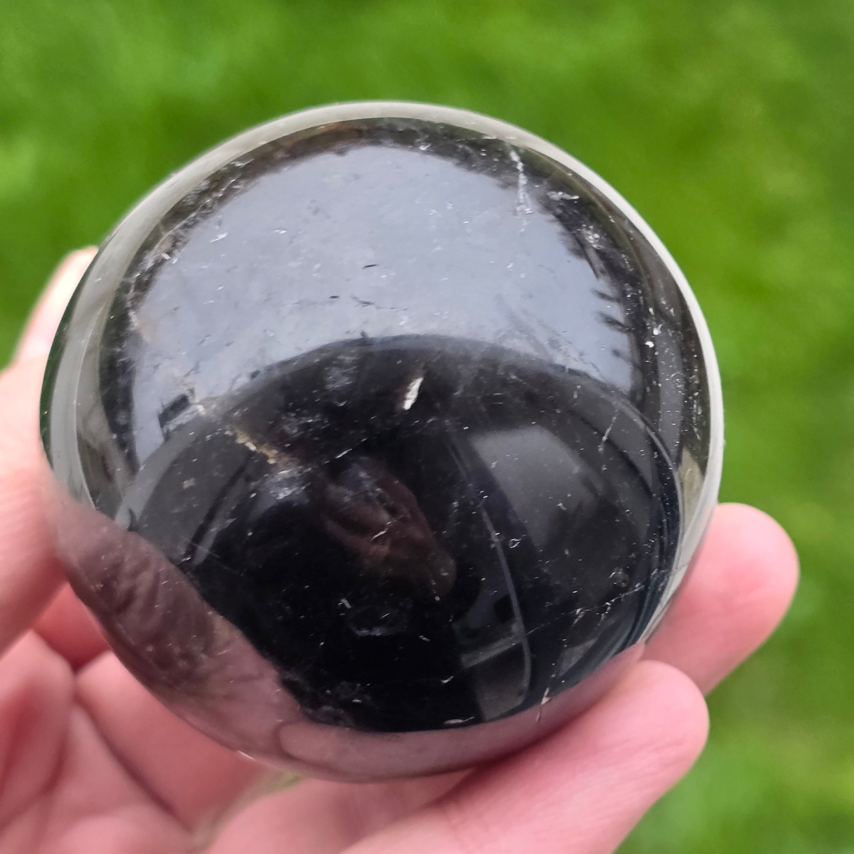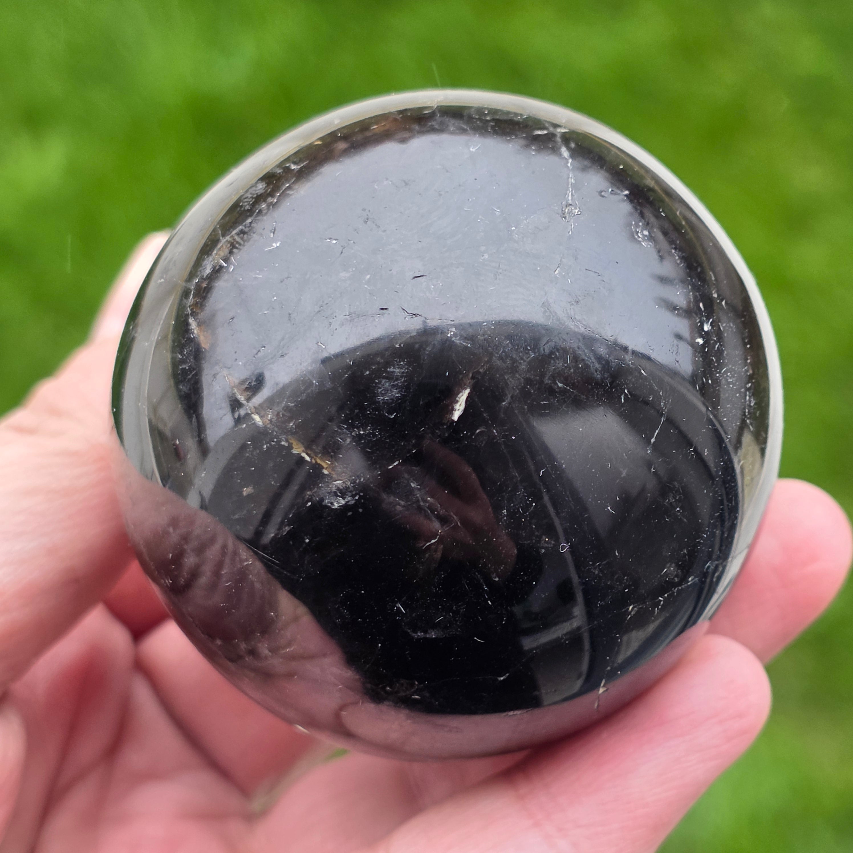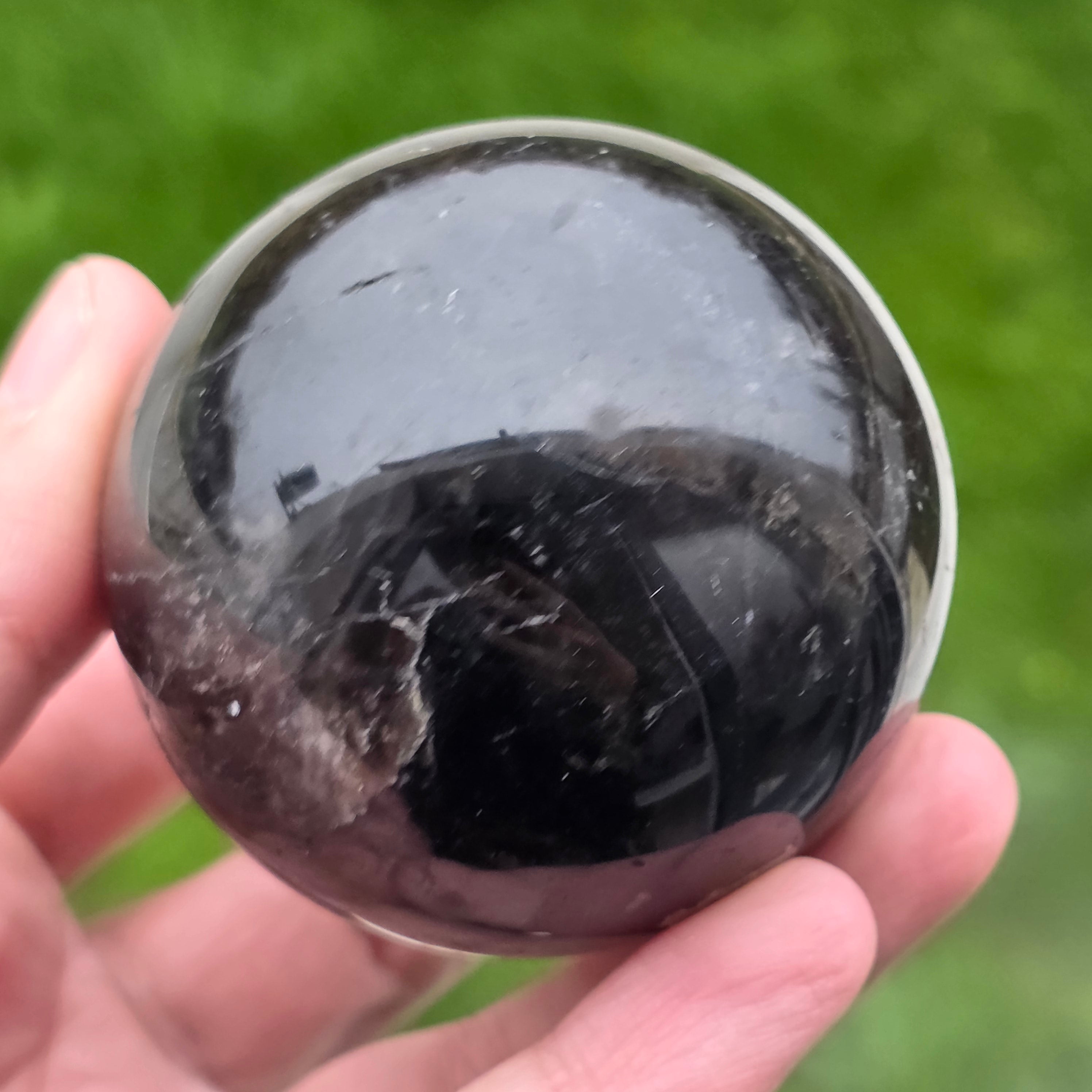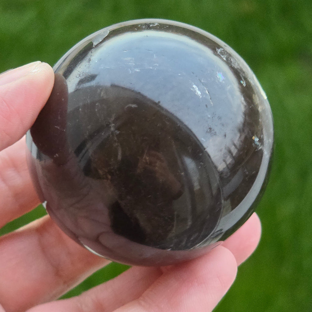 Sfera din cuarț morion este o piesă puternică și elegantă, cunoscută pentru nuanța sa profundă, asemănătoare fumului dens sau obsidianului transparent. Morionul este cea mai închisă varietate de cuarț fumuriu, iar în această formă perfect rotundă dezvăluie reflexii discrete, detalii interne fine și o prezență vizuală cu adevărat sofisticată.