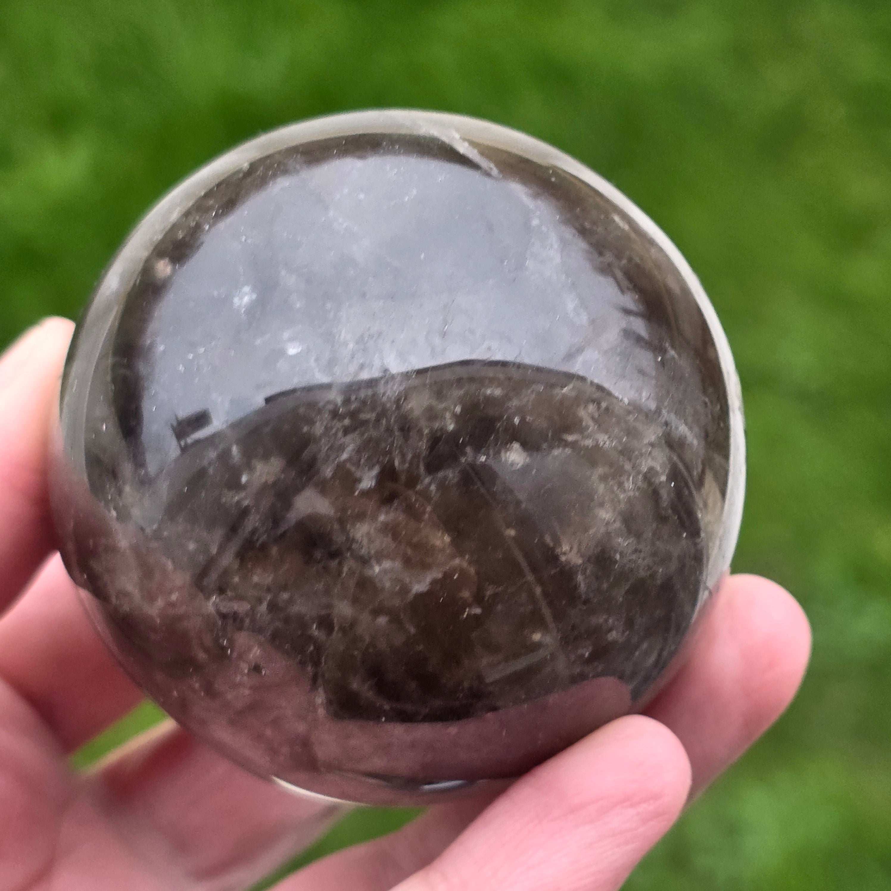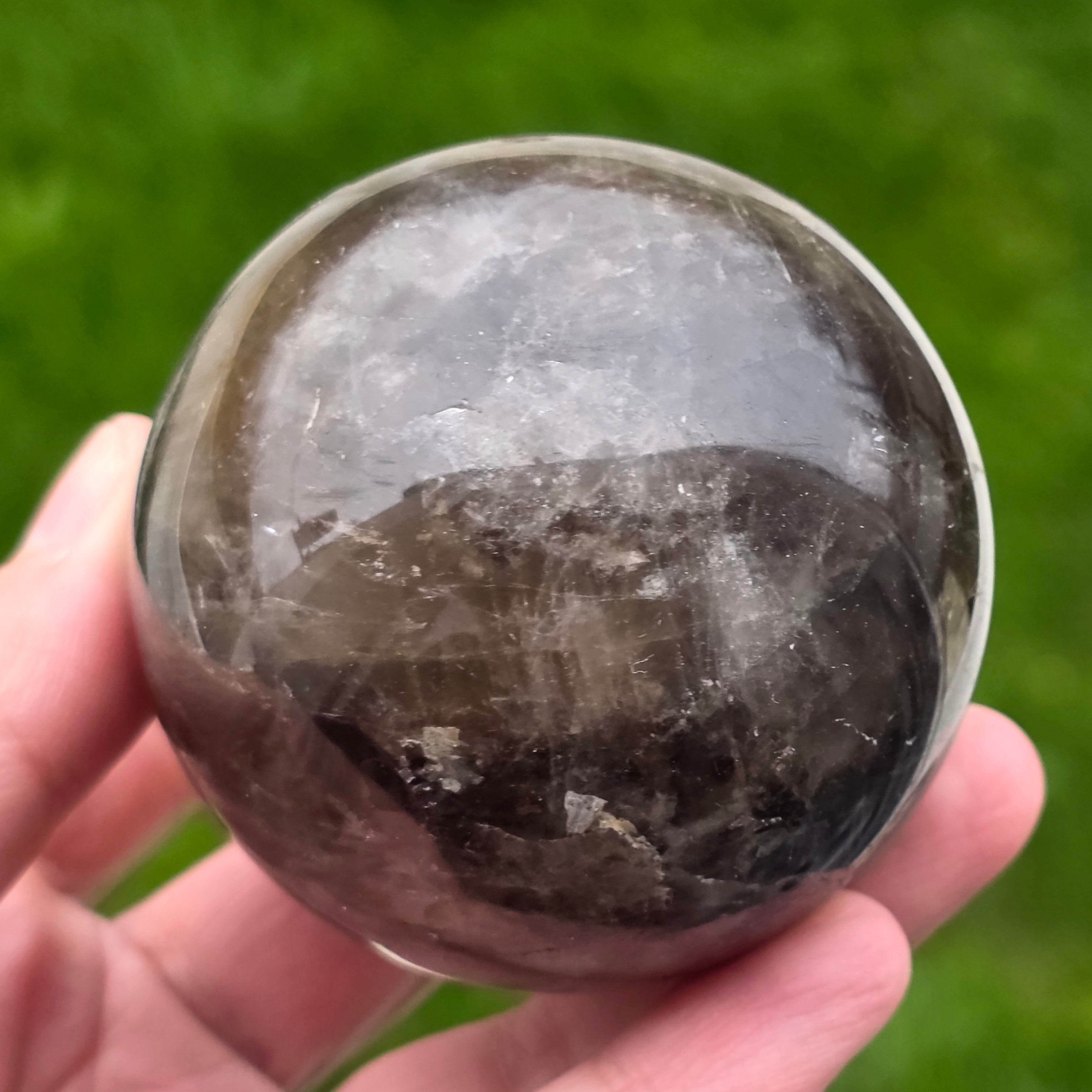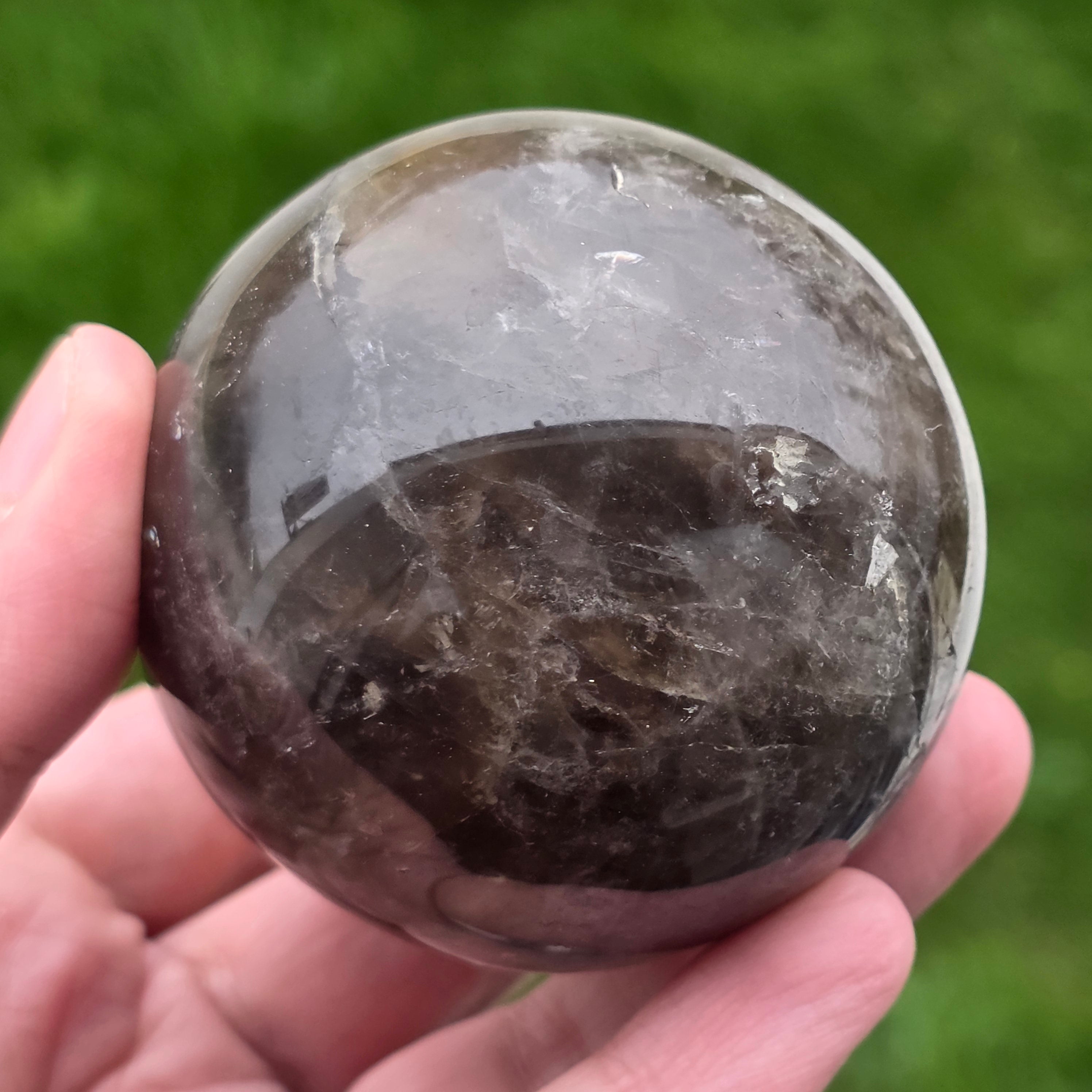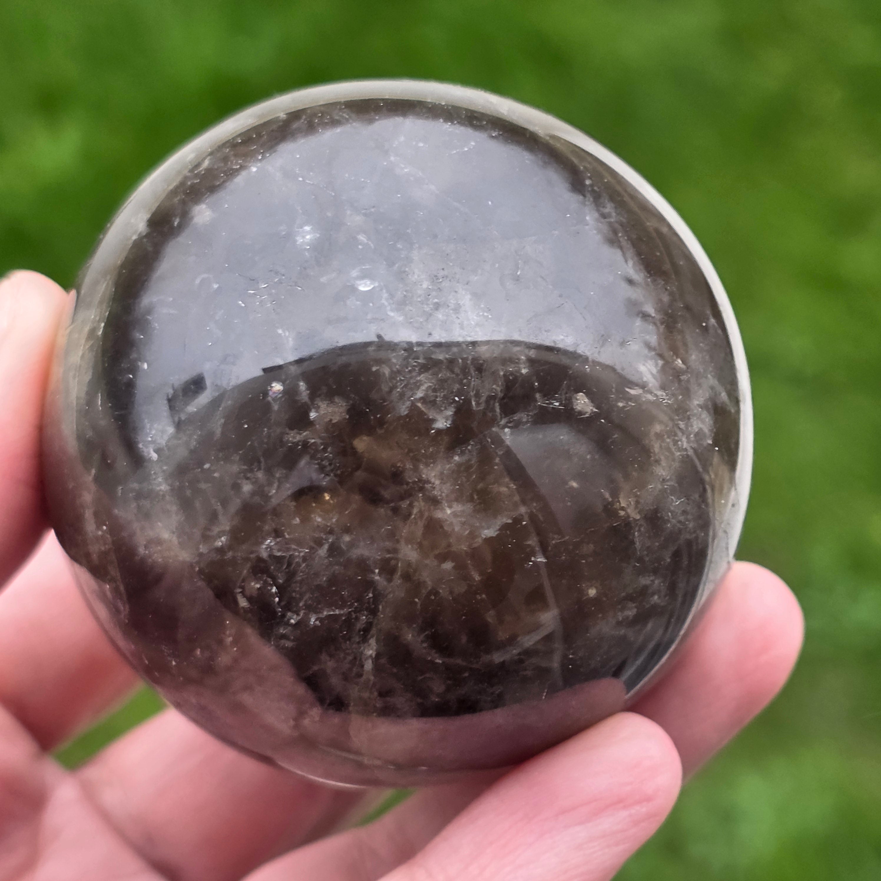 Sfera din cuarț morion este o piesă puternică și elegantă, cunoscută pentru nuanța sa profundă, asemănătoare fumului dens sau obsidianului transparent. Morionul este cea mai închisă varietate de cuarț fumuriu, iar în această formă perfect rotundă dezvăluie reflexii discrete, detalii interne fine și o prezență vizuală cu adevărat sofisticată.