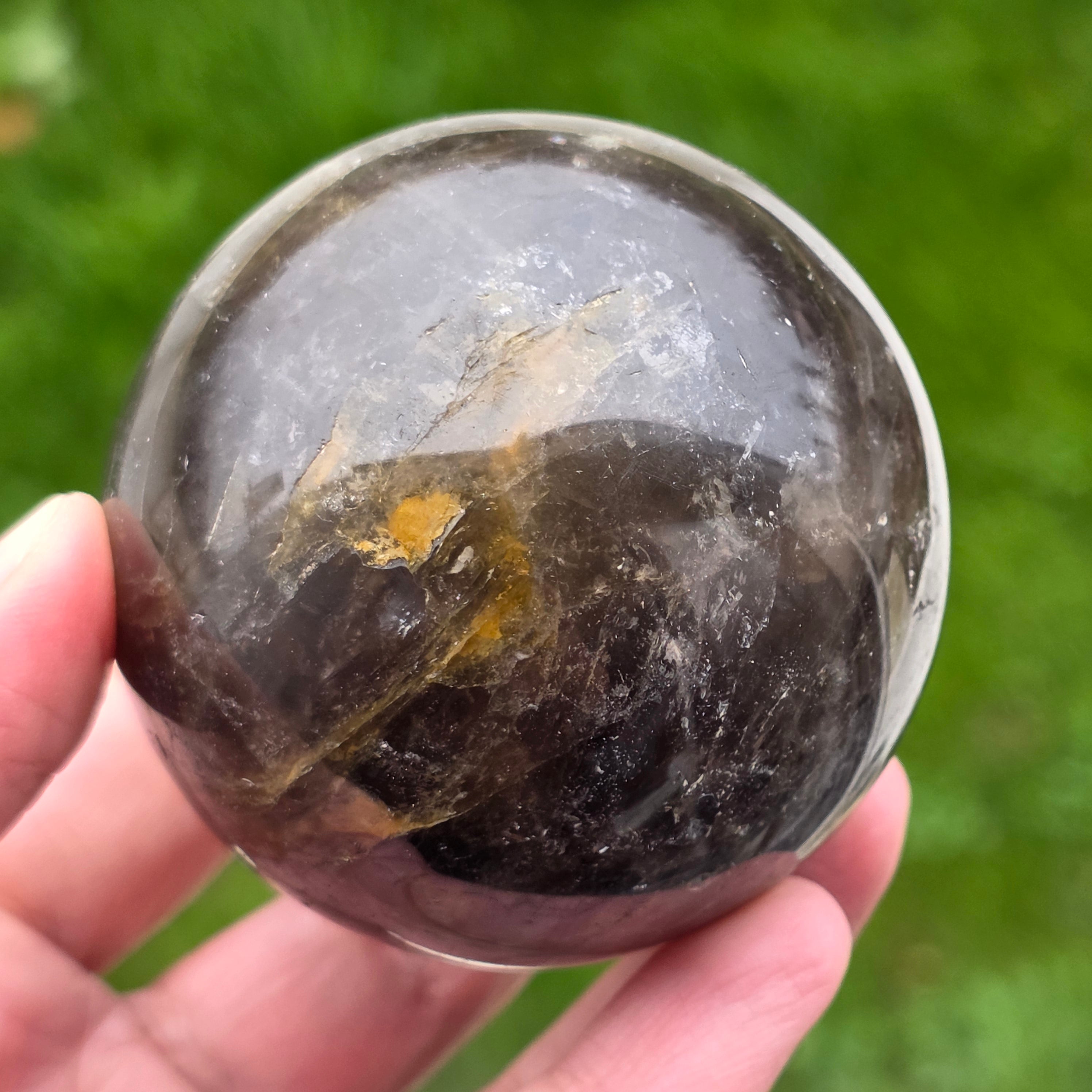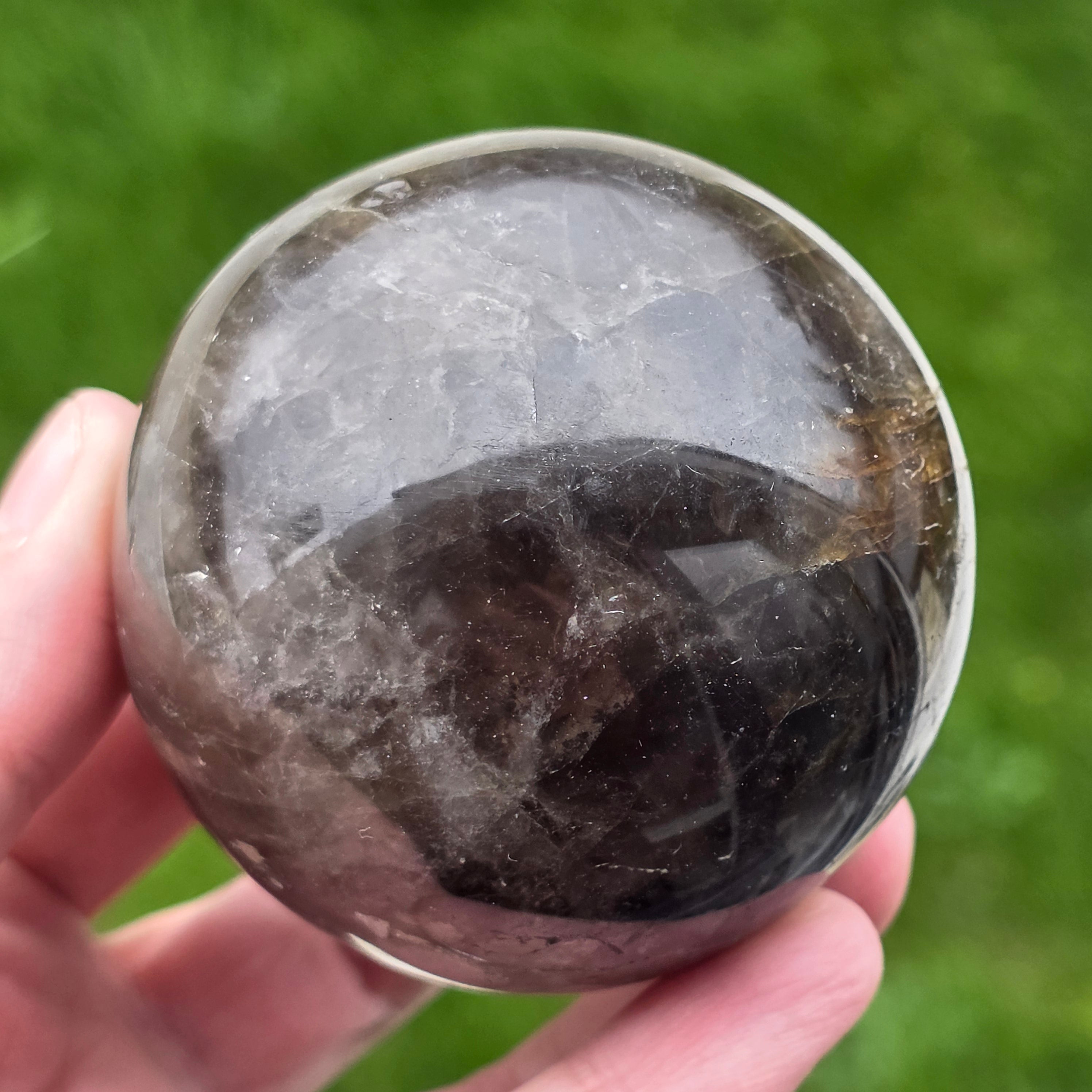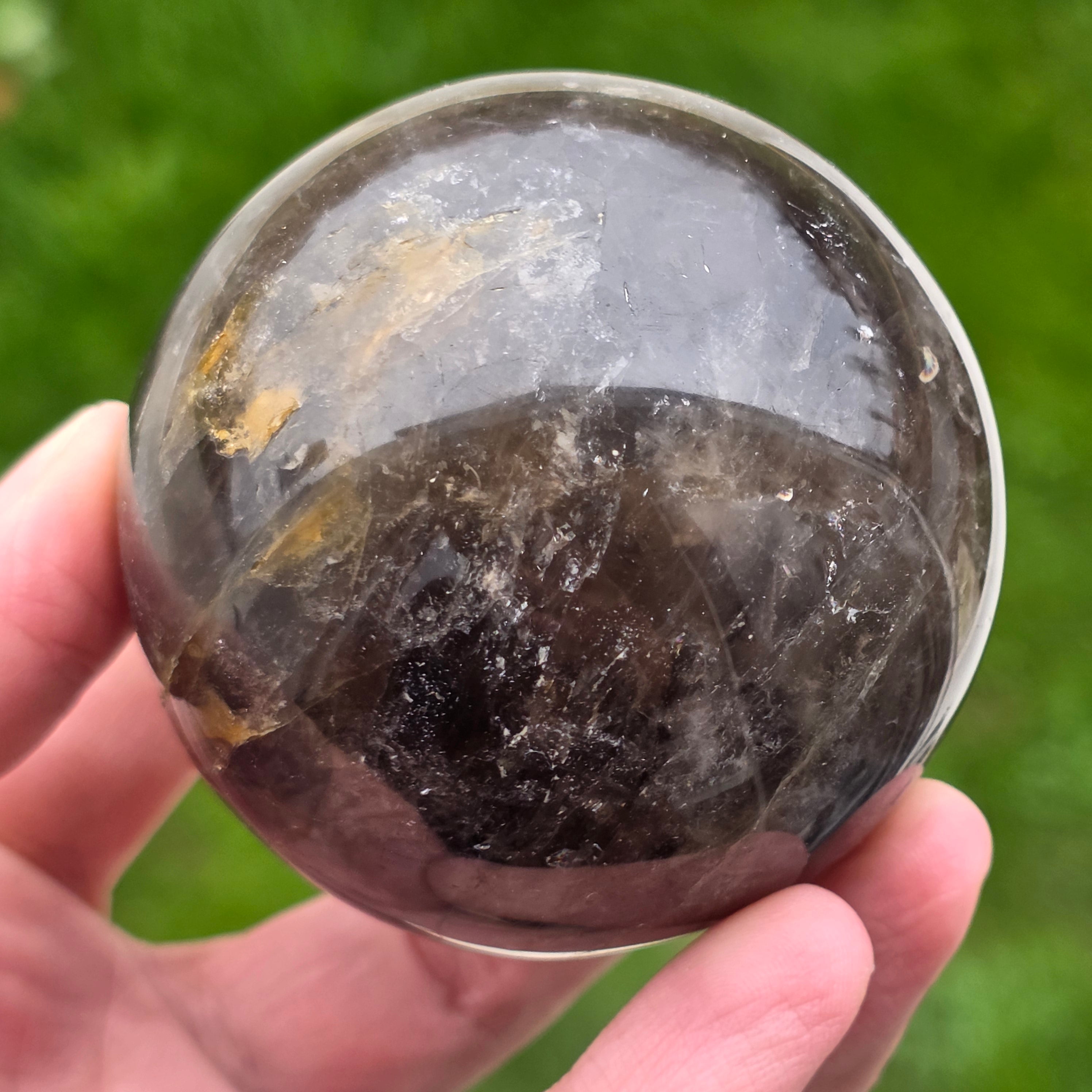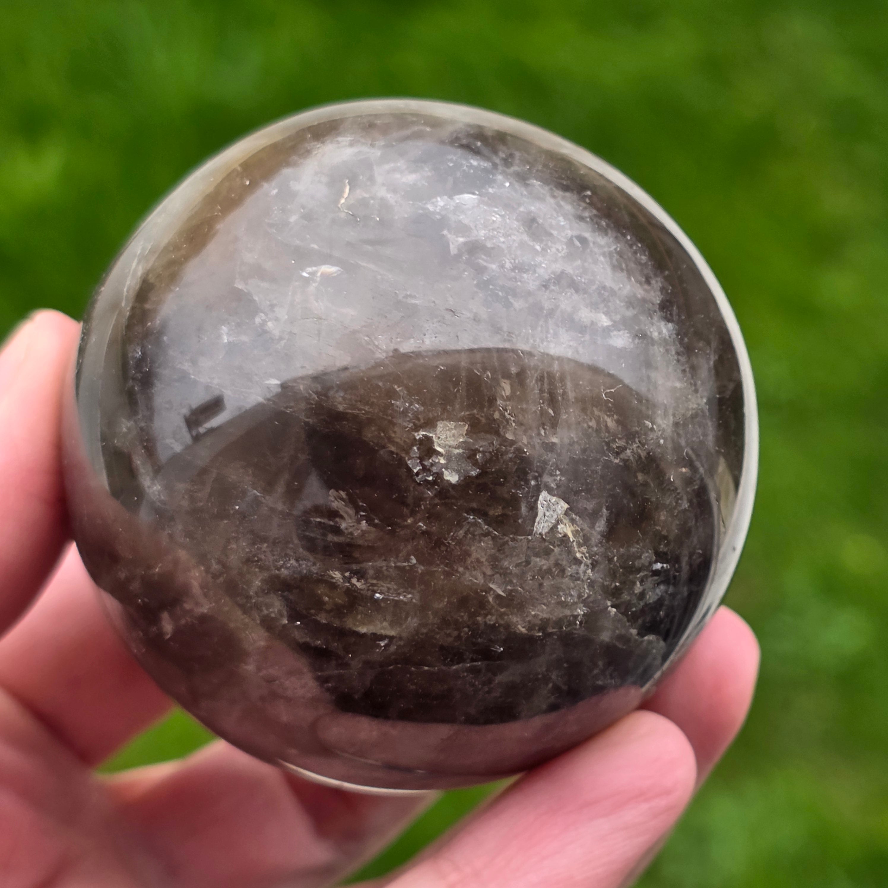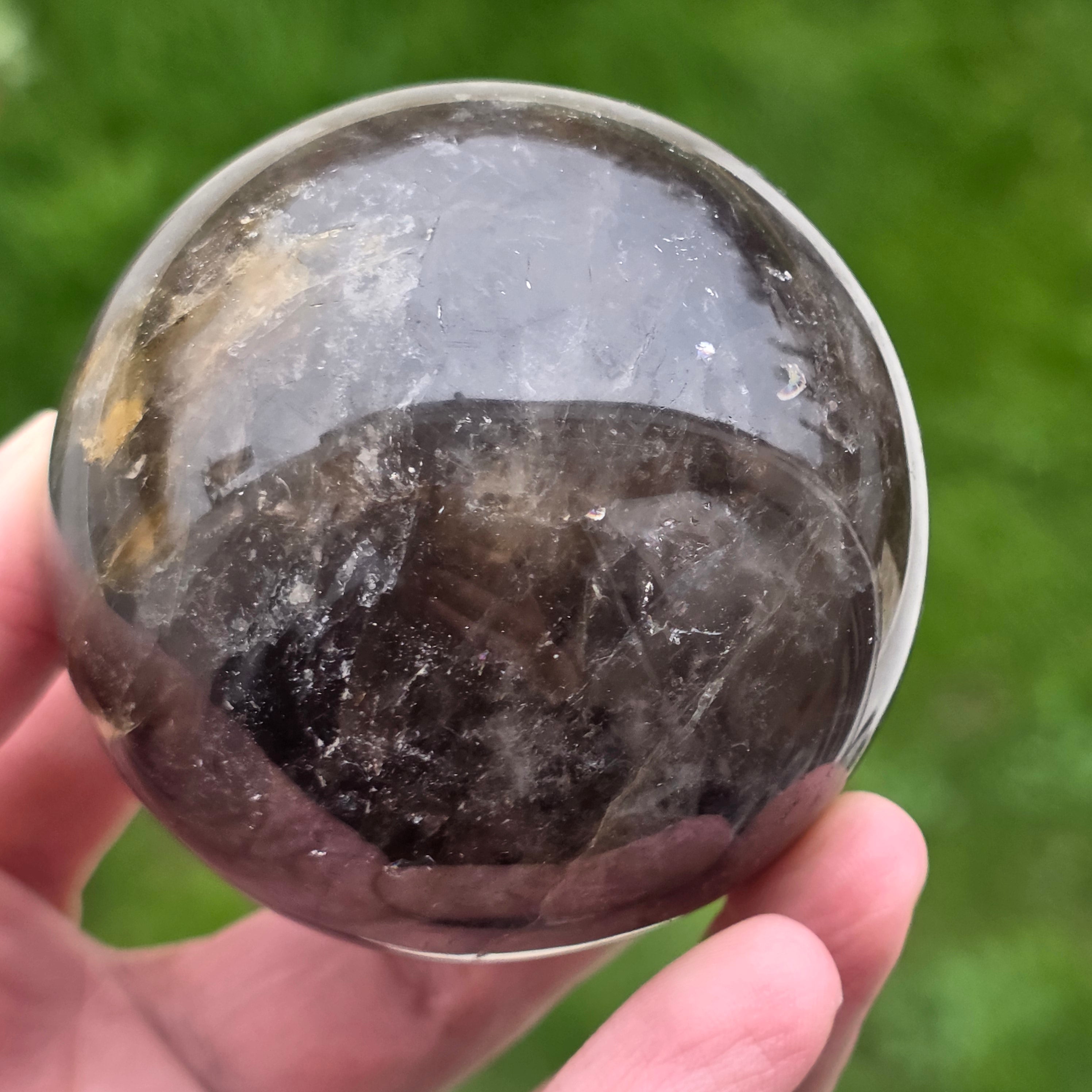 Sfera din cuarț morion este o piesă puternică și elegantă, cunoscută pentru nuanța sa profundă, asemănătoare fumului dens sau obsidianului transparent. Morionul este cea mai închisă varietate de cuarț fumuriu, iar în această formă perfect rotundă dezvăluie reflexii discrete, detalii interne fine și o prezență vizuală cu adevărat sofisticată.
