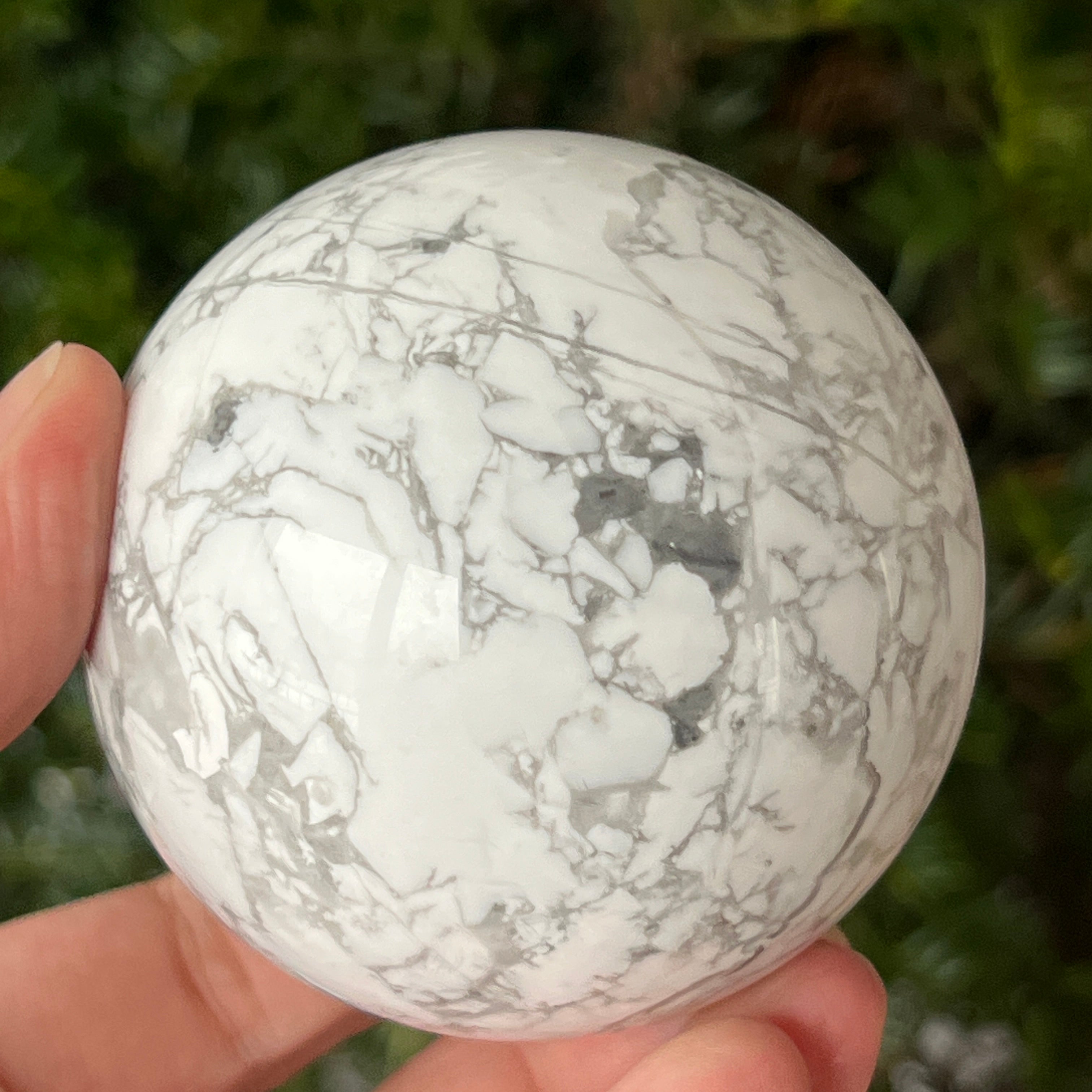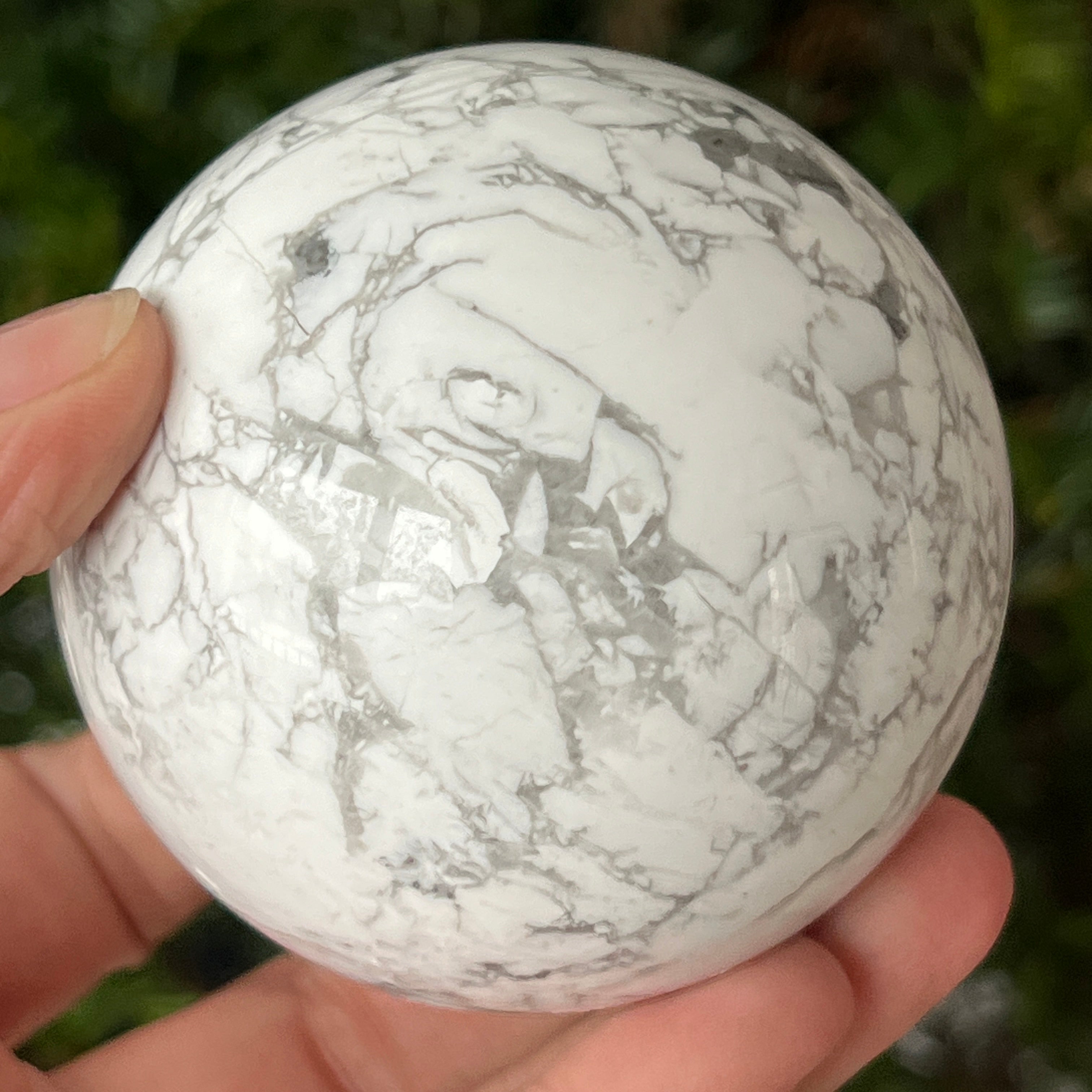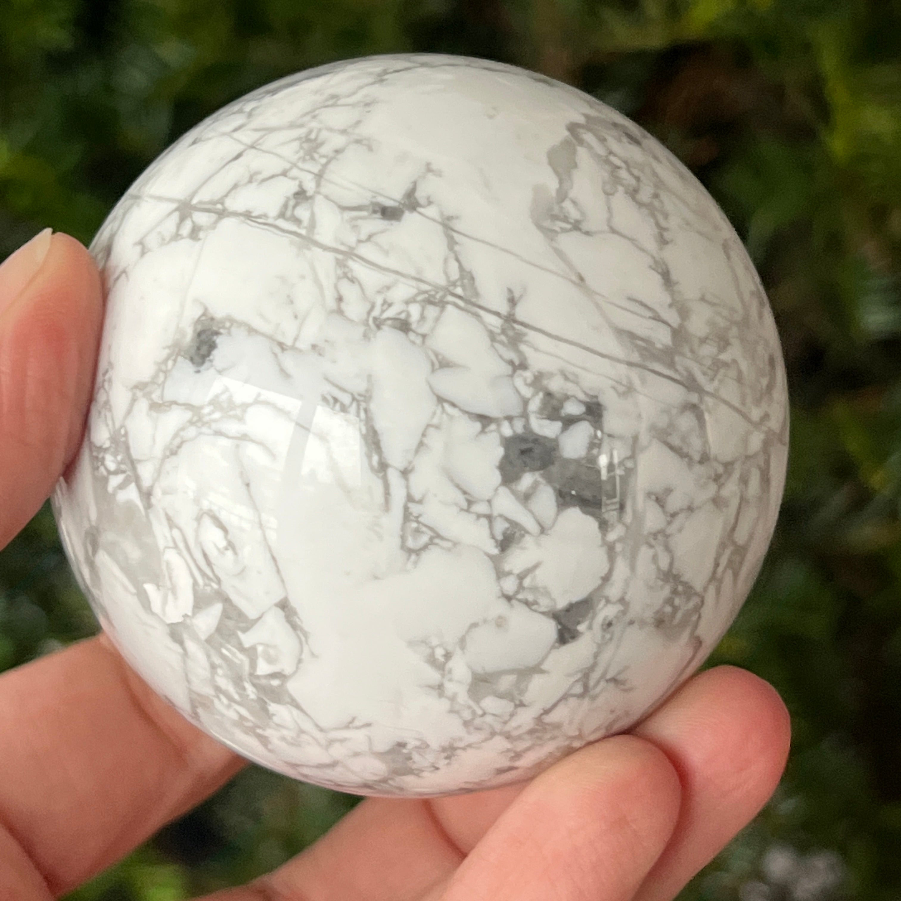 Această sferă din howlit alb natural, calitate A, impresionează prin aspectul său curat și liniștitor, marcat de vene gri fine, specifice acestei pietre. Este o piesă ideală pentru spații de meditație, dormitor sau birou, unde poate contribui la crearea unei atmosfere calme și echilibrate. Howlitul alb este asociat cu liniștirea minții, claritatea gândurilor și susținerea proceselor de relaxare profundă. Forma de sferă ajută la distribuirea uniformă a energiei, transformând această piesă într-un punct de calm și armonie.