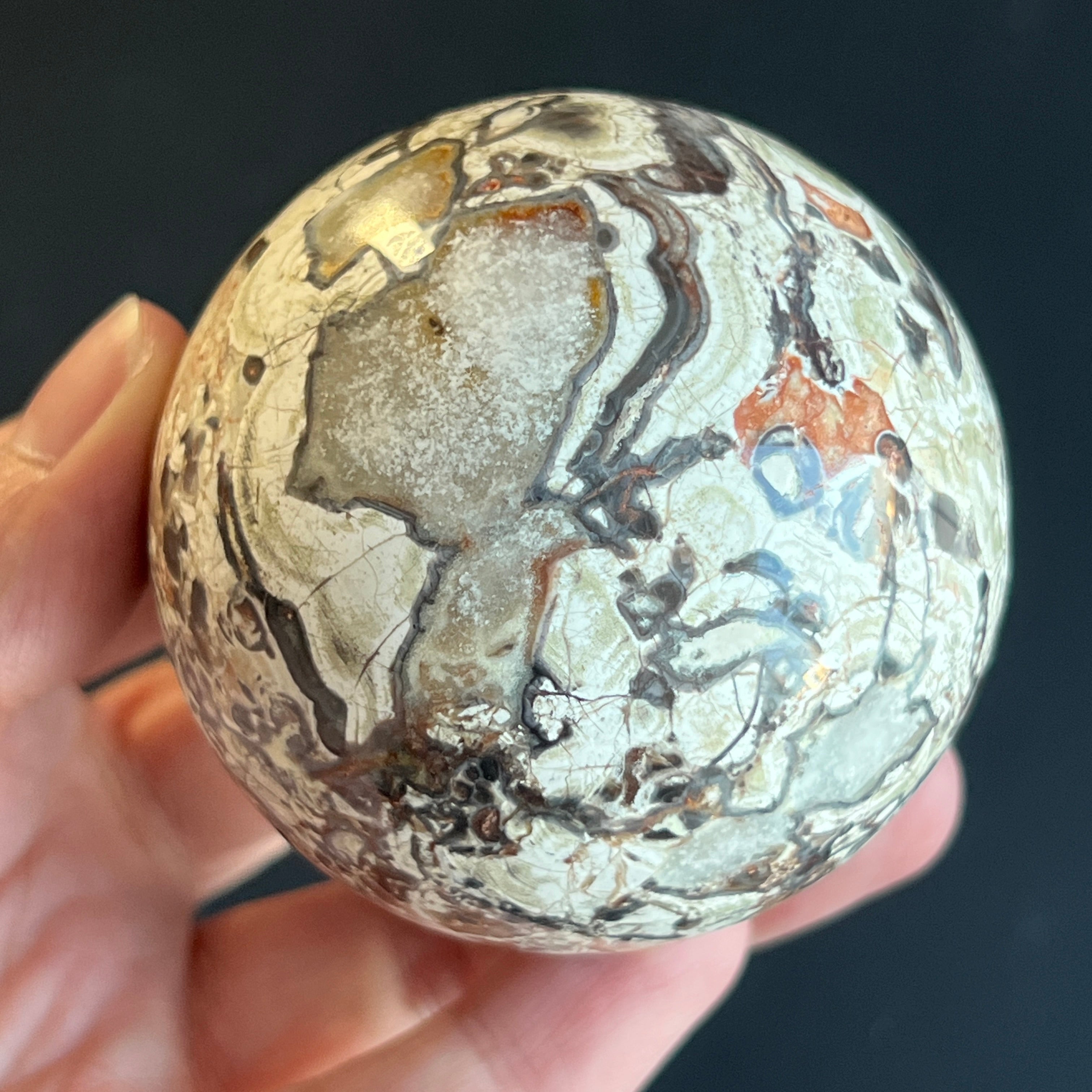 • Formă: sferă perfect rotunjită, șlefuită manual