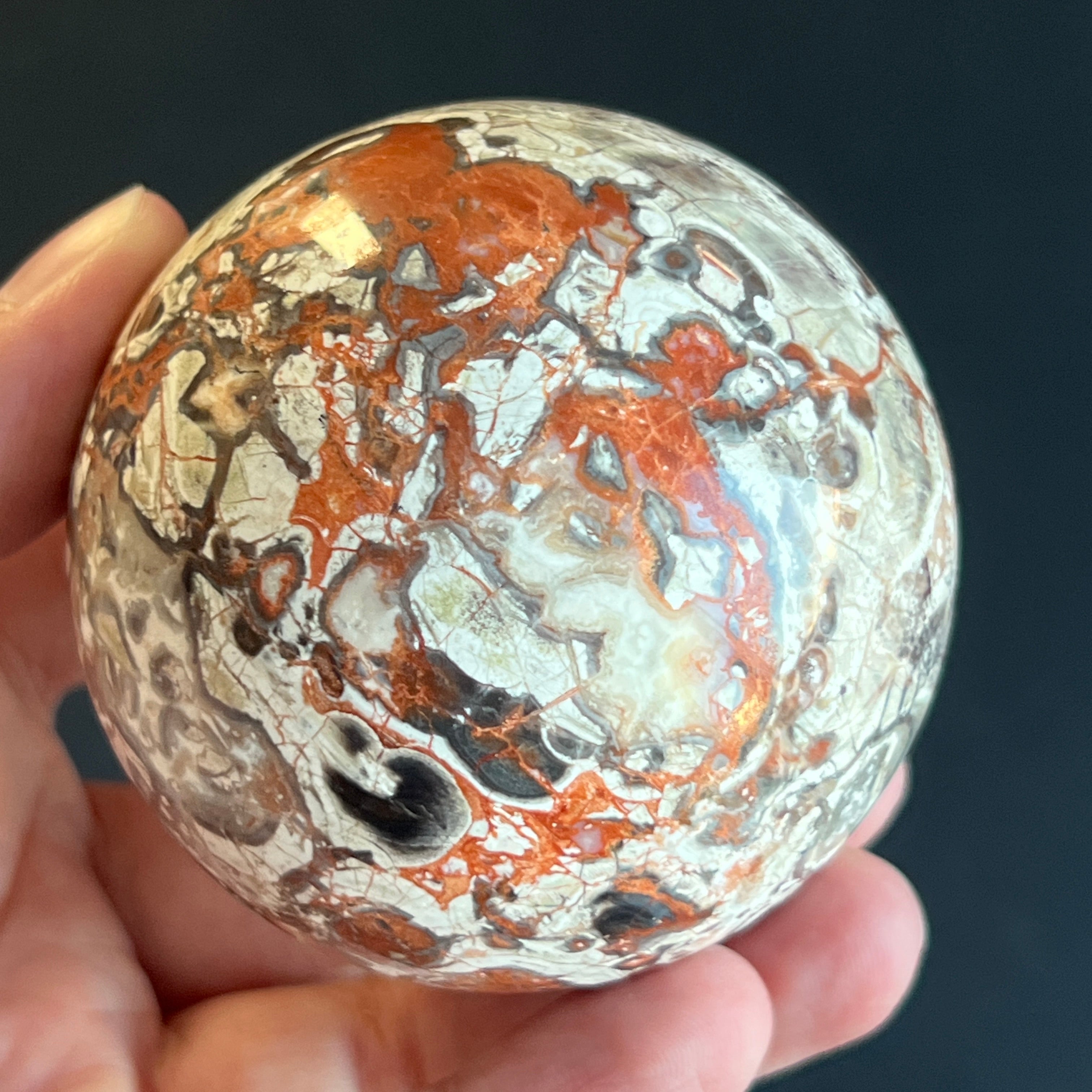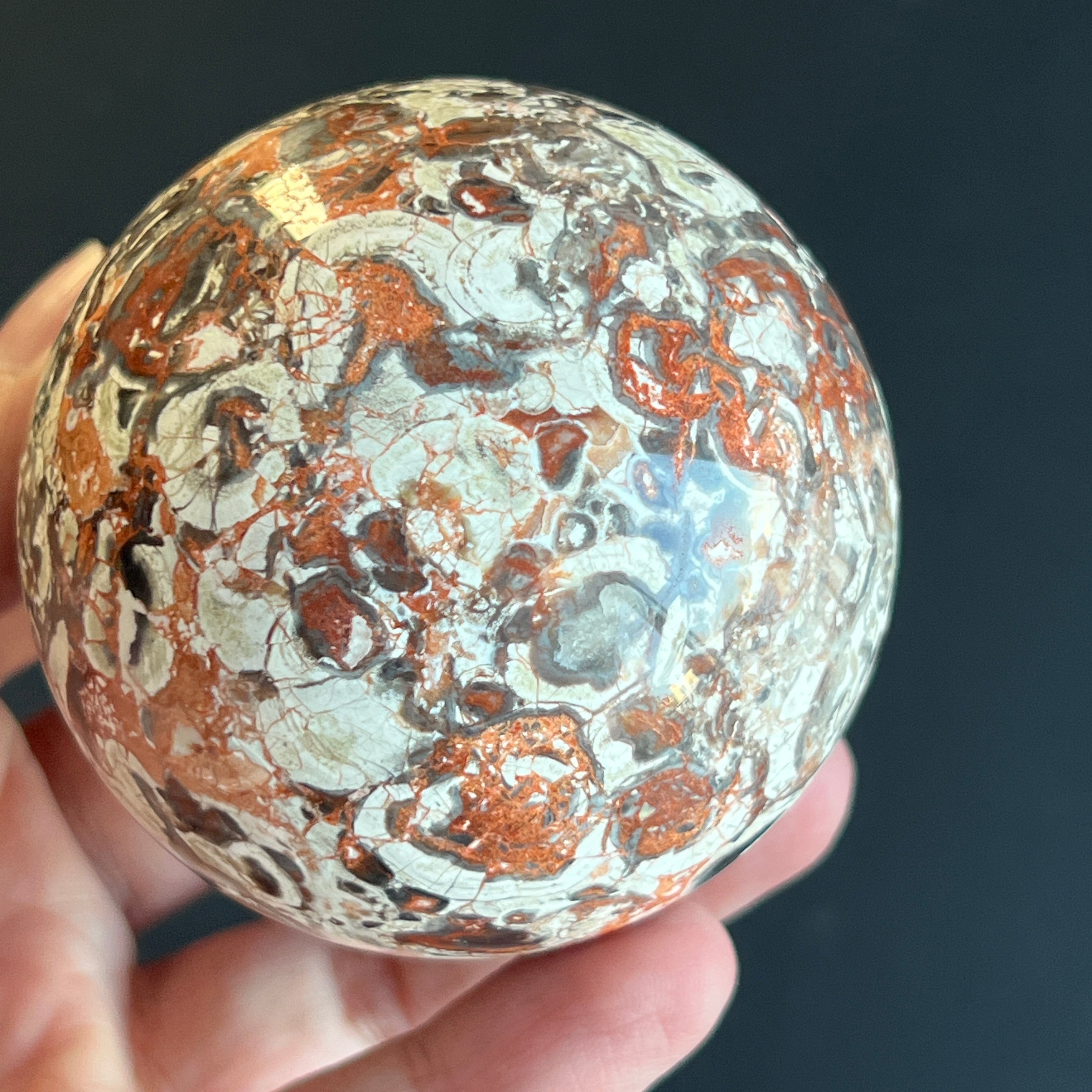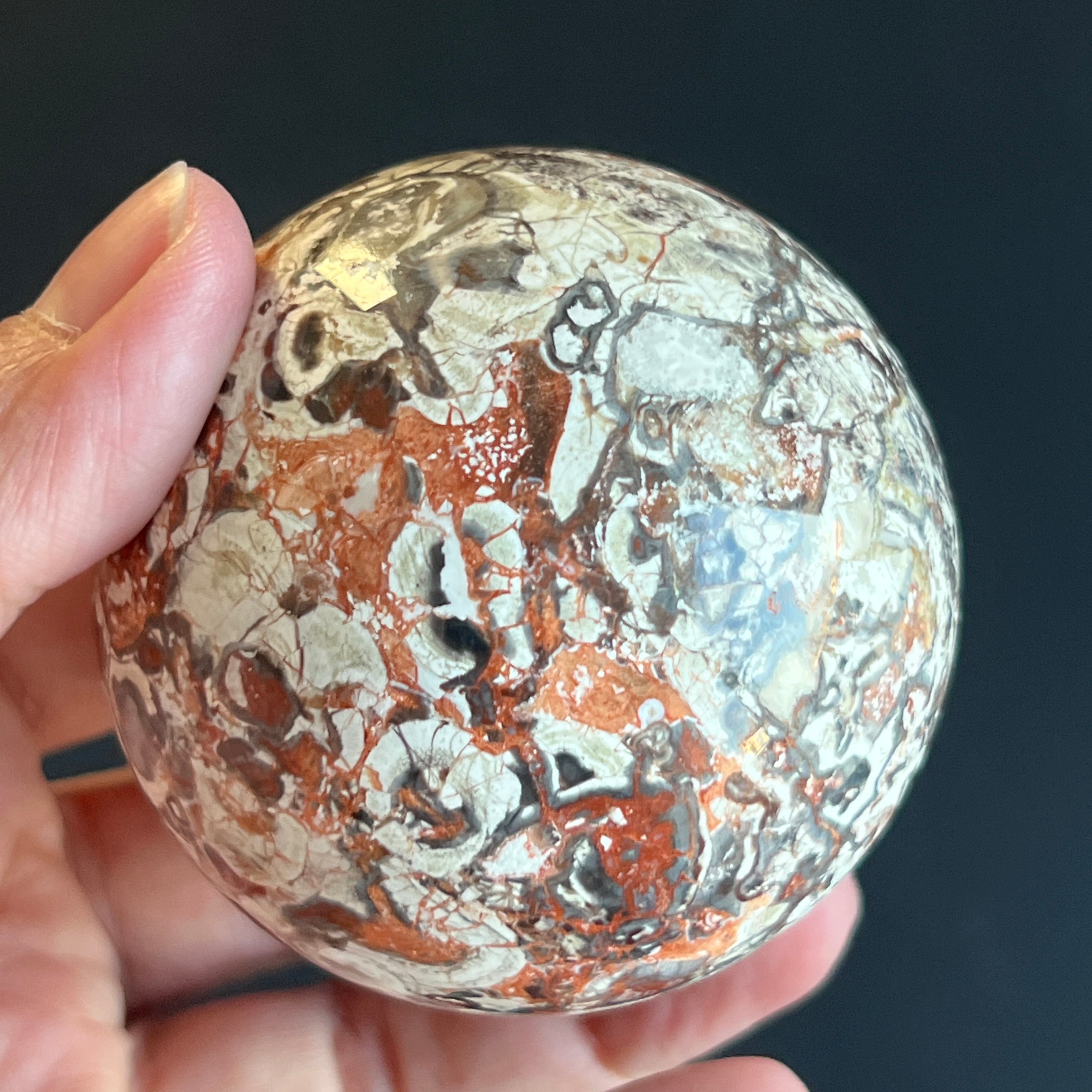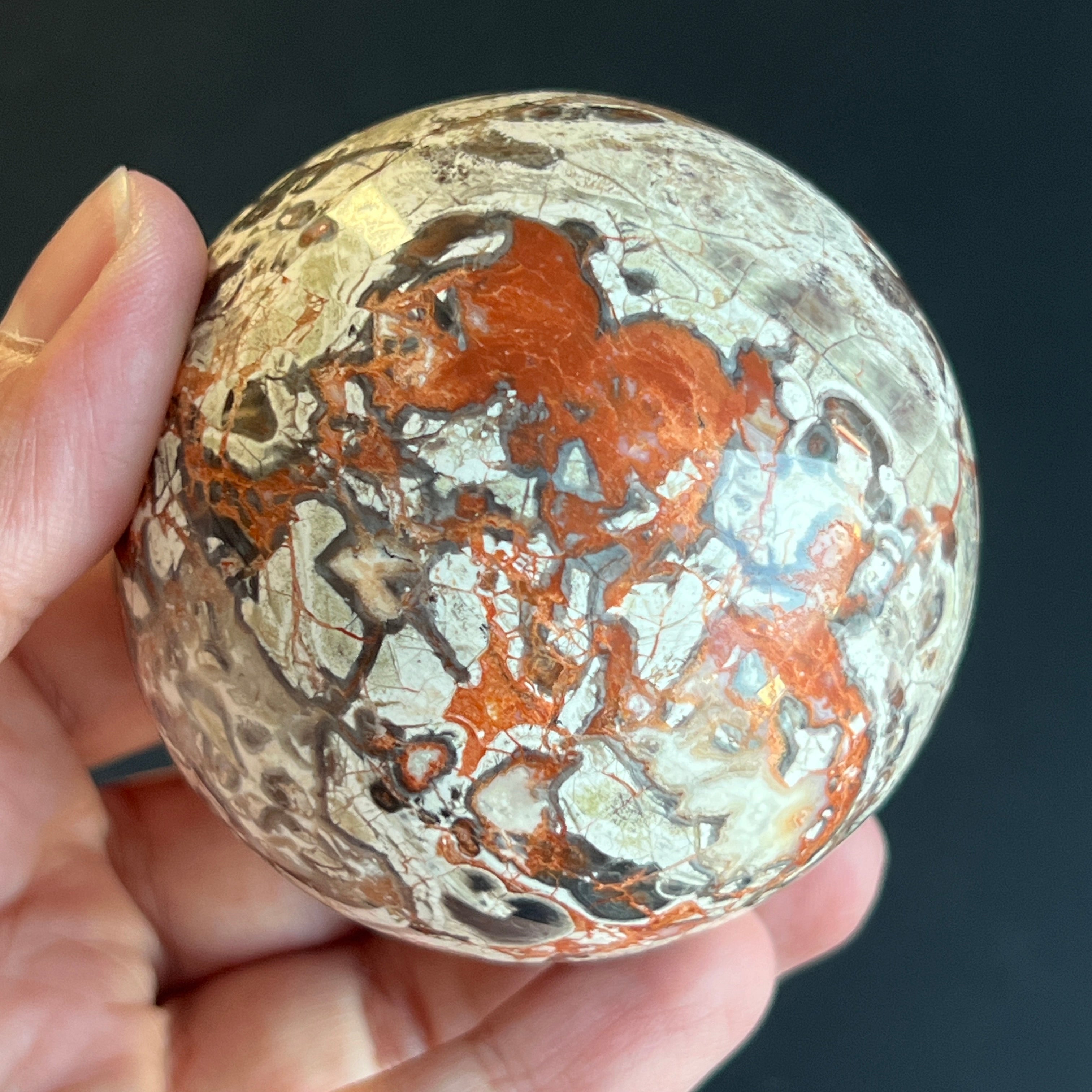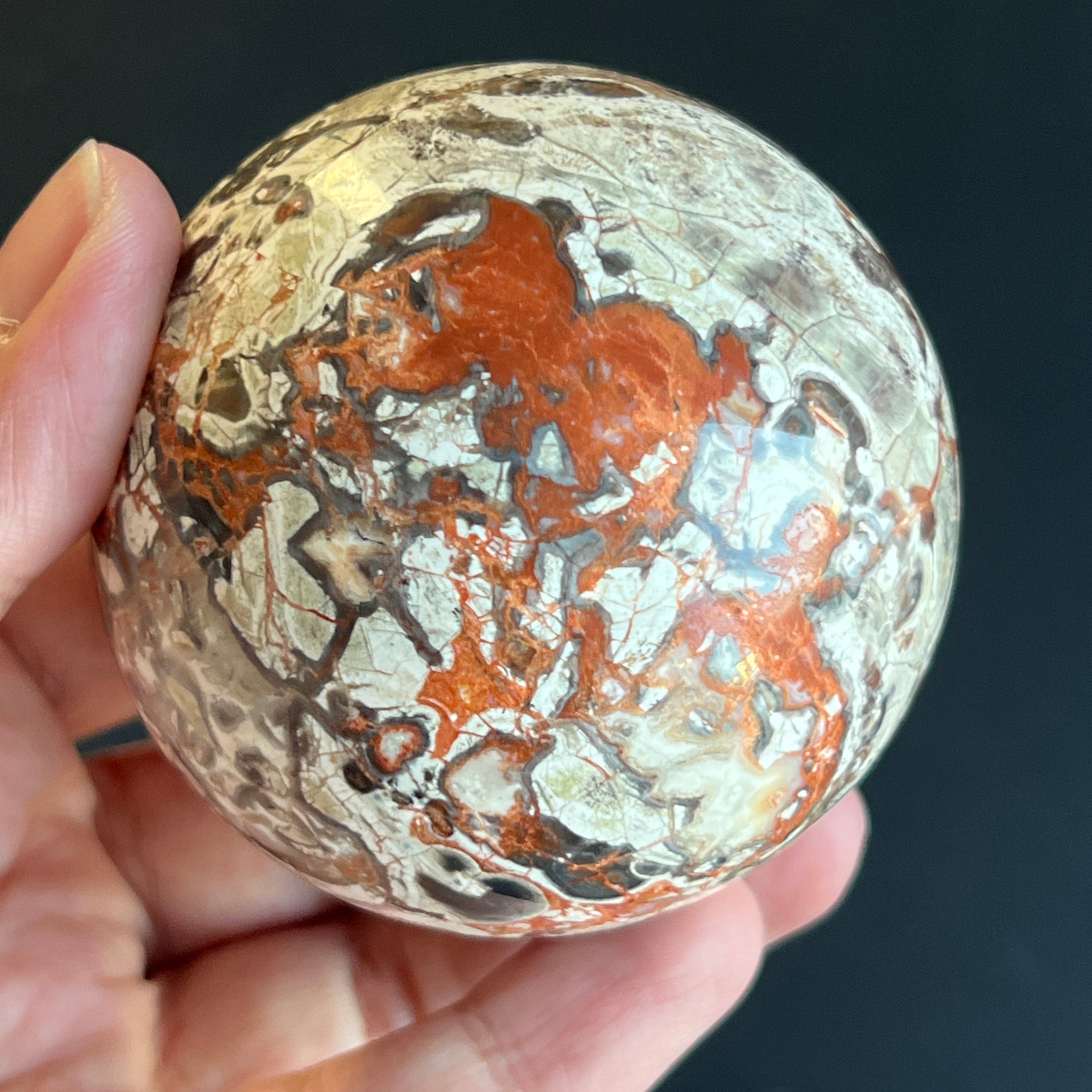 • Piatra: jasp roșu Breccia natural – sferă șlefuită integral
