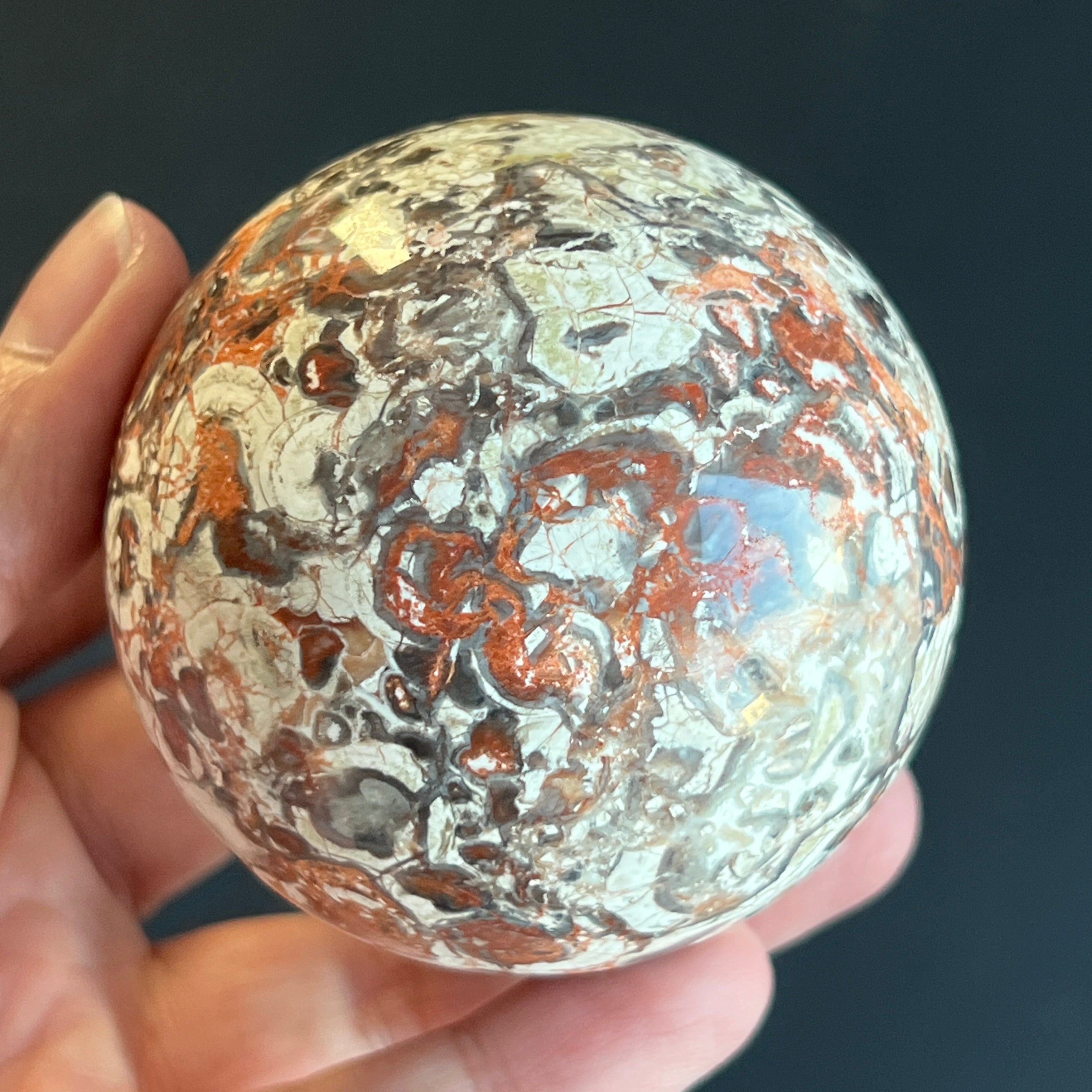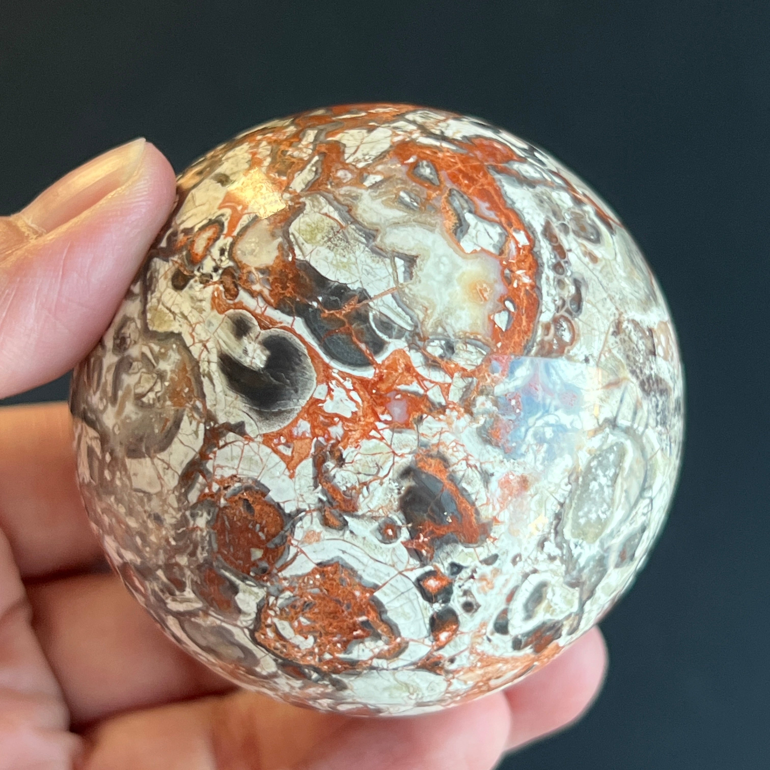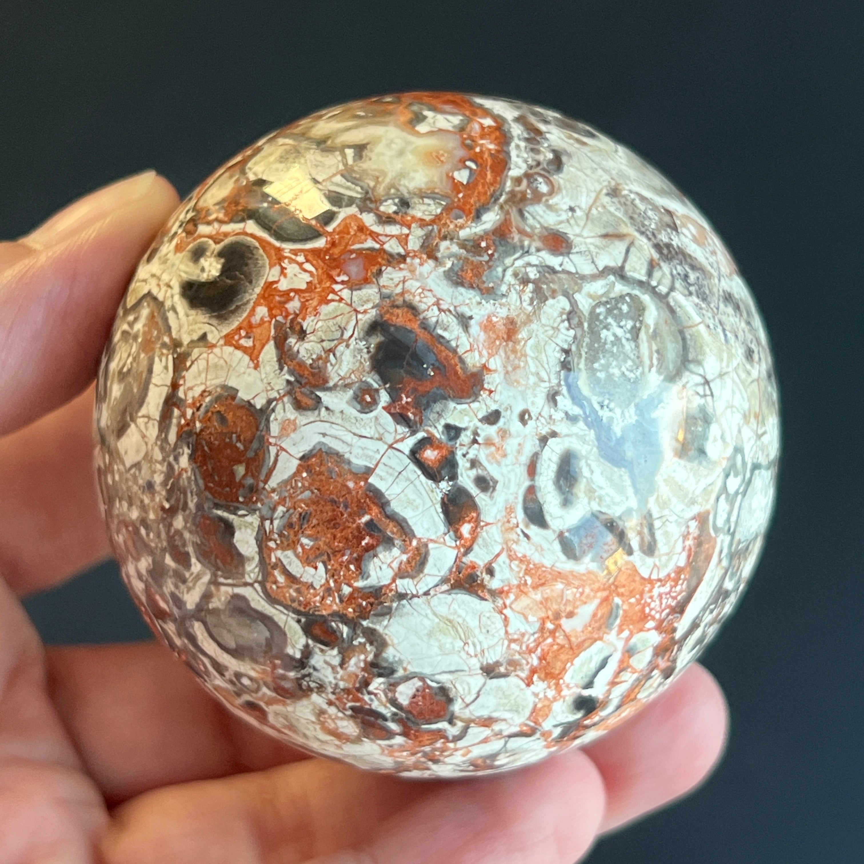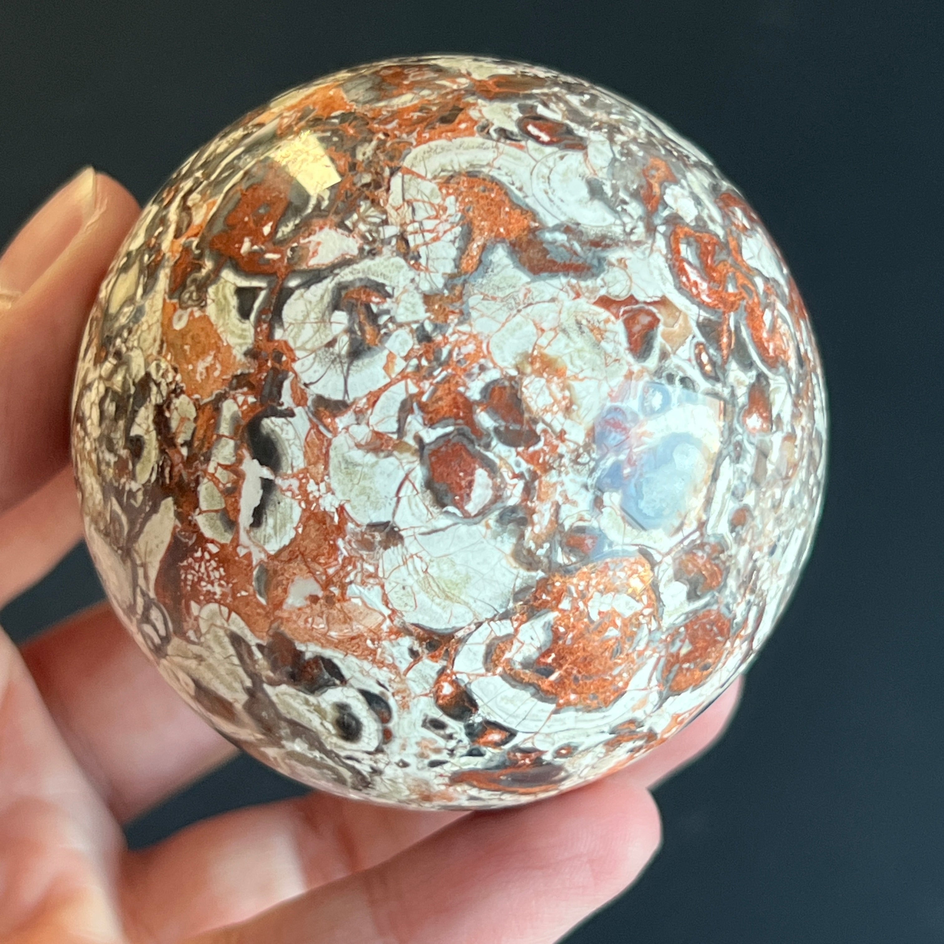 • Piatra: jasp roșu Breccia natural – sferă șlefuită integral